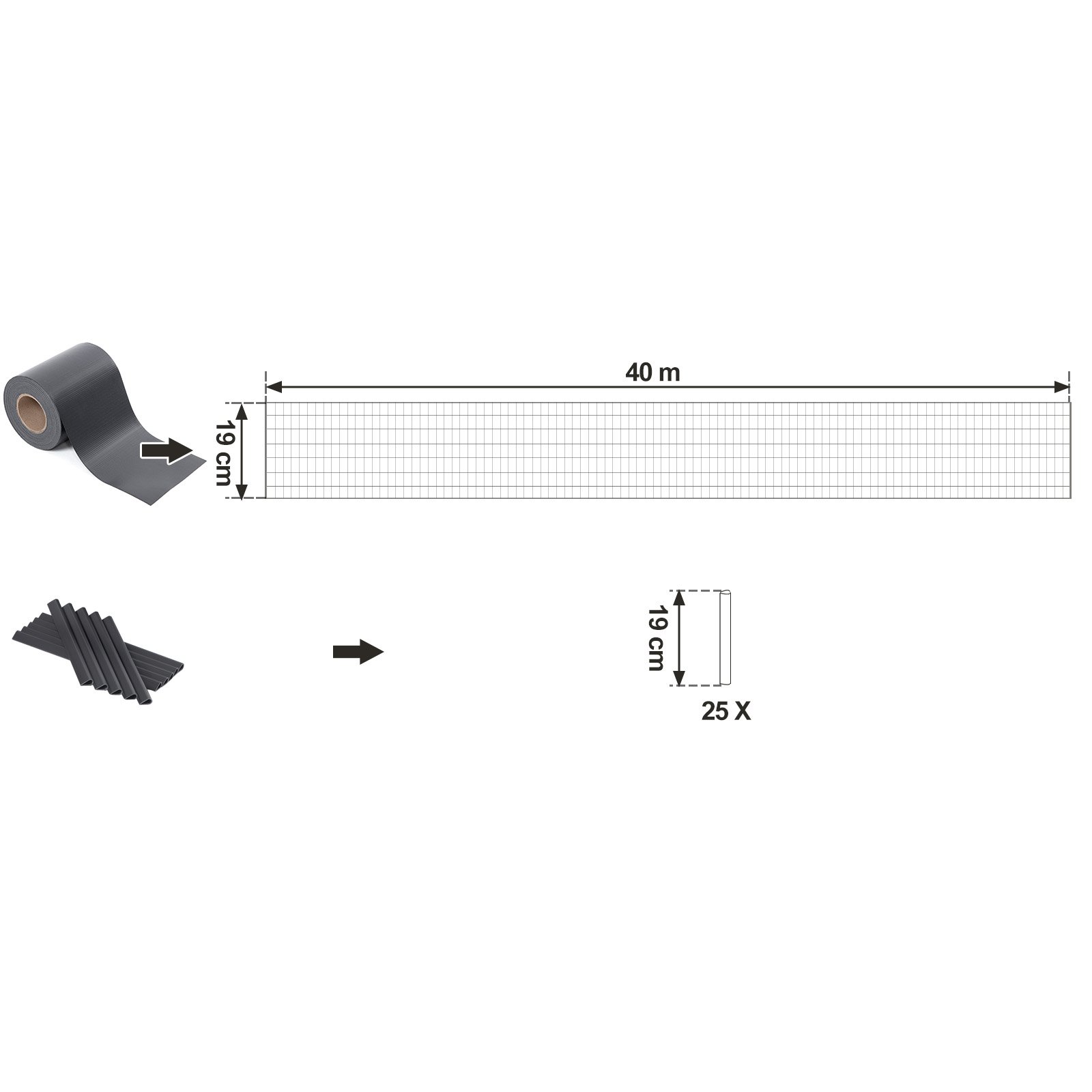 - 40 m x 19 cm (L x B)