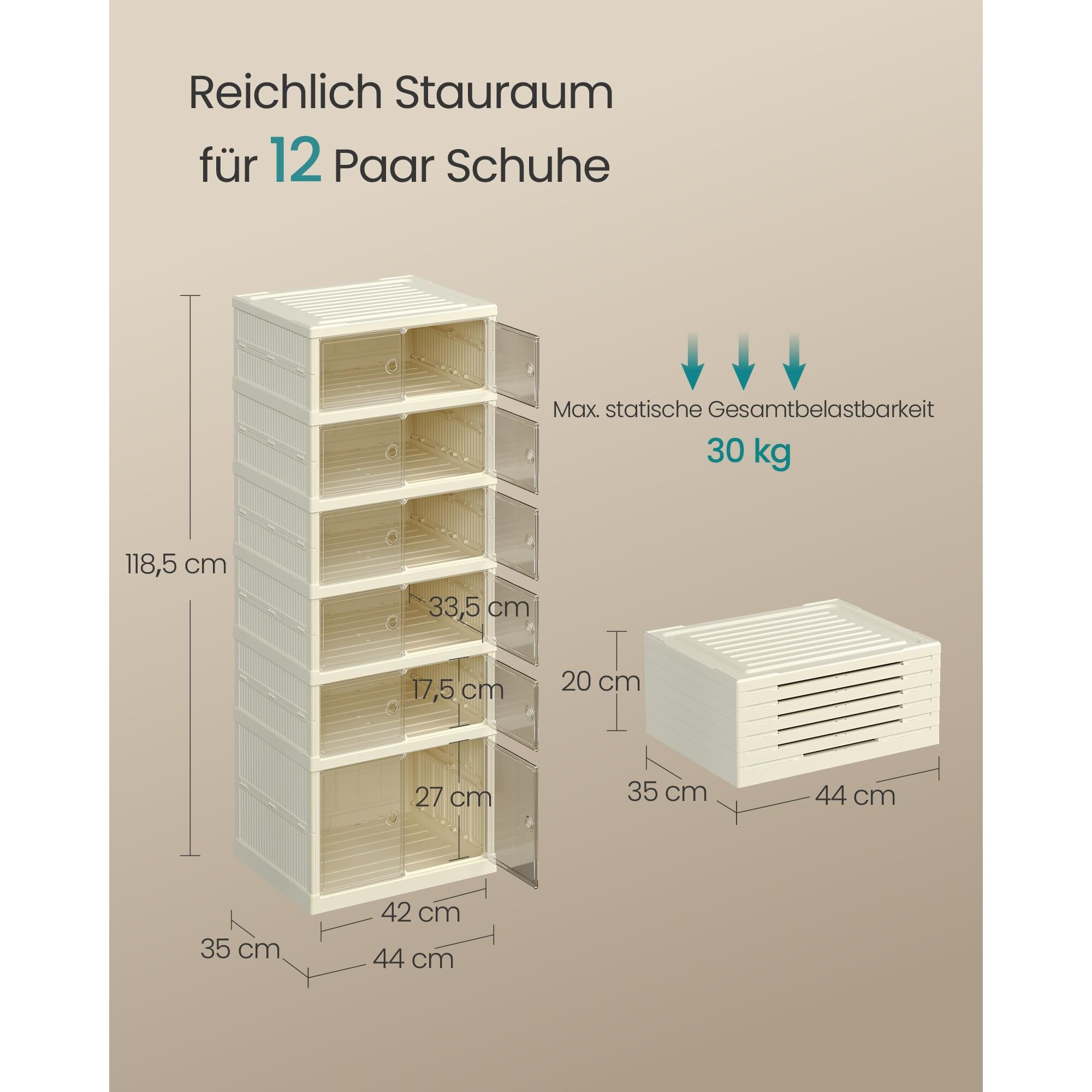 - Vielseitig einsetzbar: Nicht nur für Schuhe, sondern auch für Kleidung, Taschen, Hüte und mehr – perfekt für Flur, Schlafzimmer, Ankleide, Bad oder Garage.