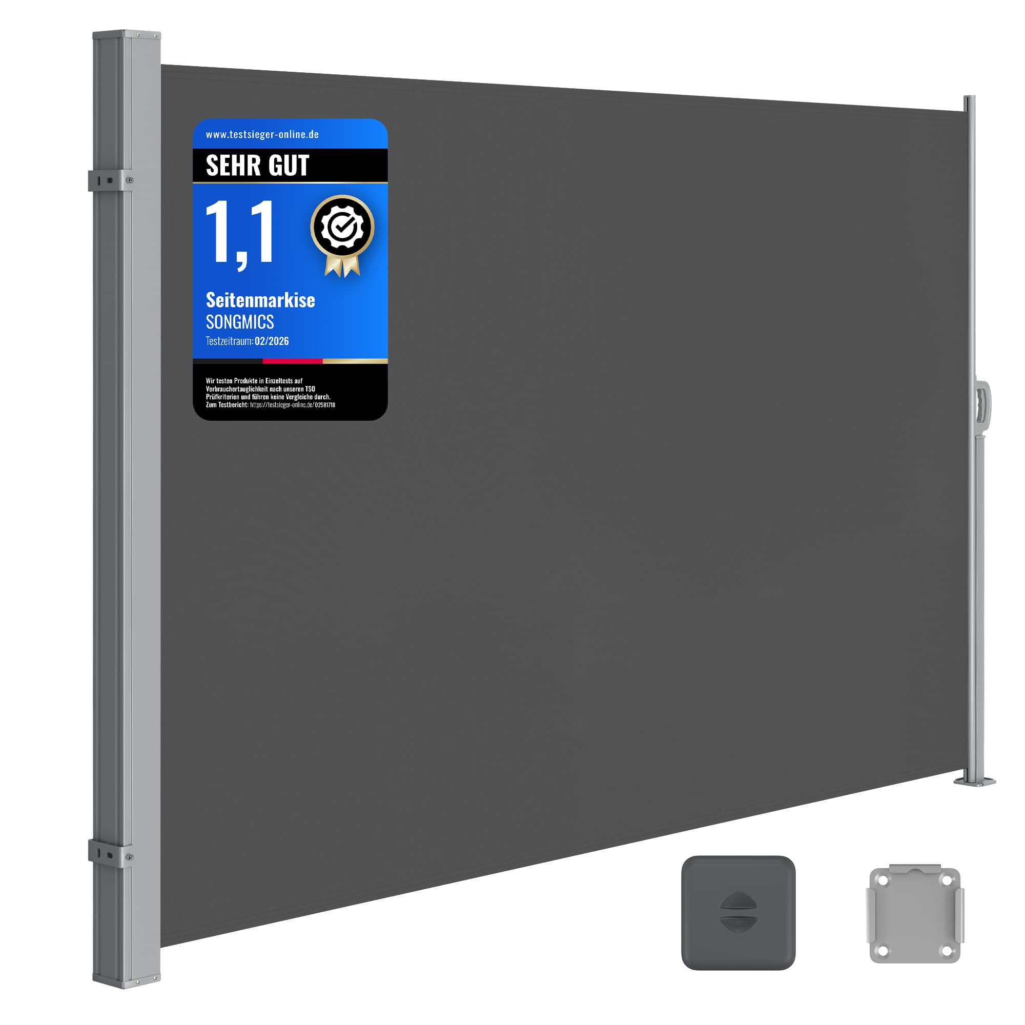 SONGMICS Seitenmarkise mit Stahl-Kasten, rostbeständig, ausziehbar, 200 x 300 cm, Windschutz, Sonnenschutz, Blickdicht, Seitenrollo, für Balkon, Terrasse, Garten, anthrazit GSA200G02