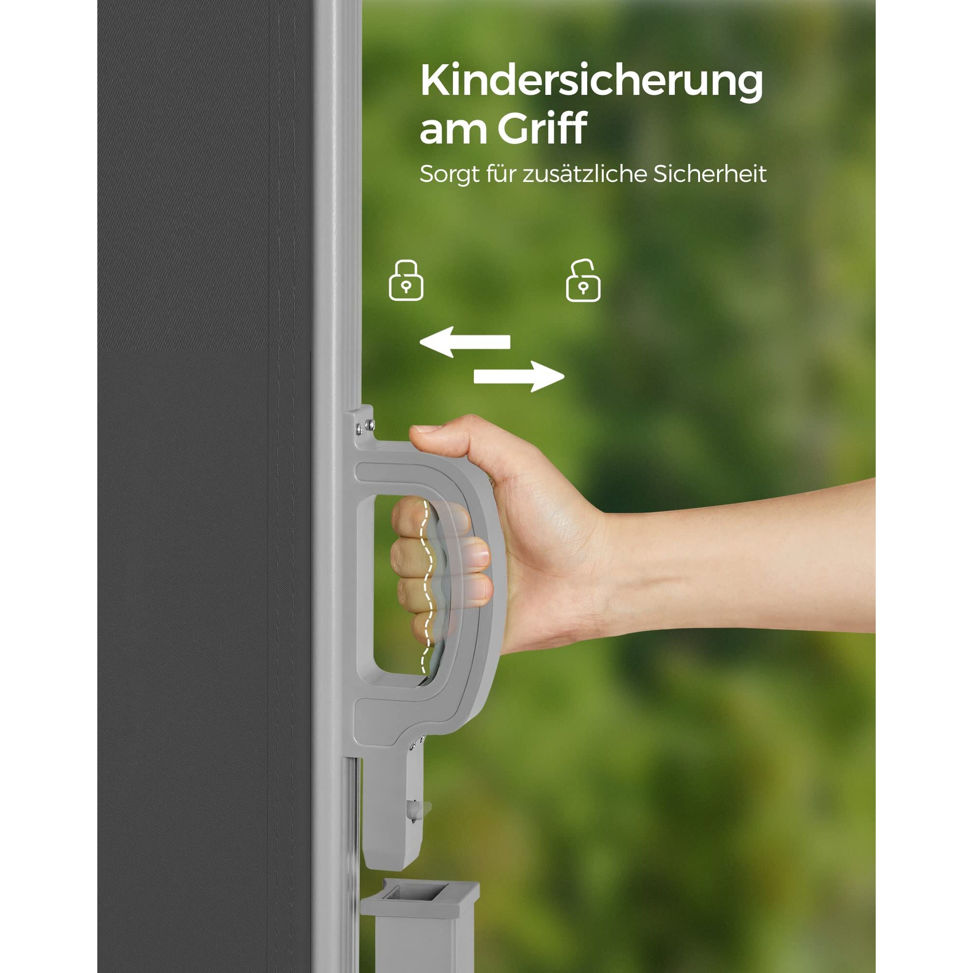 Diese Seitenmarkise von SONGMICS ist Ihre perfekte Partnerin, wenn Sie sich vor Sonnenstrahlen und den neugierigen Blicken Ihrer Nachbarn schützen wollen. Vielfältige Nutzungsmöglichkeiten