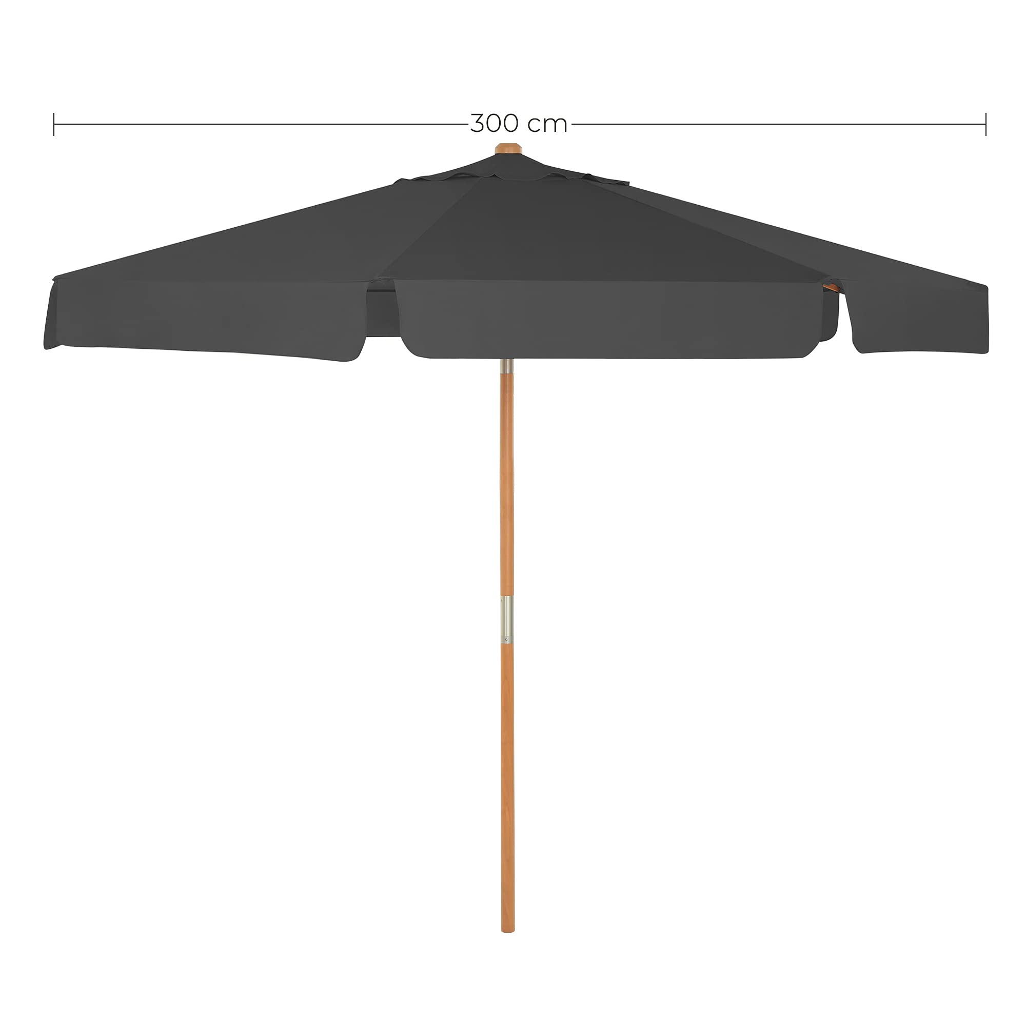 SONGMICS Garten-Sonnenschirm, 3 m, achteckiger Sonnenschirm mit Sonnenschutz, Stange und Streben aus Holz, neigbar, Sockel nicht im Lieferumfang enthalten, für Terrasse, Balkon und Aussenbereich, Grau