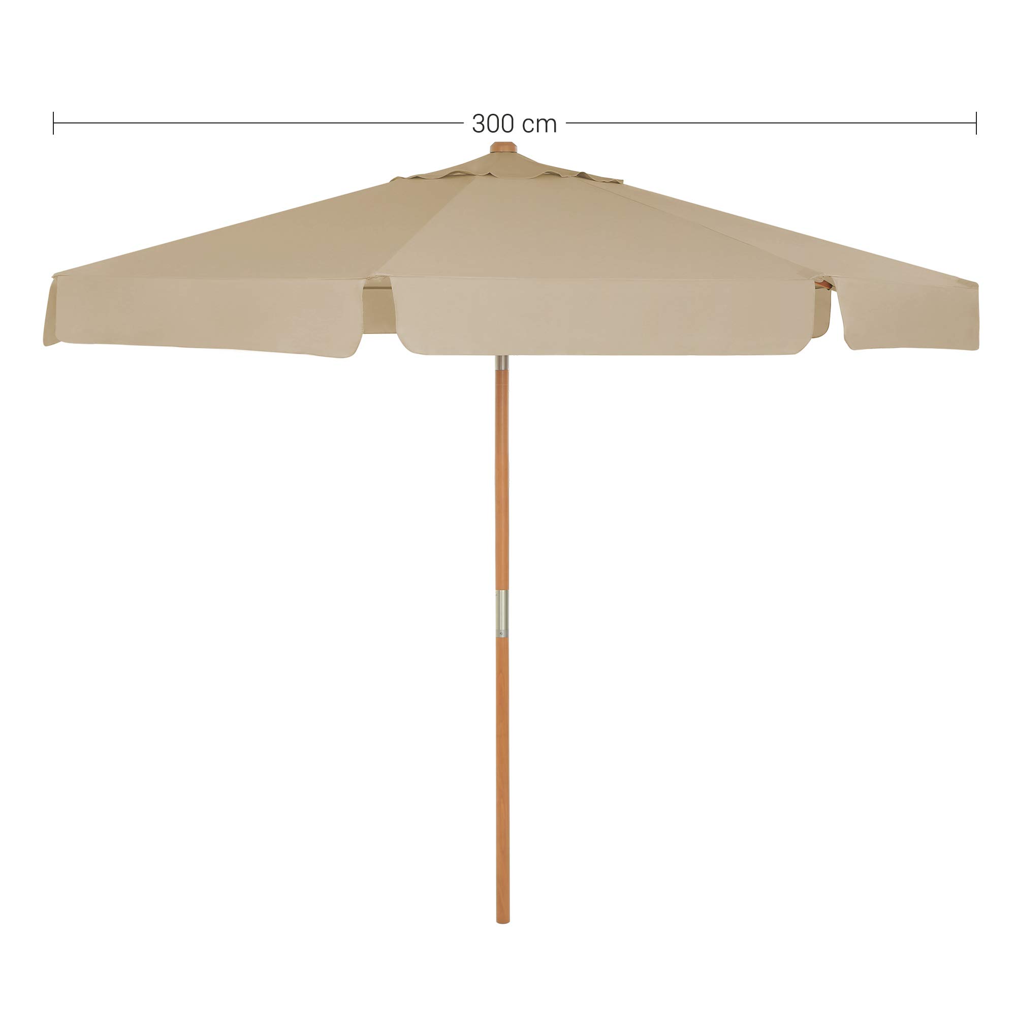 SONGMICS Sonnenschirm, 3 m, achteckig, Sonnenschutz, UV-Schutz, Mast und Streben aus Holz, neigbar, ohne Sockel, für Terrasse, Balkon, Garten, Taupe GPU32BR