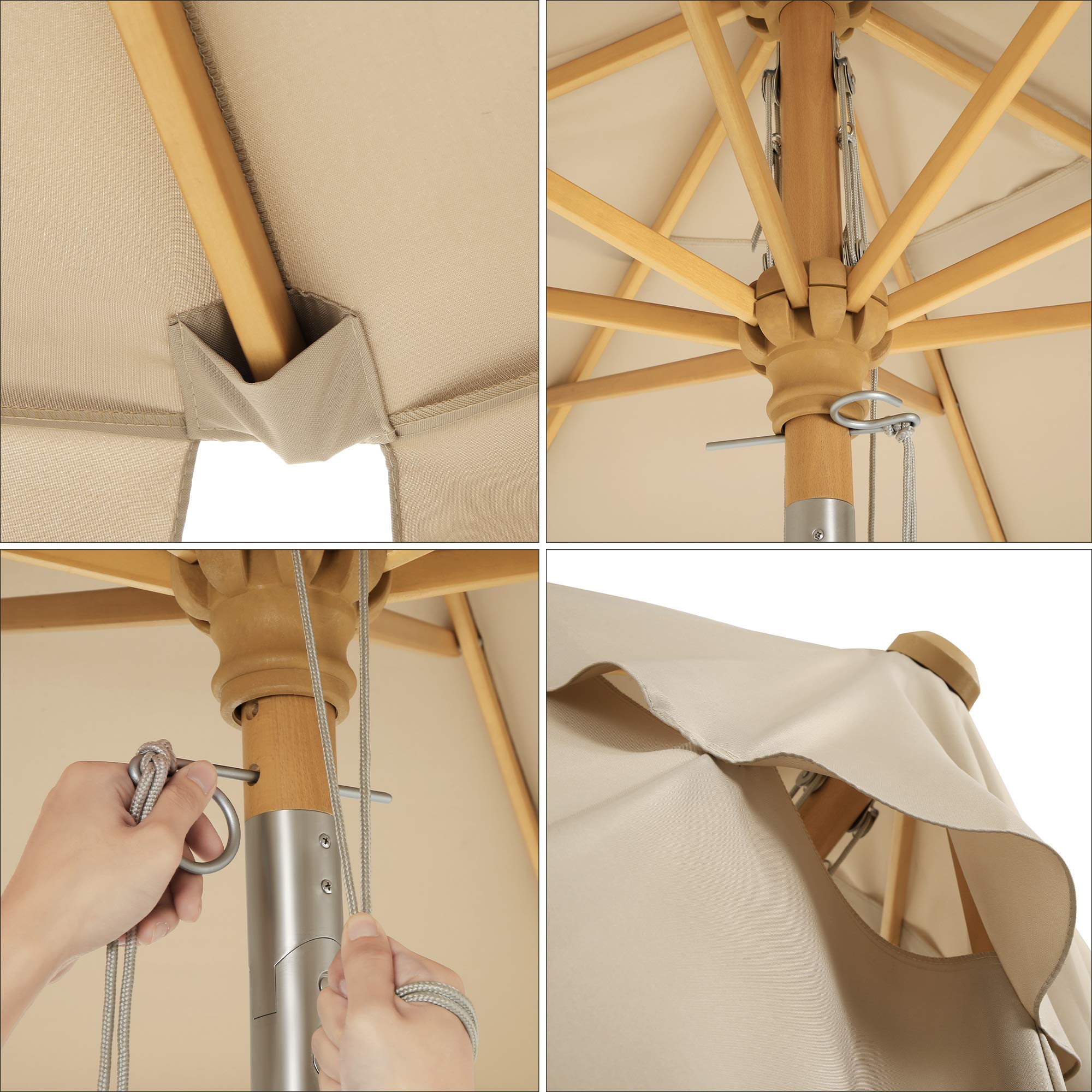 - Die 8 Schirmrippen sind aus hochwertigem und robustem Hartholz gefertigt