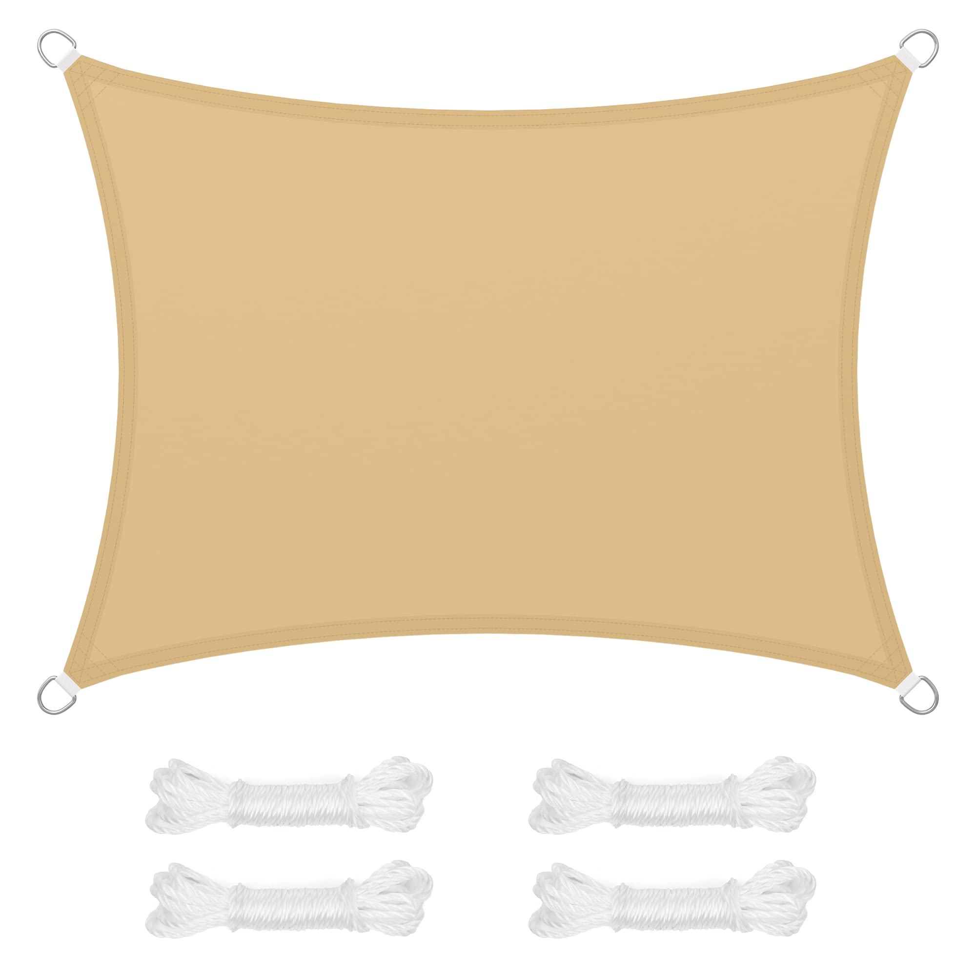 SONGMICS Sonnensegel, 3 x 4 m, wasserabweisend, Wassersäule 665 mm, reissfestes Polyester, UV-Schutz 93%, Terrasse, Garten, Balkon, rechteckig, 2 m Seile, sandgelb GSH34EY
