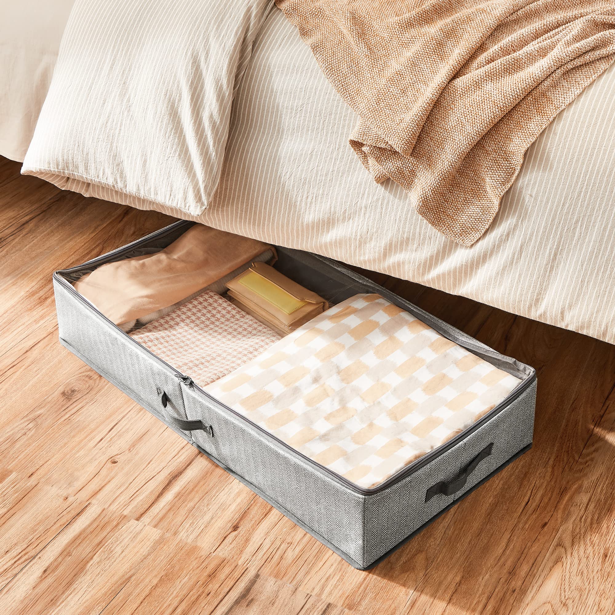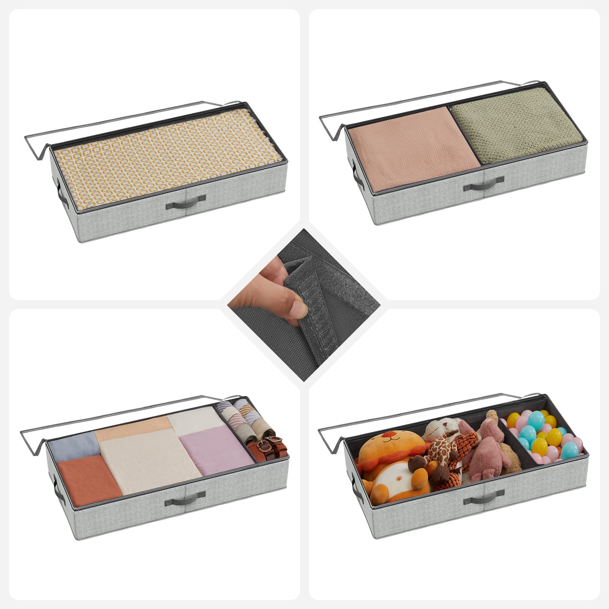 SONGMICS Unterbettkommode, 2er Set, Unterbett Aufbewahrungsbox mit Sichtfenster, Faltbarer Organizer, unter dem Bett oder auf dem Schrank, Vliesstoff, platzsparend, grau RUB002G01