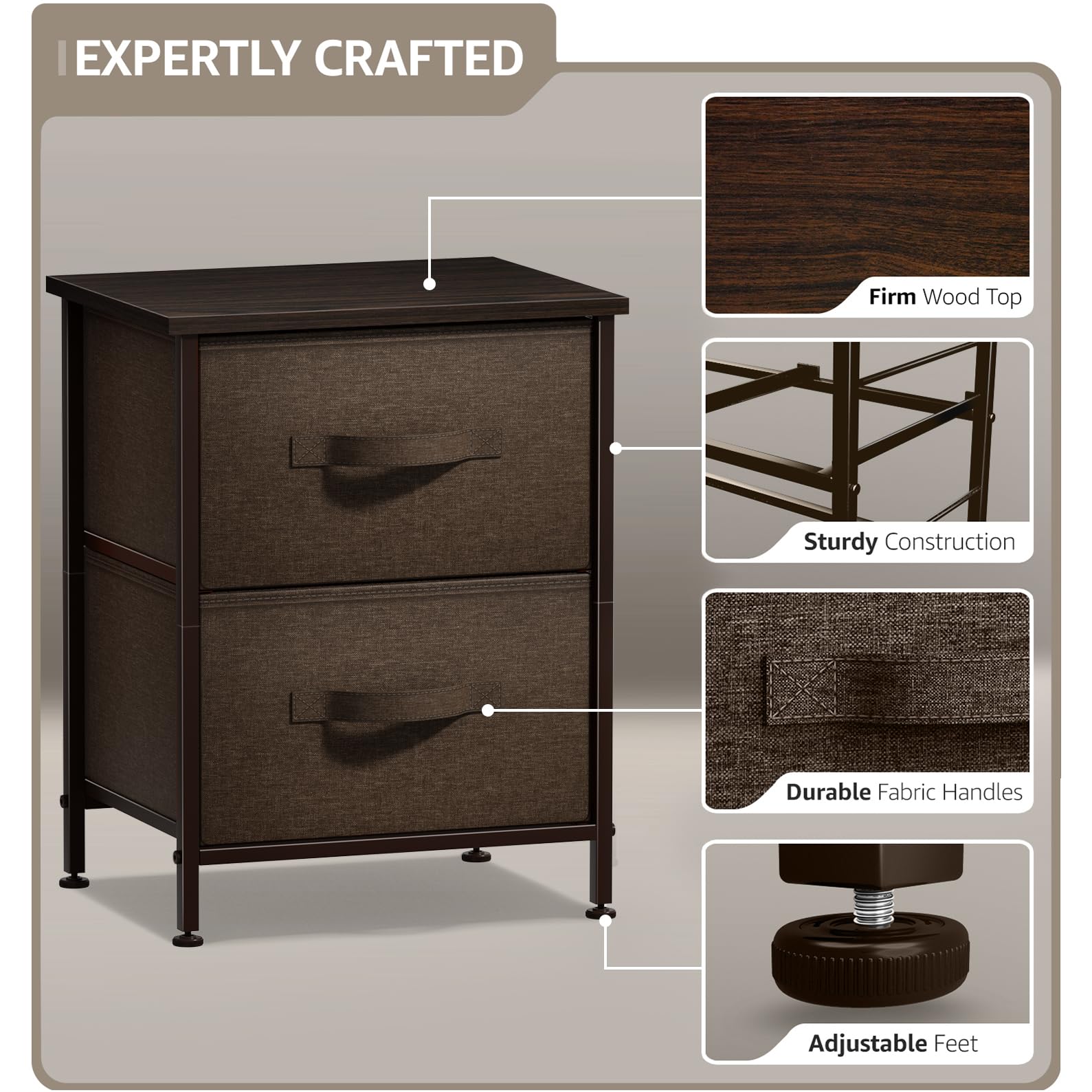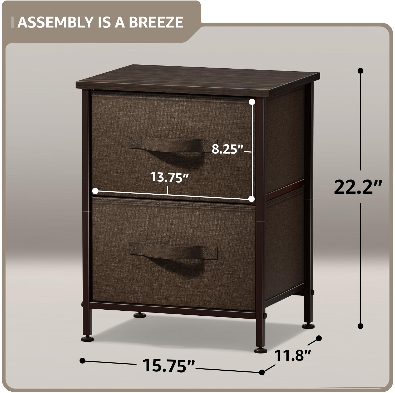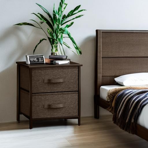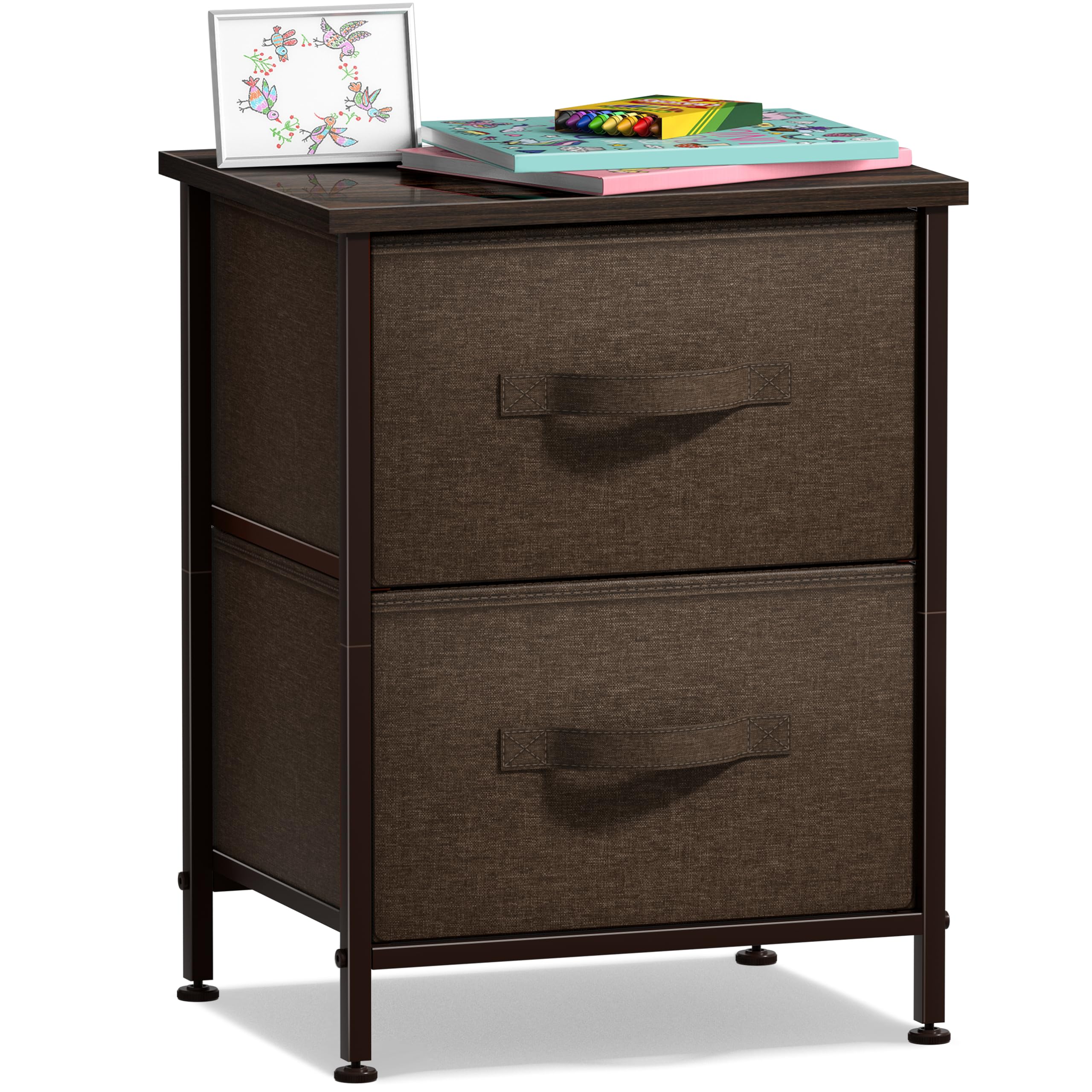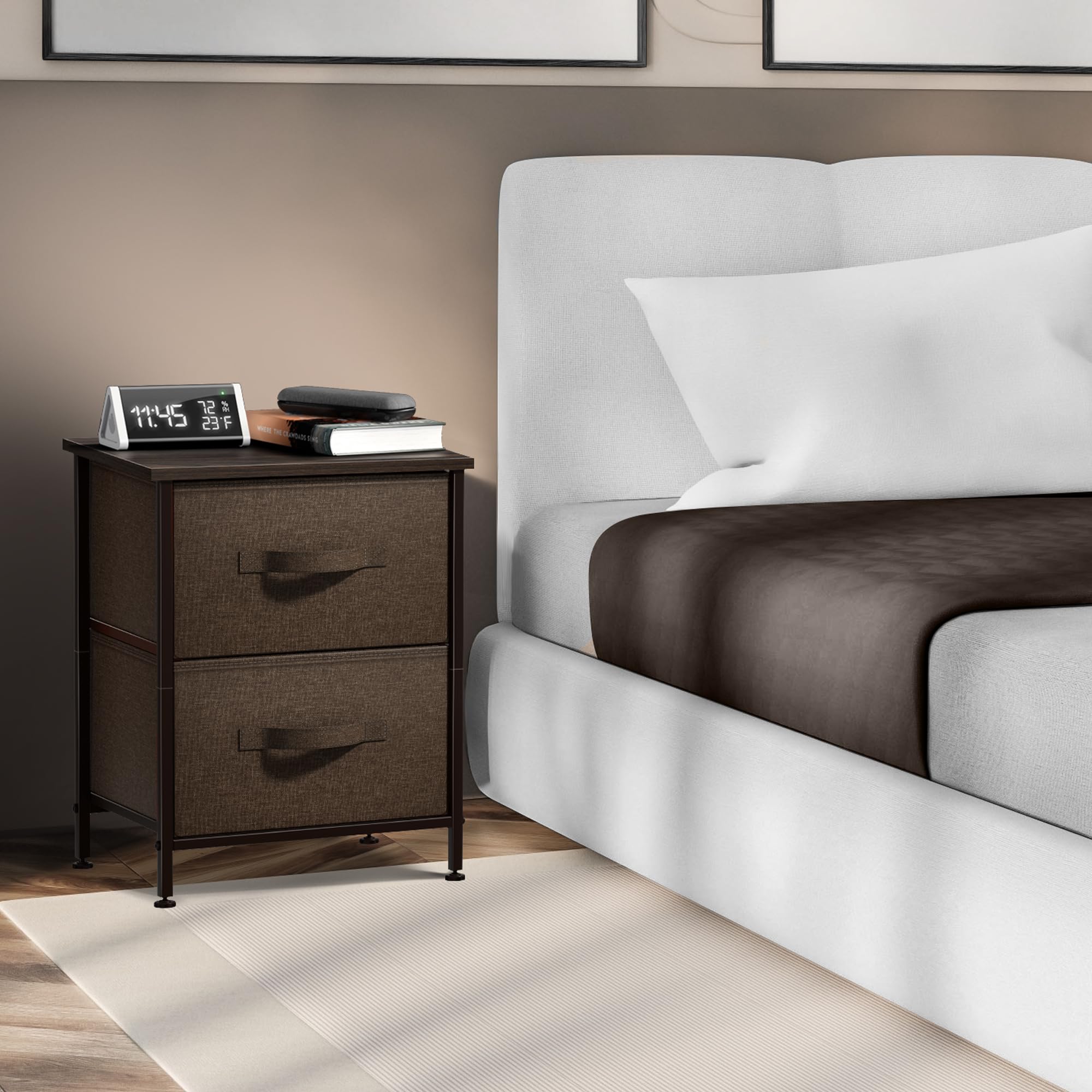 Sorbus Nachttisch mit 2 Schubladen – Nachttisch Möbel & Nachttisch Beistelltisch Kommode für Zuhause, Schlafzimmerzubehör, Büro, Studentenwohnheim, Holzplatte, leicht zu ziehende Stoffkörbe