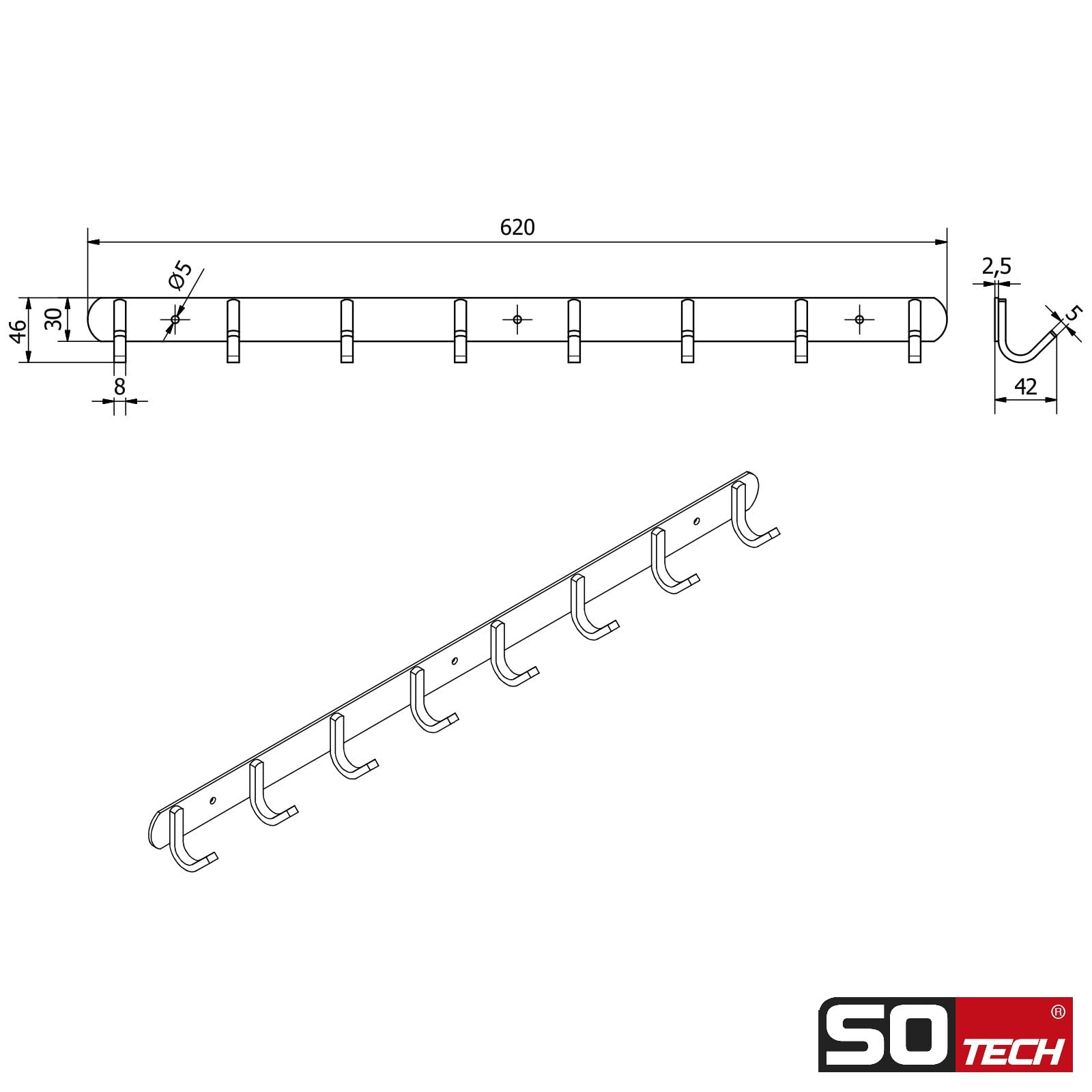SOTECH 8er Hakenleiste Samu für Kleidung und Schlüssel