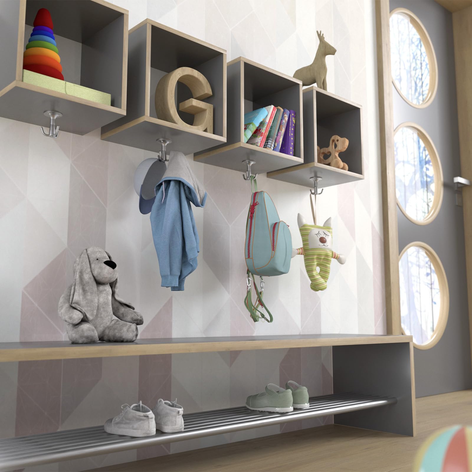 Dieser Drehhaken ist vielseitig einsetzbar. Z. B. als Unterbauhaken an Garderoben, in Kleiderschränken oder im Küchen- und Wohnbereich.