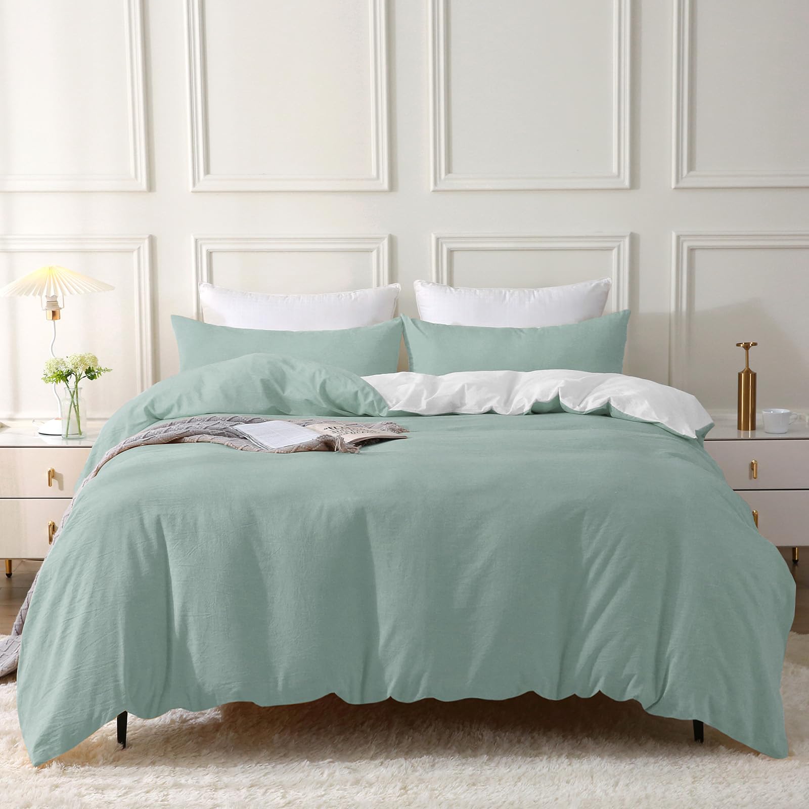 - 【Natürliches Design】 Dieser Bettbezug besteht aus 100 % gewaschener Baumwolle, der Stoff wurde durch ein spezielles Verfahren verarbeitet und die Oberfläche des Stoffes hat ein leichtes natürliches Faltengefühl. Das Crinkle-Finish sorgt für einen lässigen Vintage-Look. Behält die Faltenstruktur ohne Bügeln bei.