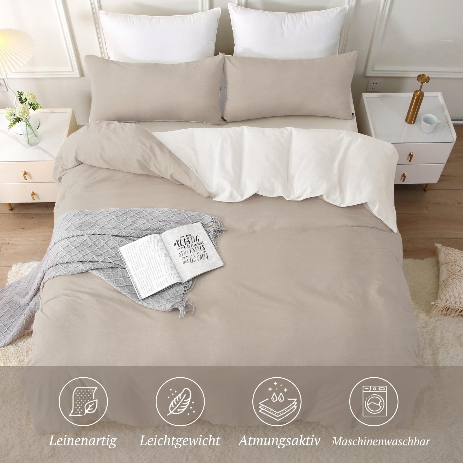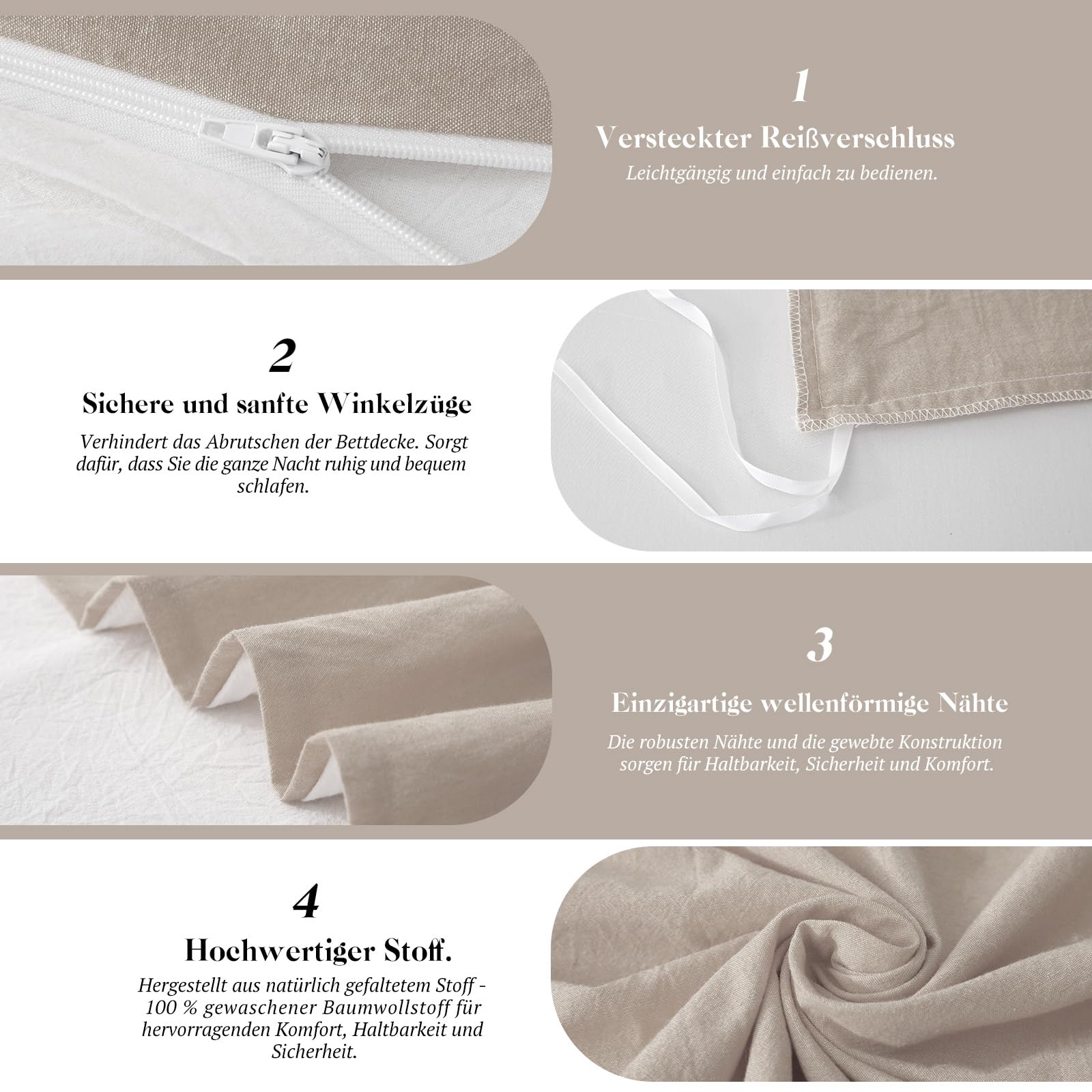 - 【Tolles Hautgefühl】Dieses Bettwäsche Set ist “Stone Washed”, um ihm ein ähnliches Gefühl wie Leinen bettwäsche zu verleihen. Ebenso atmungsaktiv wie saugfähig, bietet es zu jeder Jahreszeit ein besonders angenehmes Hautgefühl, auch in heissen Sommernächten.