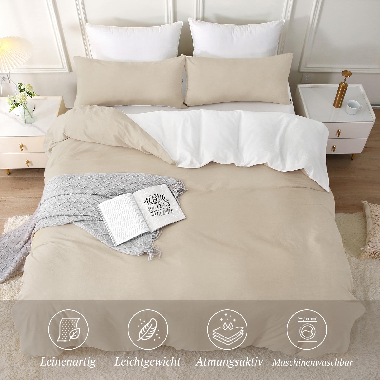 SOULFUL Bettwäsche 155x220 Baumwolle 2 Teilig, Bettwäsche-Sets Kamel Beige mit Reissverschluss, Ähnliche Textur wie Stone Washed Leinen, Enthält 1 Bettbezug 155x220 und 1 Kissenbezug 80x80