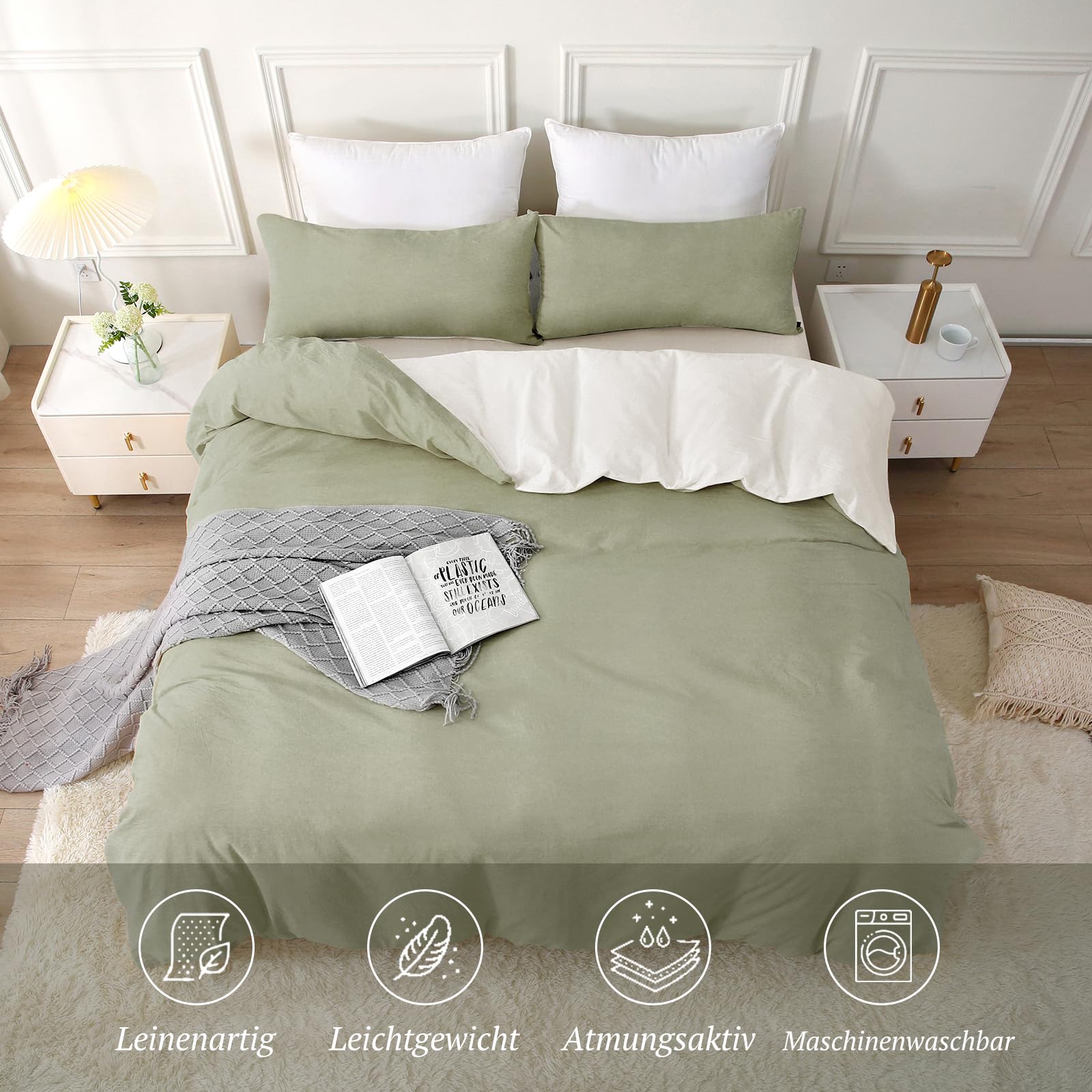 - 【Tolles Hautgefühl】Dieses Bettwäsche Set ist “Stone Washed”, um ihm ein ähnliches Gefühl wie Leinen bettwäsche zu verleihen. Ebenso atmungsaktiv wie saugfähig, bietet es zu jeder Jahreszeit ein besonders angenehmes Hautgefühl, auch in heissen Sommernächten.