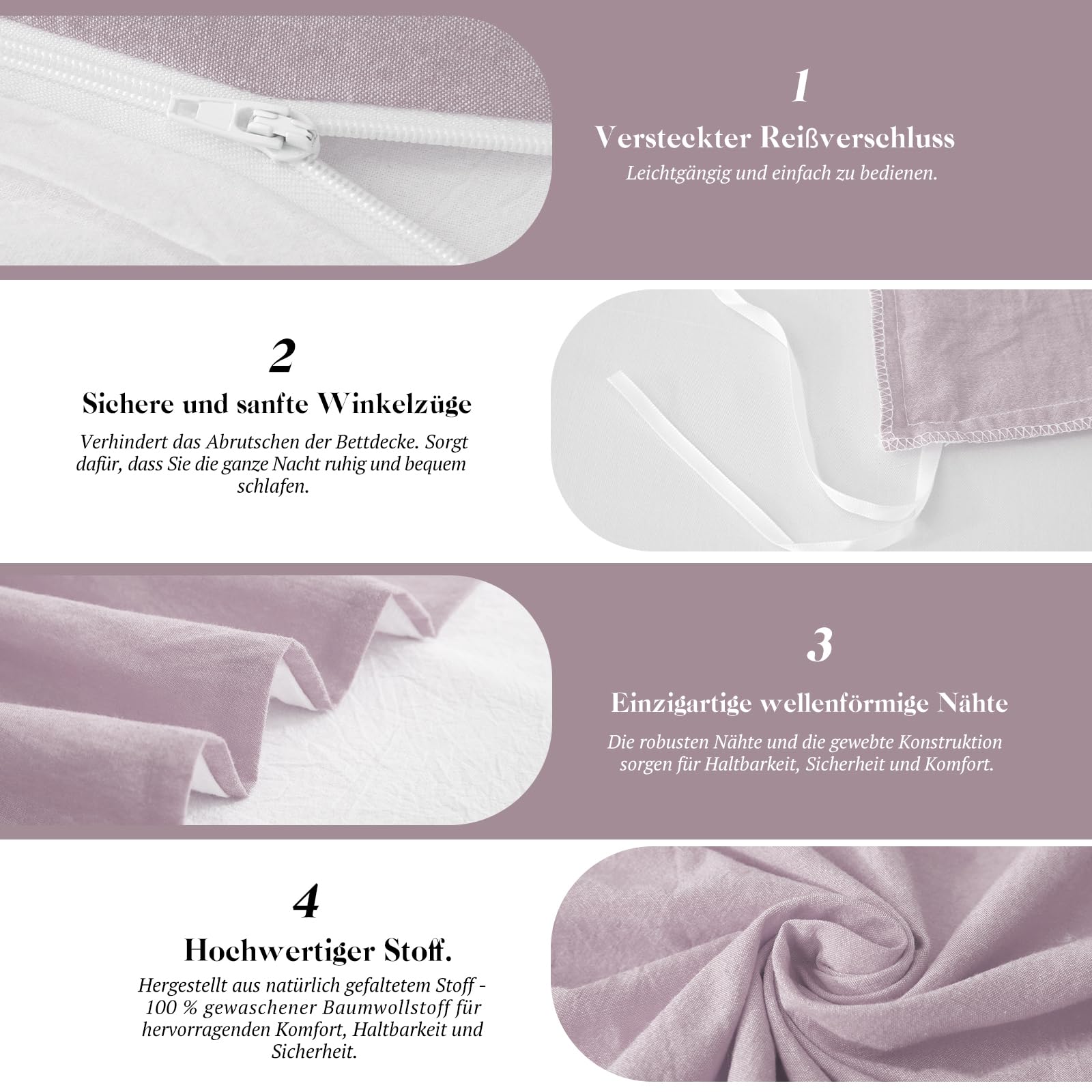 - 【Tolles Hautgefühl】Dieses Bettwäsche Set ist “Stone Washed”, um ihm ein ähnliches Gefühl wie Leinen bettwäsche zu verleihen. Ebenso atmungsaktiv wie saugfähig, bietet es zu jeder Jahreszeit ein besonders angenehmes Hautgefühl, auch in heissen Sommernächten.