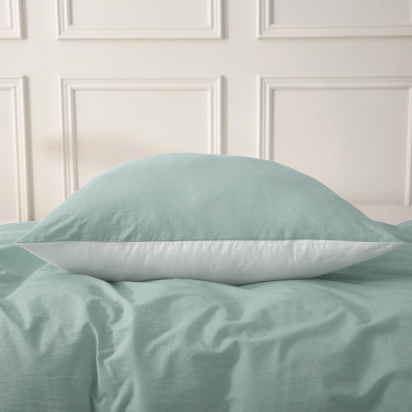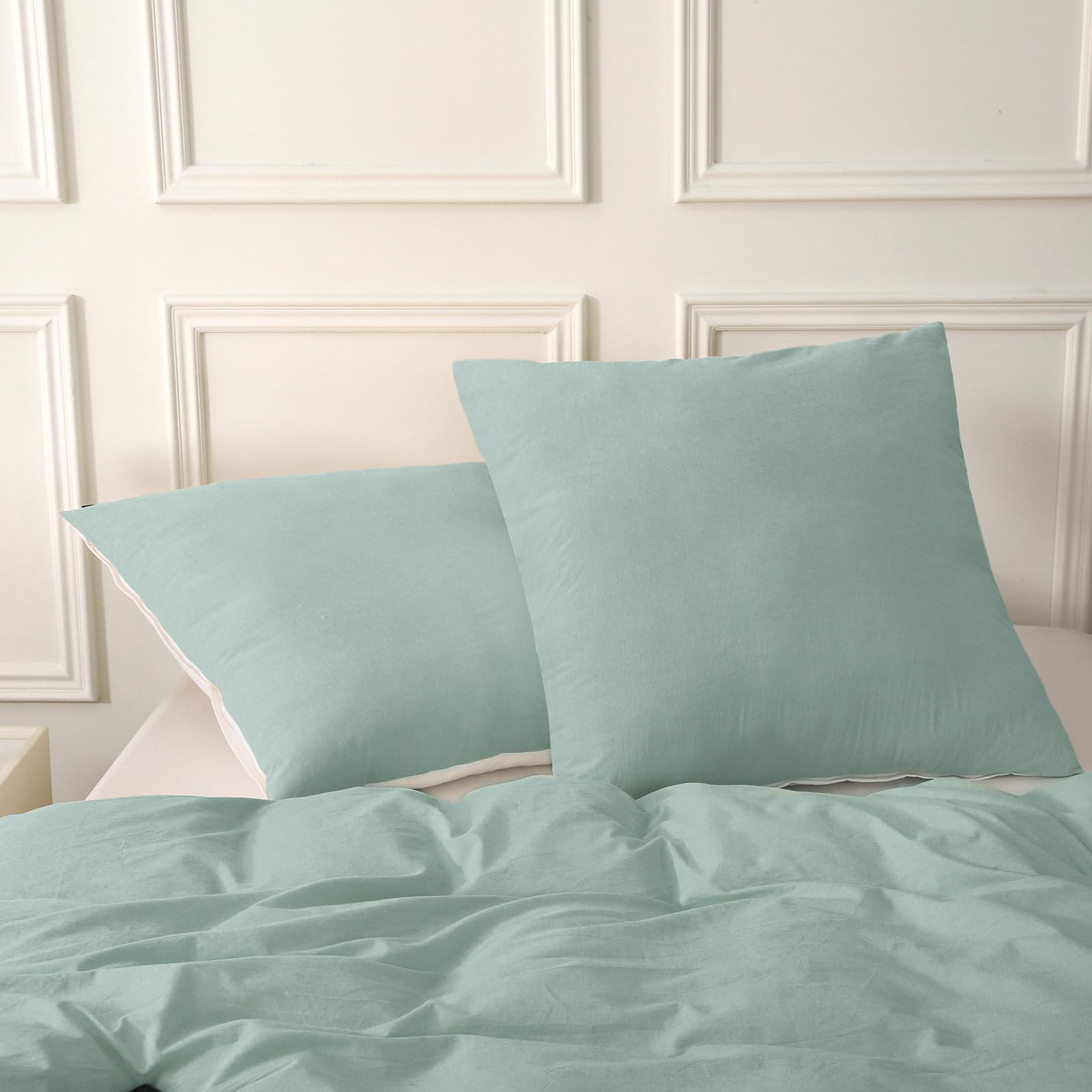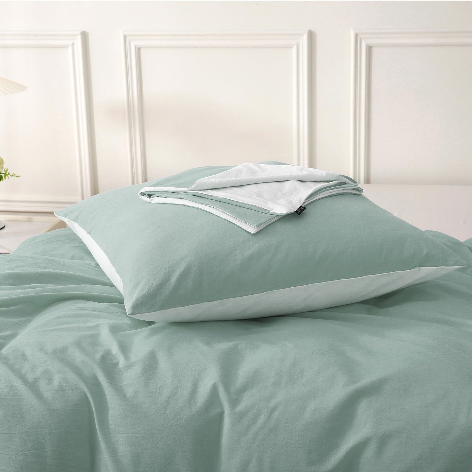 - 【Natürliches Design】 Dieser Bettbezug besteht aus 100 % gewaschener Baumwolle, der Stoff wurde durch ein spezielles Verfahren verarbeitet und die Oberfläche des Stoffes hat ein leichtes natürliches Faltengefühl. Das Crinkle-Finish sorgt für einen lässigen Vintage-Look. Behält die Faltenstruktur ohne Bügeln bei.