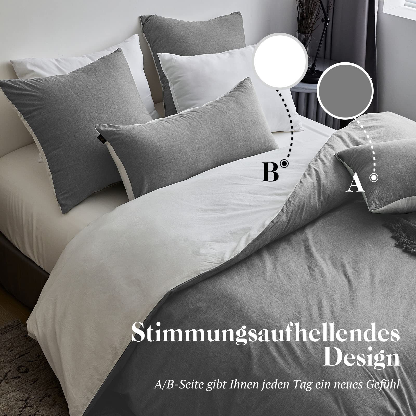 - 【Tolles Hautgefühl】Dieses Bettwäsche Set ist “Stone Washed”, um ihm ein ähnliches Gefühl wie Leinen bettwäsche zu verleihen. Ebenso atmungsaktiv wie saugfähig, bietet es zu jeder Jahreszeit ein besonders angenehmes Hautgefühl, auch in heissen Sommernächten.