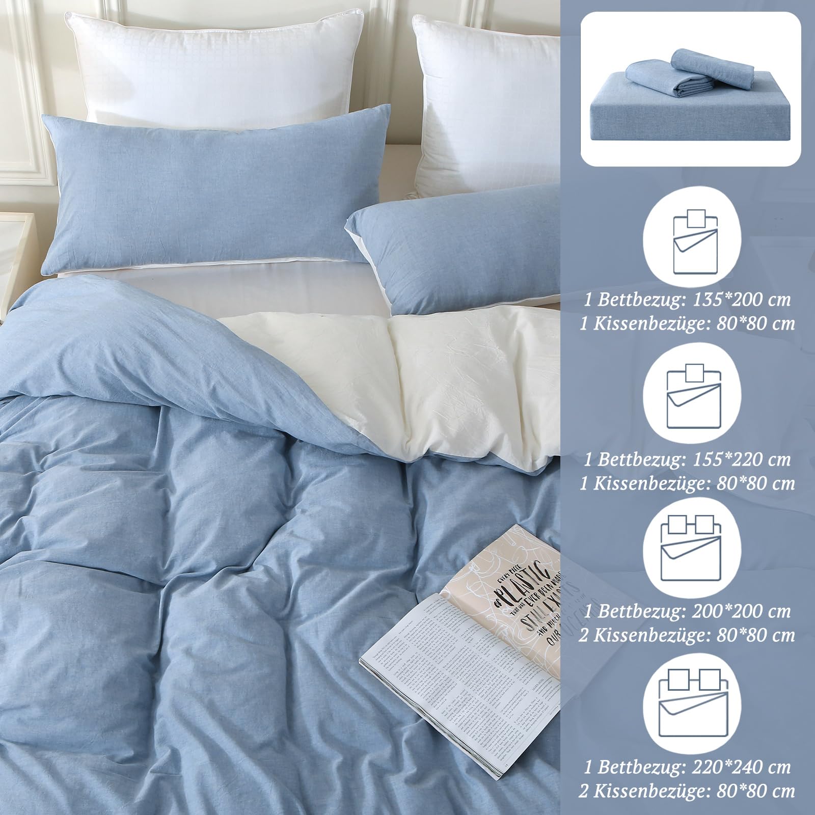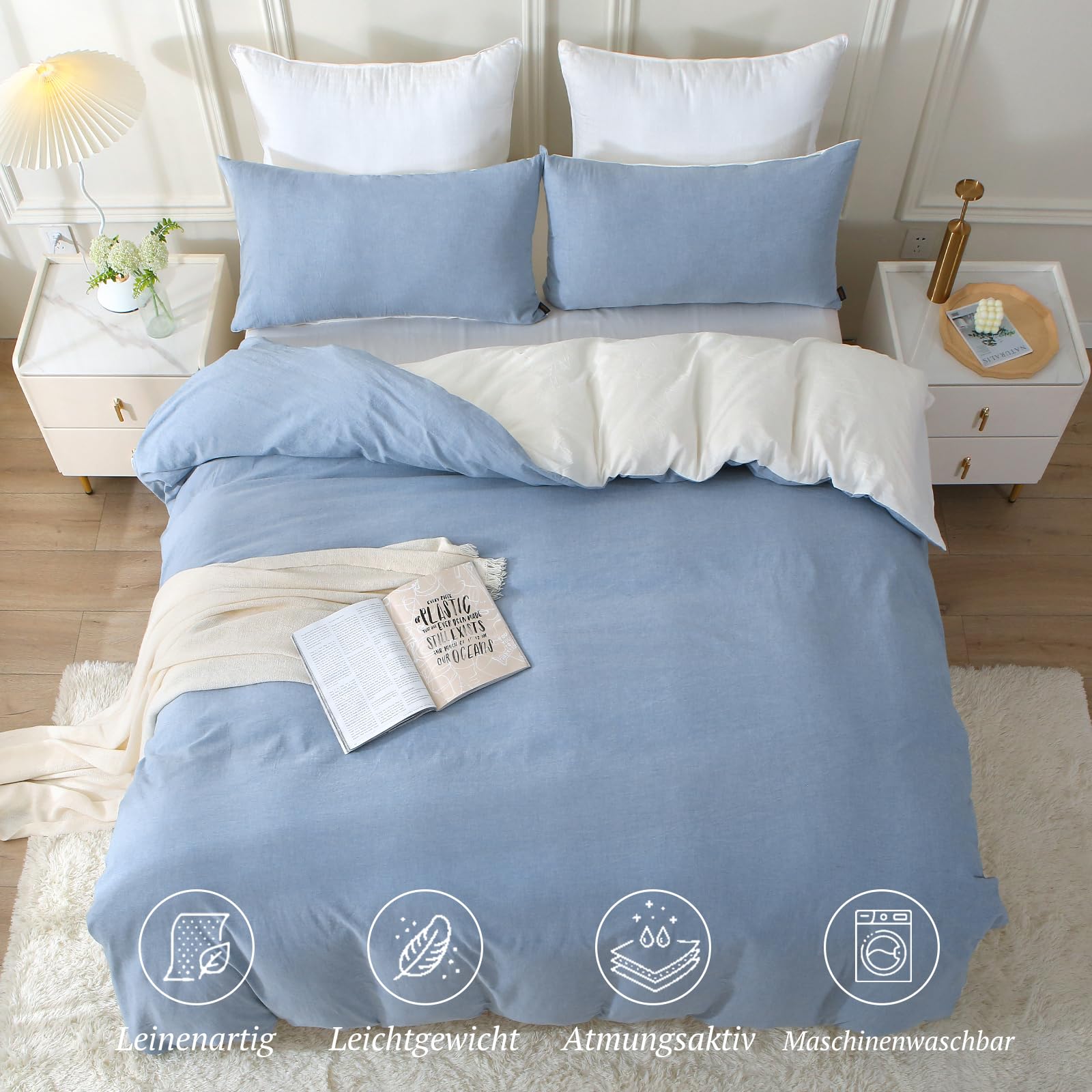 - 【Tolles Hautgefühl】Dieses Bettwäsche Set ist “Stone Washed”, um ihm ein ähnliches Gefühl wie Leinen bettwäsche zu verleihen. Ebenso atmungsaktiv wie saugfähig, bietet es zu jeder Jahreszeit ein besonders angenehmes Hautgefühl, auch in heissen Sommernächten.