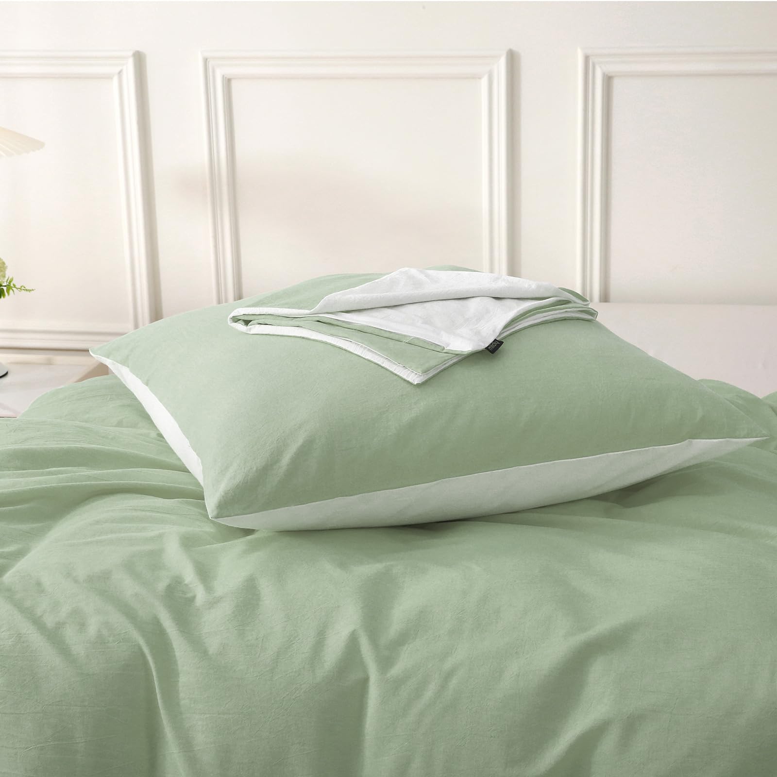 - 【Natürliches Design】 Dieser Bettbezug besteht aus 100 % gewaschener Baumwolle, der Stoff wurde durch ein spezielles Verfahren verarbeitet und die Oberfläche des Stoffes hat ein leichtes natürliches Faltengefühl. Das Crinkle-Finish sorgt für einen lässigen Vintage-Look. Behält die Faltenstruktur ohne Bügeln bei.