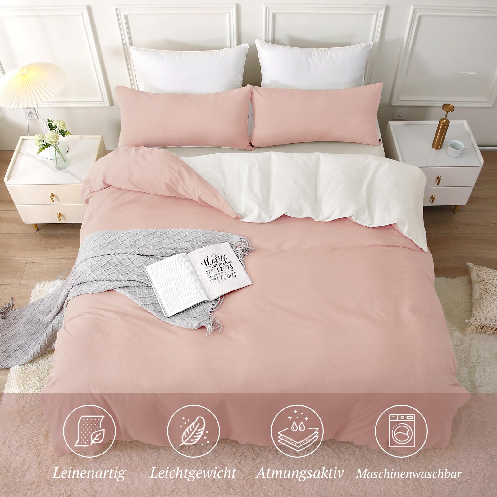 - 【Tolles Hautgefühl】Dieses Bettwäsche Set ist “Stone Washed”, um ihm ein ähnliches Gefühl wie Leinen bettwäsche zu verleihen. Ebenso atmungsaktiv wie saugfähig, bietet es zu jeder Jahreszeit ein besonders angenehmes Hautgefühl, auch in heissen Sommernächten.