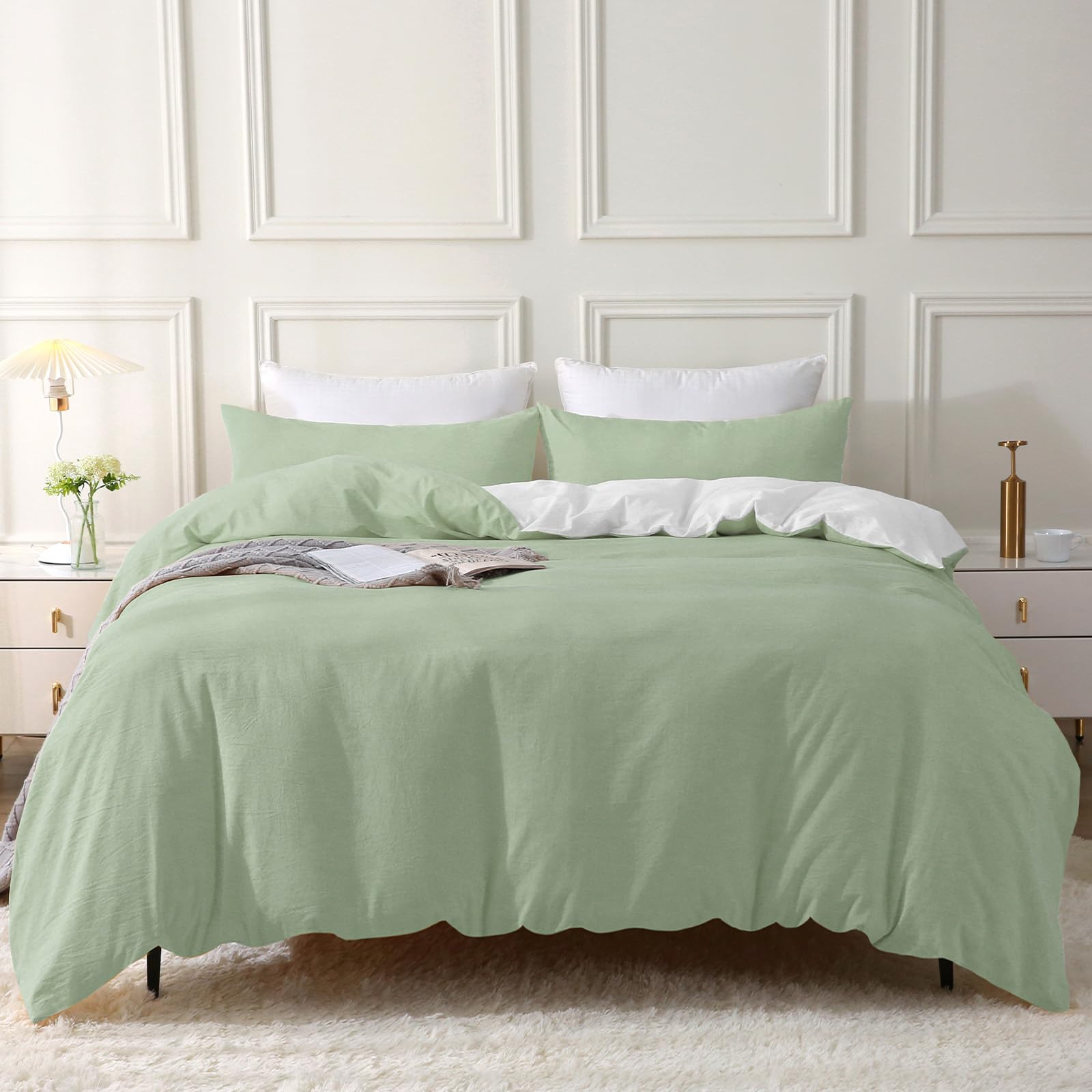- 【Natürliches Design】 Dieser Bettbezug besteht aus 100 % gewaschener Baumwolle, der Stoff wurde durch ein spezielles Verfahren verarbeitet und die Oberfläche des Stoffes hat ein leichtes natürliches Faltengefühl. Das Crinkle-Finish sorgt für einen lässigen Vintage-Look. Behält die Faltenstruktur ohne Bügeln bei.