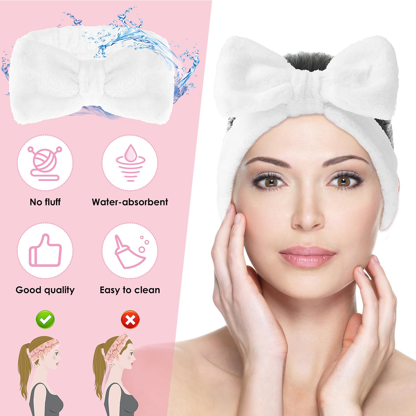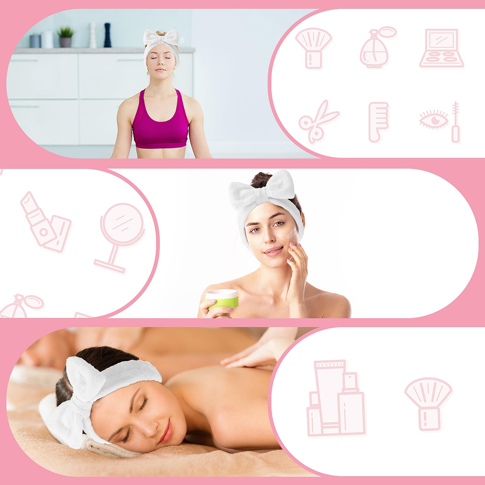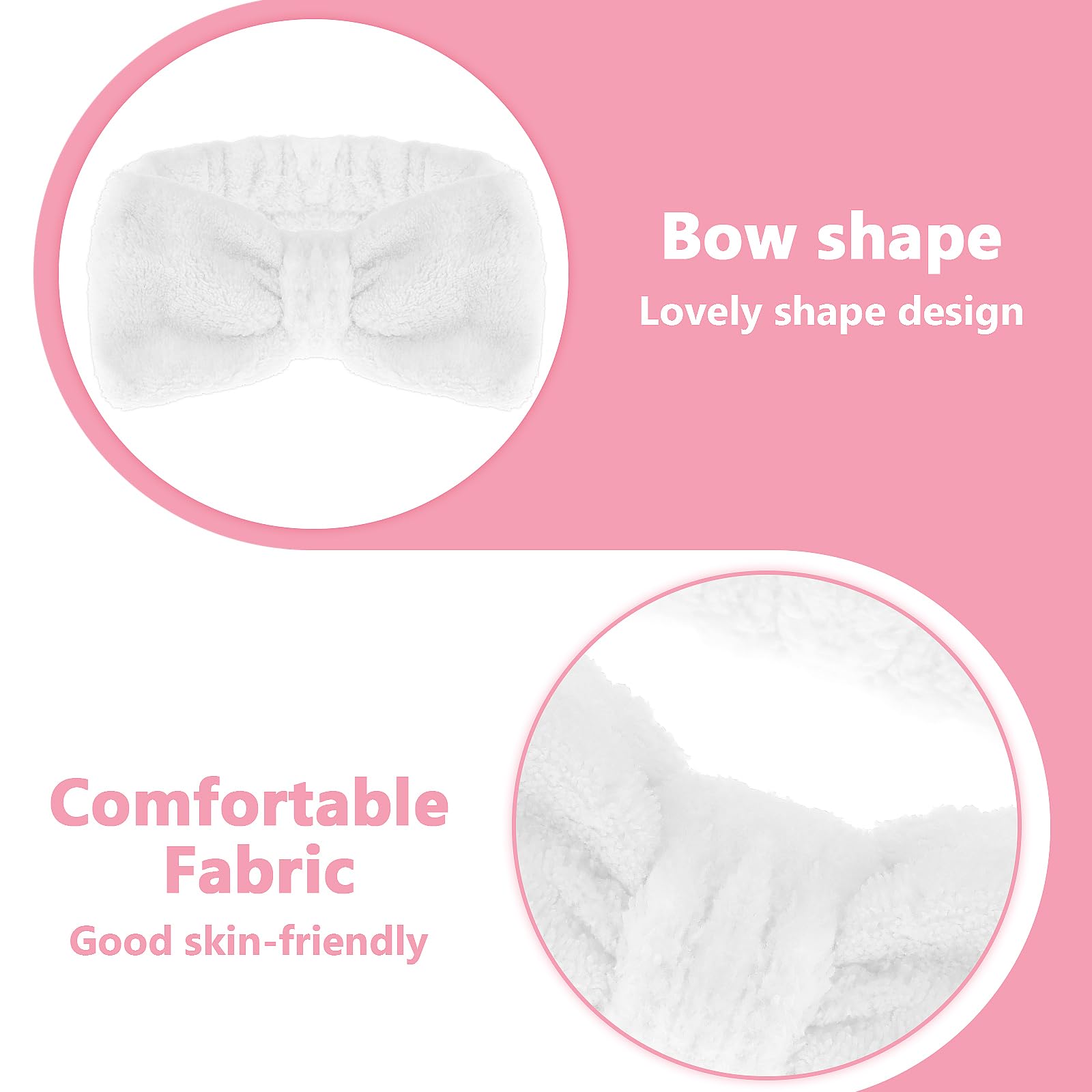 Spa Bowknot Stirnband Damen Spa Haarband Kosmetik, Coral Fleece Makeup Haarbänder Elastic, Cosmetic Stirnband Breitkrempe Korallenvlies Waschen Gesicht Kopfwickel für Dusche Hautpflege Sport(weiss)