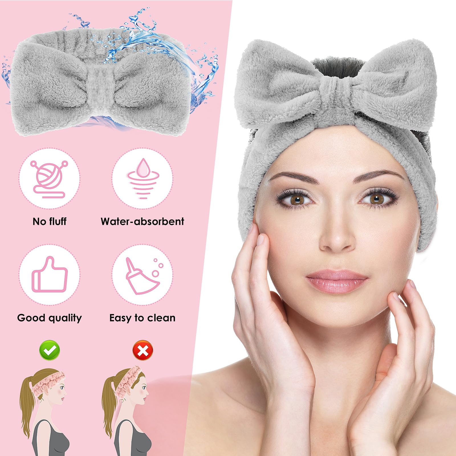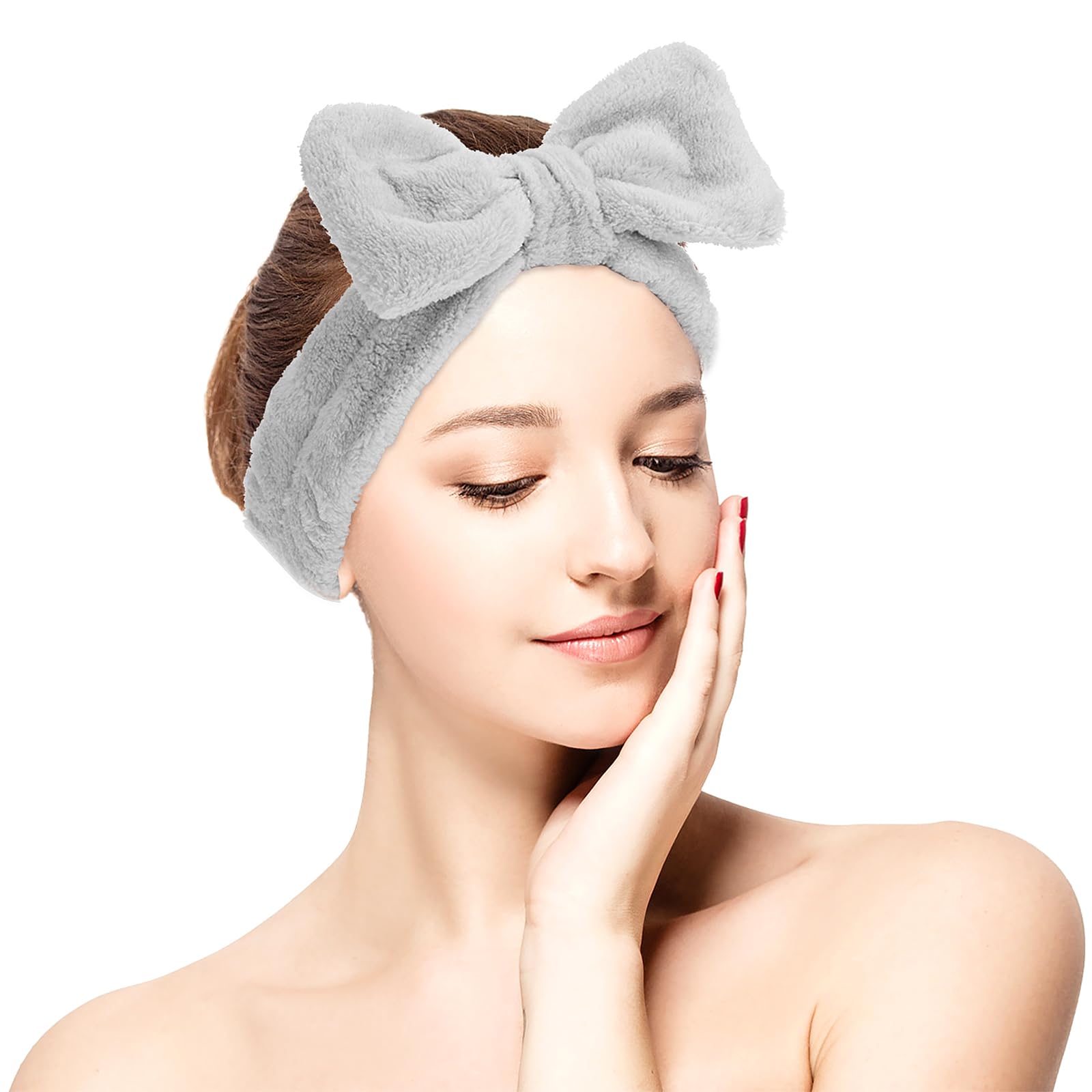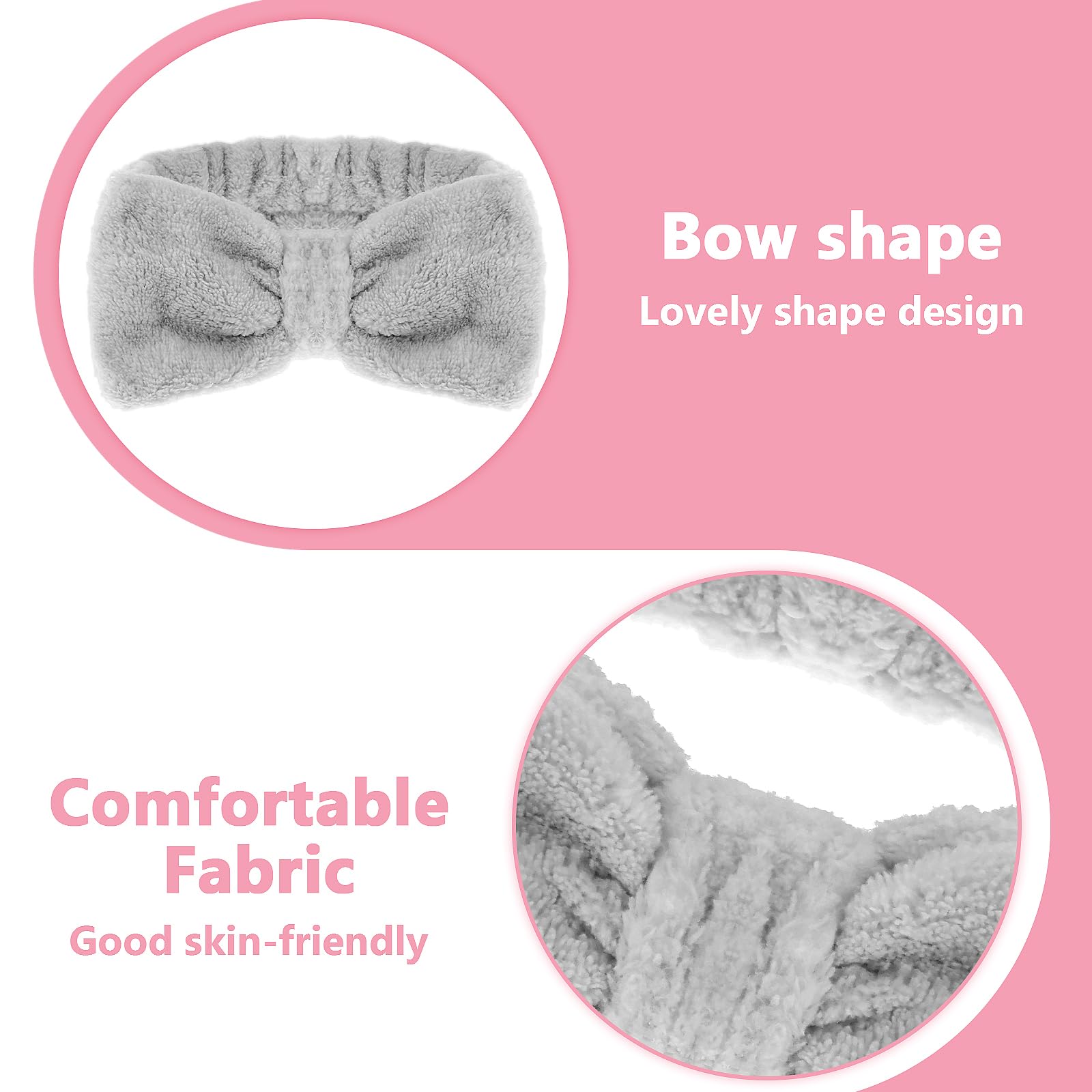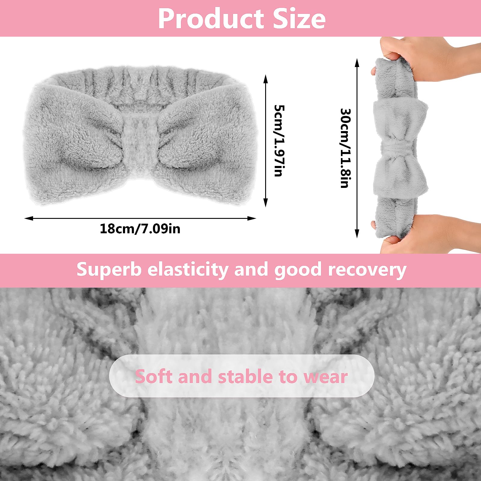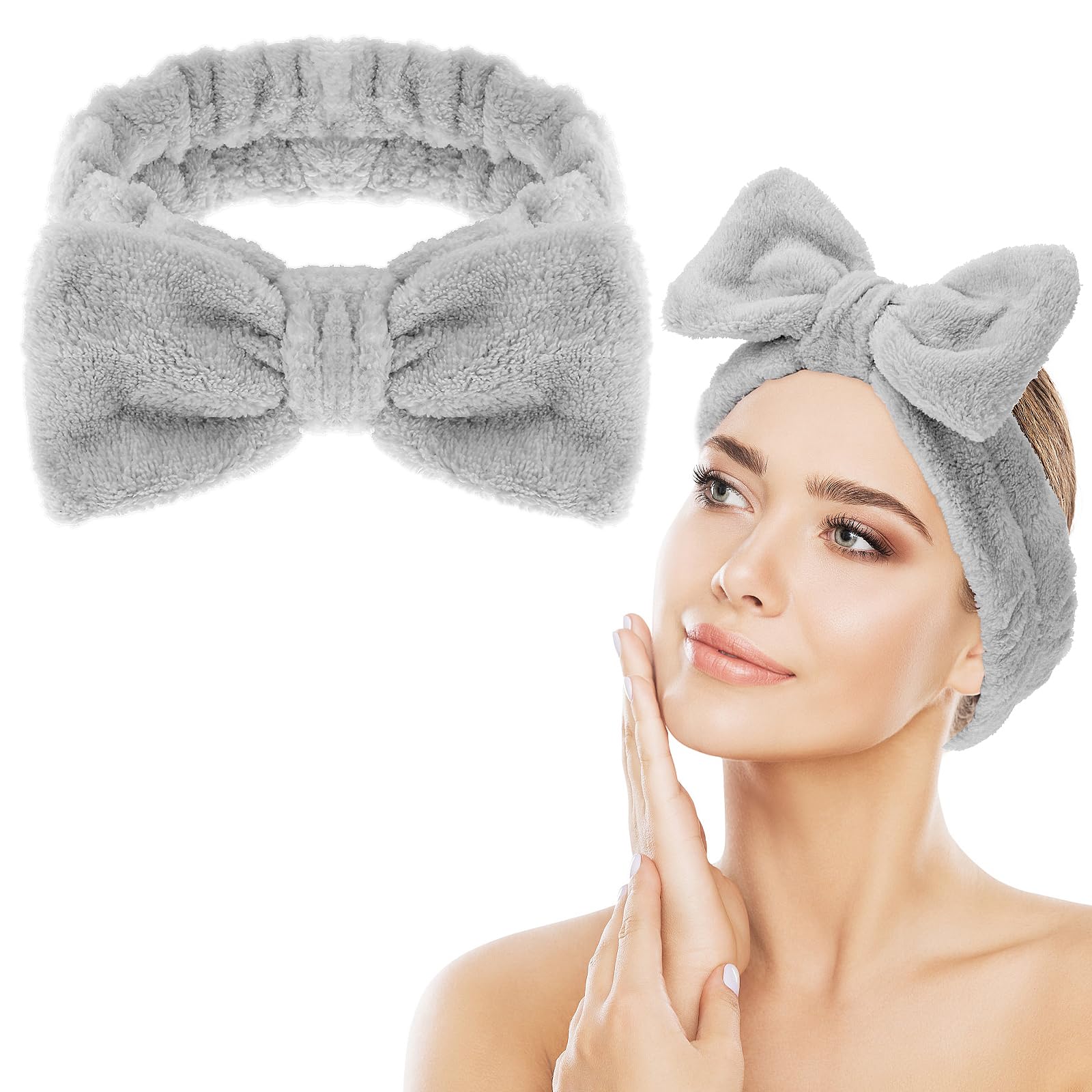 Spa Bowknot Stirnband Damen Spa Haarband Kosmetik, Coral Fleece Makeup Haarbänder Elastic, Cosmetic Stirnband Breitkrempe Korallenvlies Waschen Gesicht Kopfwickel für Dusche Hautpflege Sport(Grau)