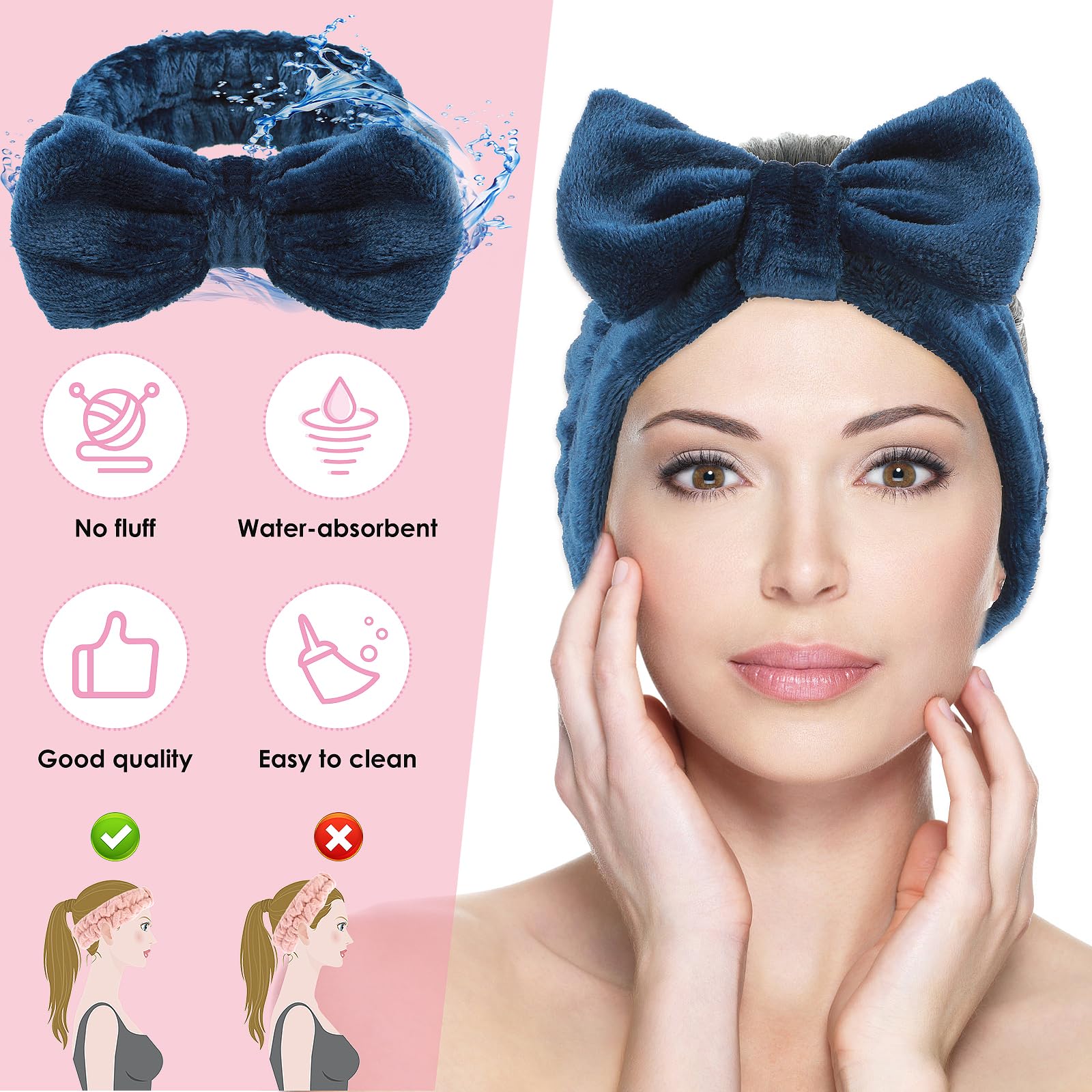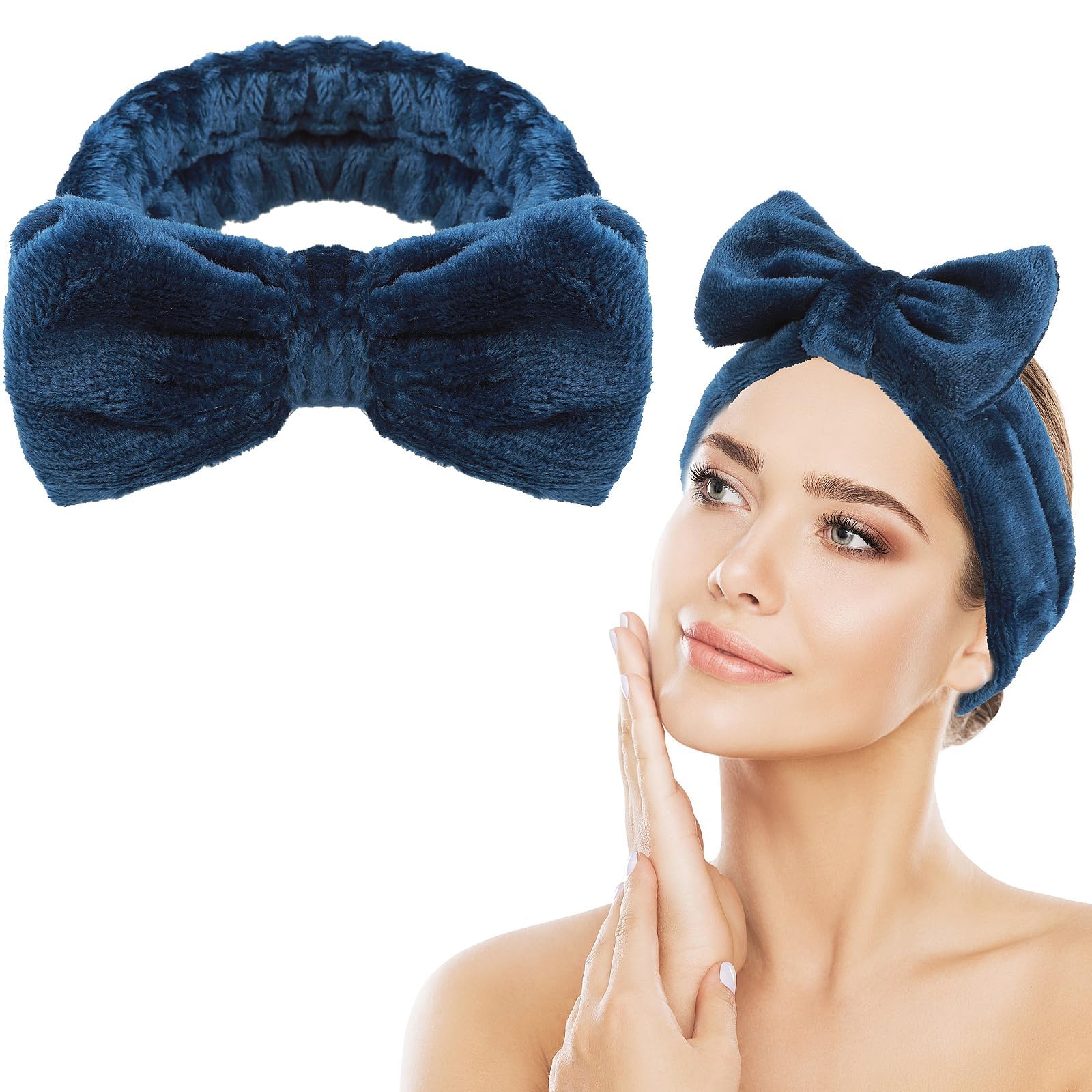 Spa Bowknot Stirnband Damen Spa Haarband Kosmetik, Coral Fleece Makeup Haarbänder Elastic, Cosmetic Stirnband Breitkrempe Korallenvlies Waschen Gesicht Kopfwickel für Dusche Hautpflege Sport(Blau)