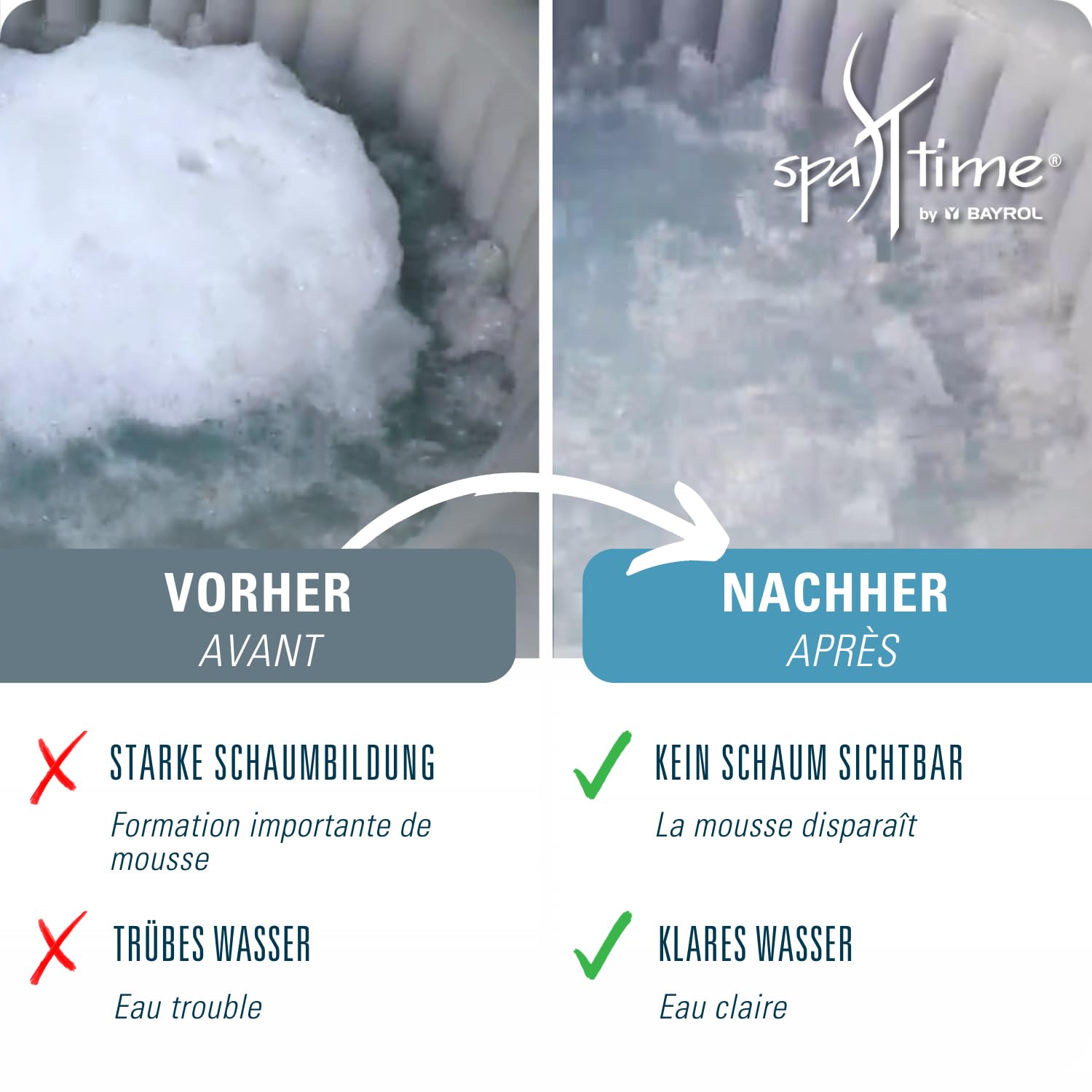 SpaTime by BAYROL - Schaum-Ex 1 L - Whirlpool Entschäumer - Whirlpool Schaum Entferner - Schnelle Wirkung - Antischaummittel Whirlpool Reiniger