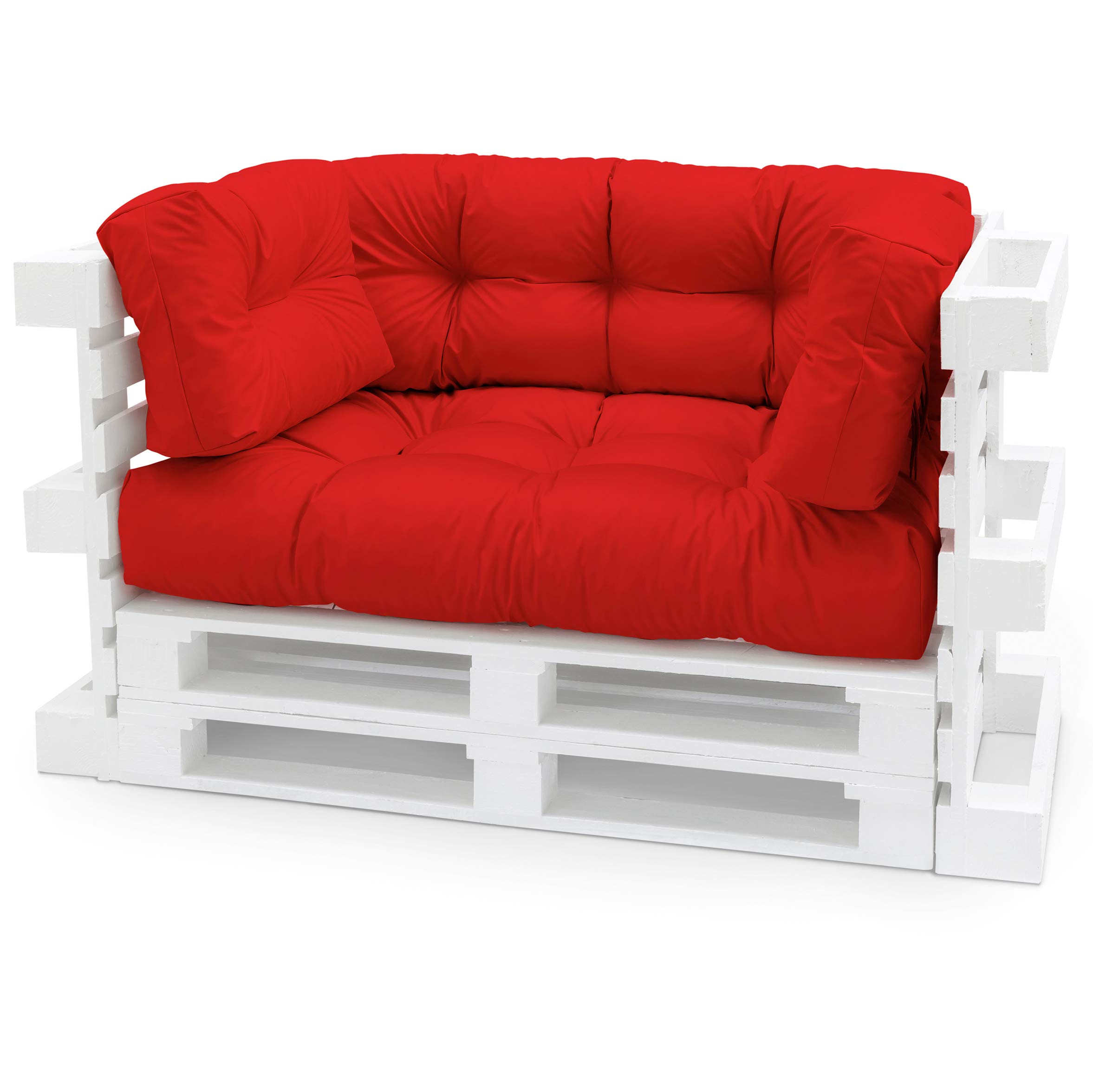 Spatium Palettenkissen Set abnehmbar Bezug wasserdicht gesteppt Palettenauflage Palettenpolster Palettensofa Palettenmöbel Rot 4er Set