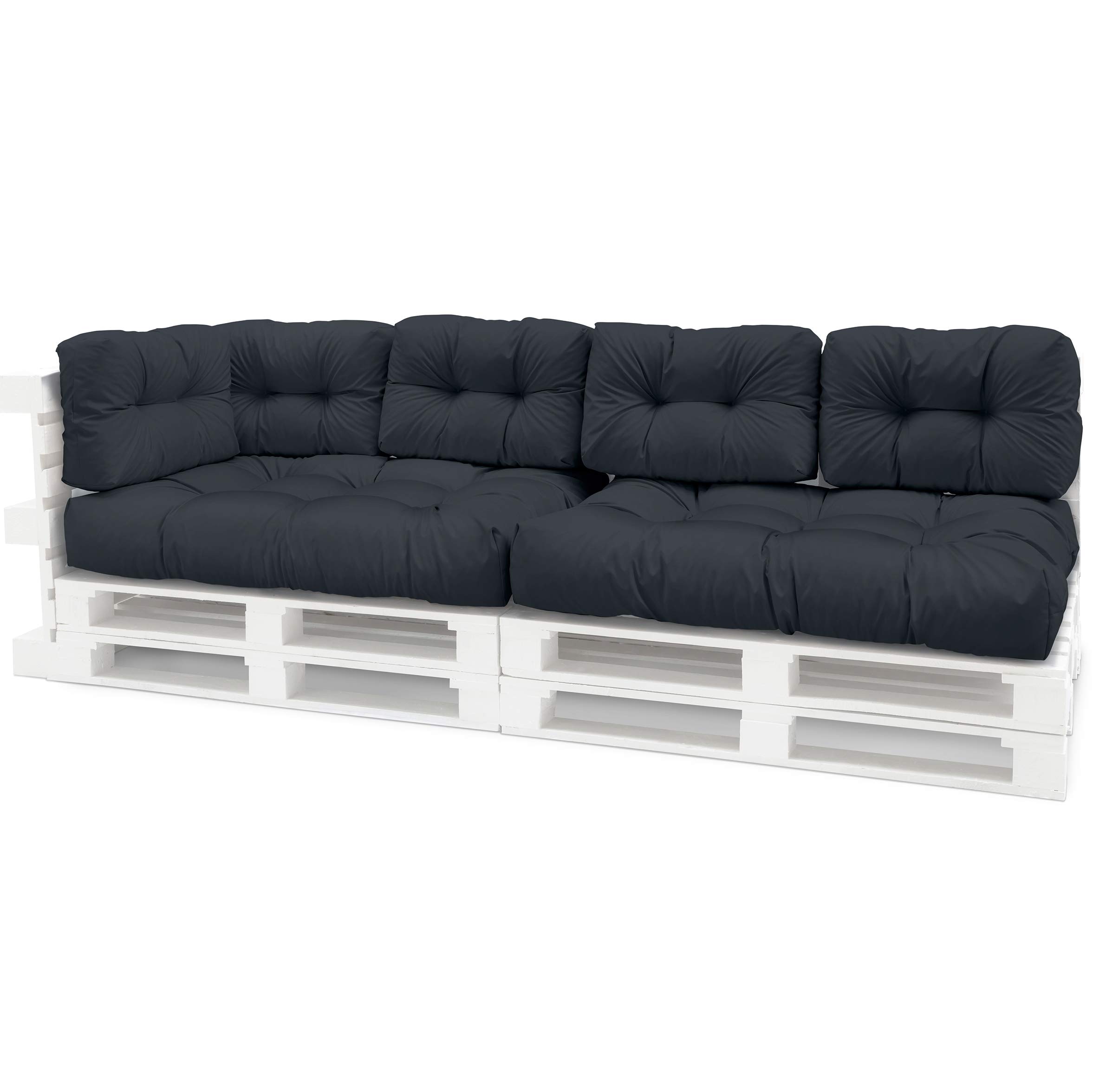 Spatium Palettenkissen Set abnehmbar Bezug wasserdicht gesteppt Palettenauflage Palettenpolster Palettensofa Palettenmöbel Anthrazit 7er Set
