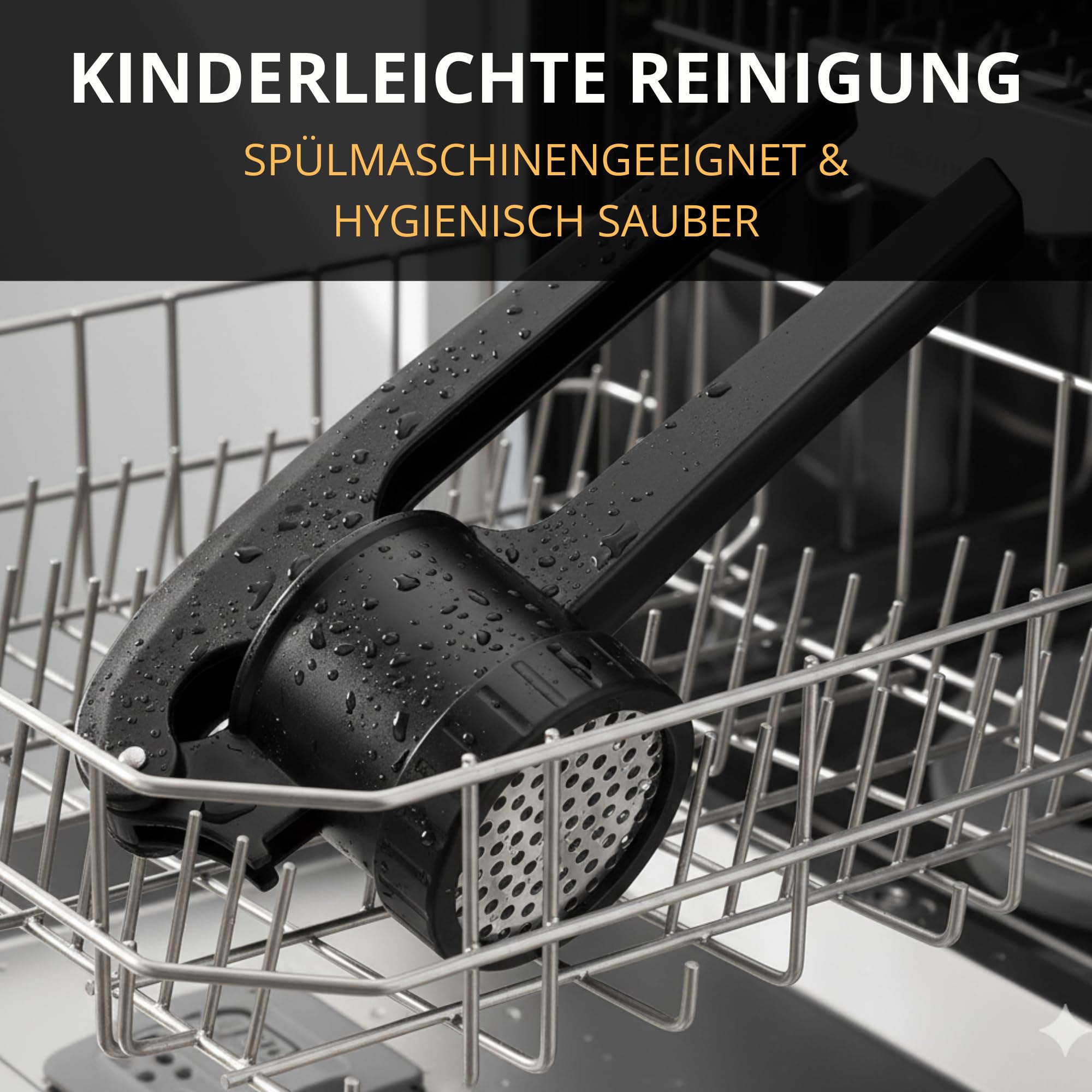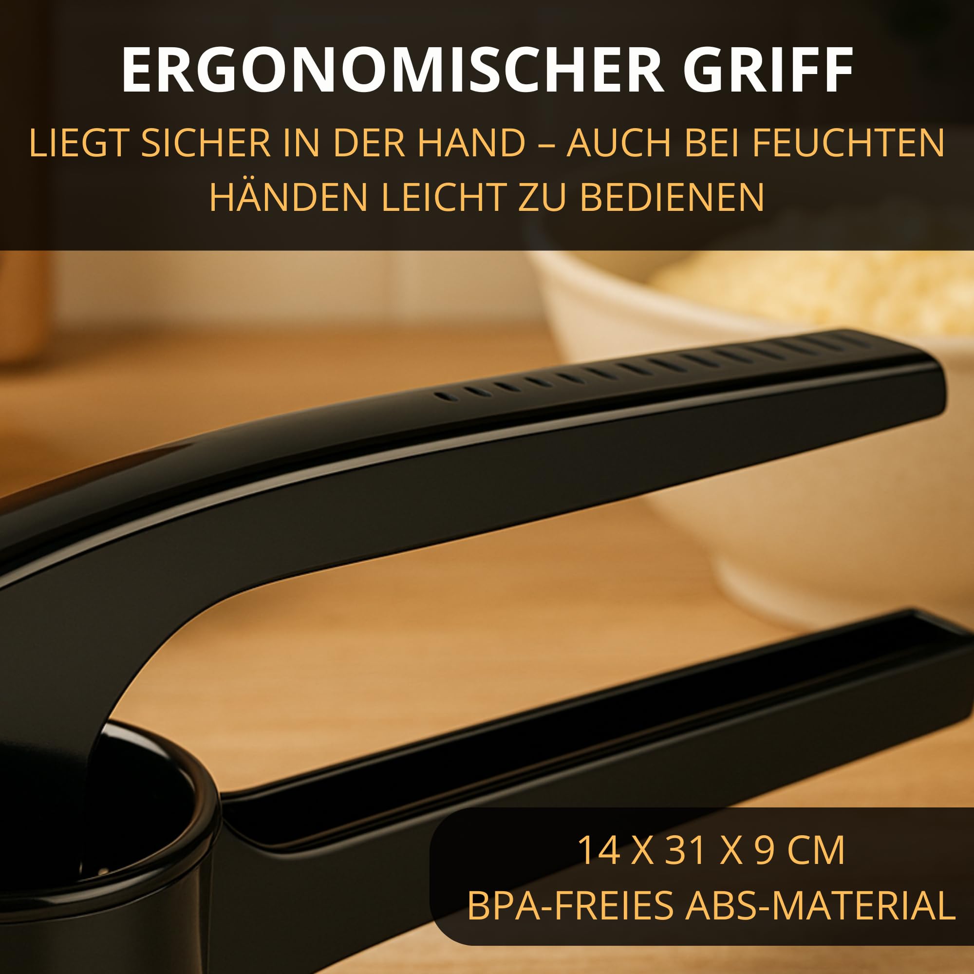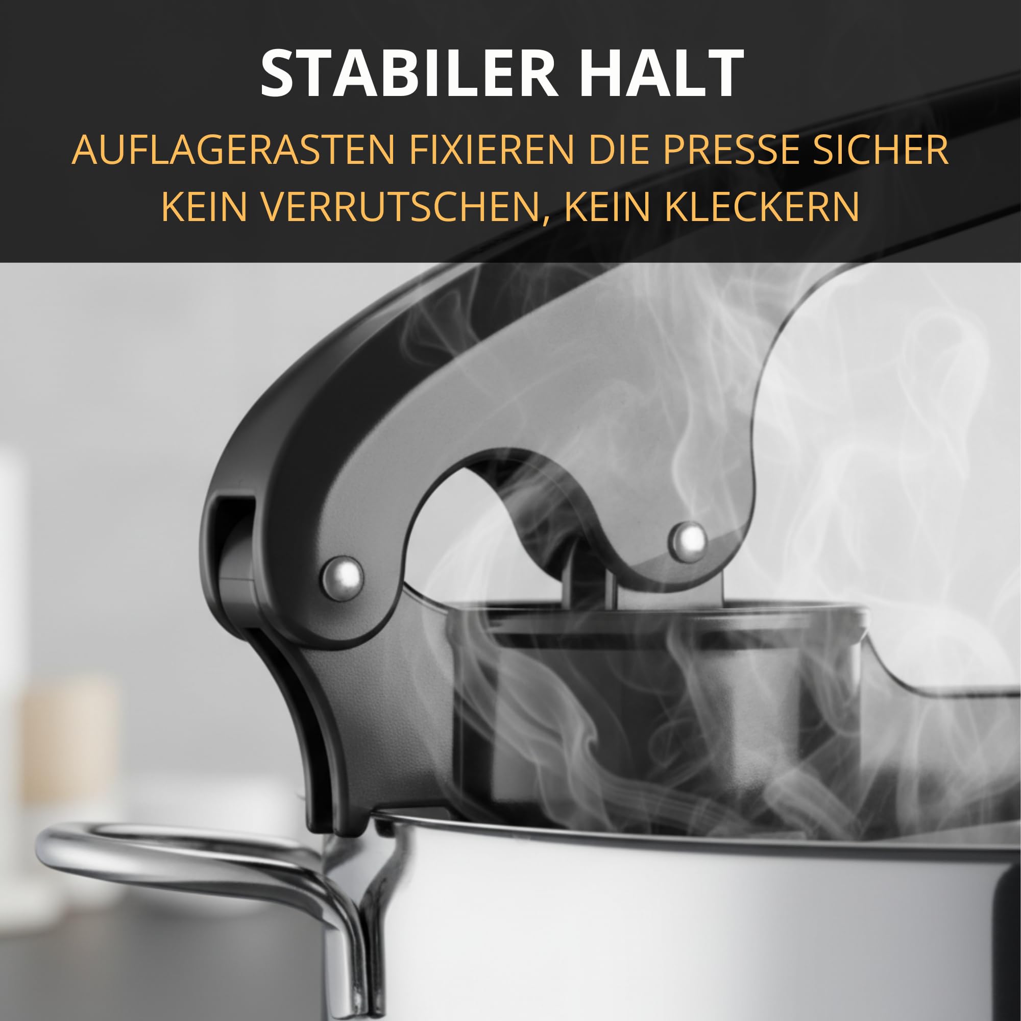 • ERGONOMISCHES DESIGN: Leichtgängiger Hebel, angenehme Griffmulden – müheloses Pressen auch bei grösseren Mengen, ideal für Küche & Familie