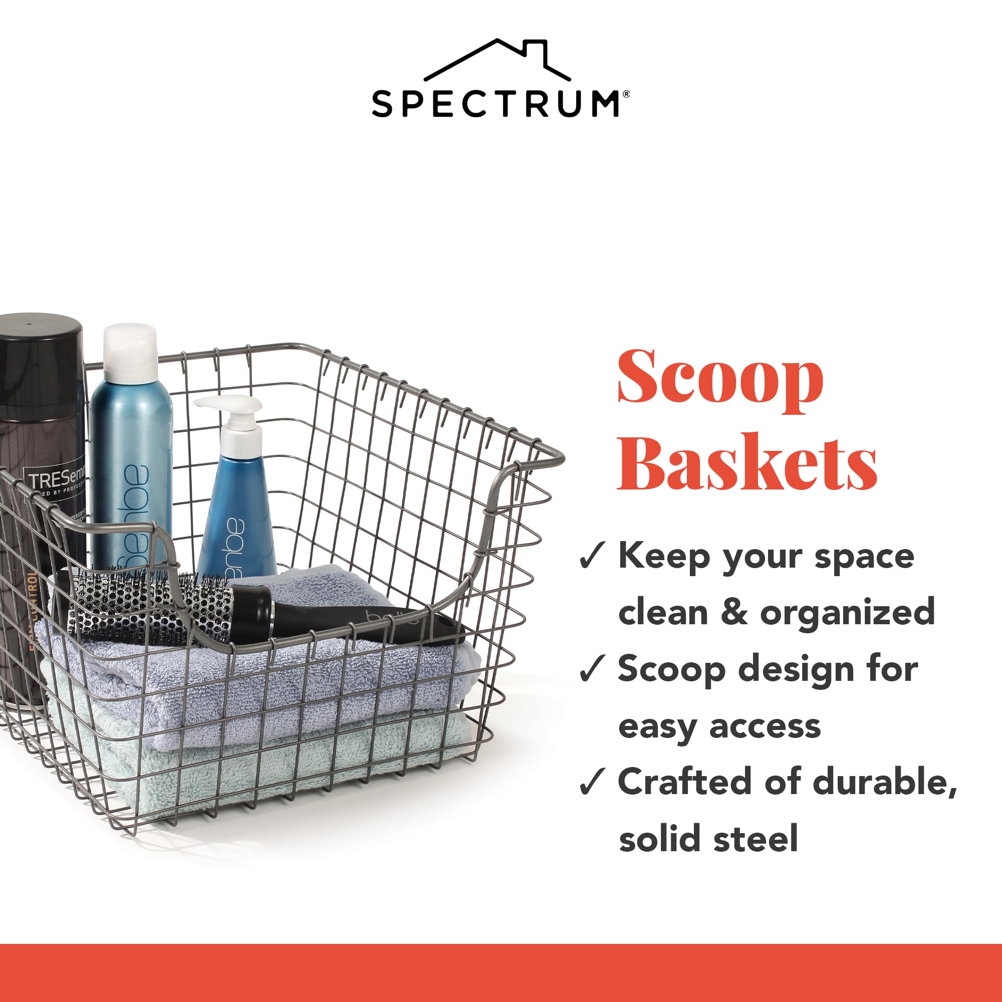 Aufbewahrung trifft Stil. Organisieren Sie Ihr Zuhause mit dem Drahtkorb von Spectrum Diversified. Inspiriert vom beliebten rustikalen Stil, die umwickelten Drahtenden und das Drahtgitter-Design erinnern an einen Vintage-Stil; passend für jedes Bauernhaus. Glätten Sie Ihr zusätzliches Shampoo und Conditioner im Badezimmer, Ihre nicht verderblichen Gegenstände in der Speisekammer, Ihr Zubehör im Schrank, Maler- oder Nähzubehör im Bastelraum oder Ihre Gartenutensilien in der Garage. Mit glatten Schweissnähten und umwickelten Drahtenden ist der gut konstruierte Korb stabil genug, um schwere Dosen oder Gartengeräte zu halten, ohne auf modische Details zu verzerren. Die Vorderseite verfügt über eine Schaufel, damit Sie Ihre Kerzen, Pullover, Schals oder alles andere, was Sie verstauen möchten, leicht greifen können. Offener Draht hilft Ihnen zu sehen, was sich im Korb befindet, so dass Sie das Lieblingsspielzeug Ihres Hundes oder den Hut Ihres Kindes leicht greifen können, ohne endlos zu suchen. Der Vintage-Stil sieht in jedem Raum toll aus, von der Küche über das Bad und sogar in der Garage! Verwenden Sie diesen Korb, um Ihr Zuhause aufzuräumen, während Sie gleichzeitig einen Hauch von Stil hinzufügen. Aus stabilem Stahl