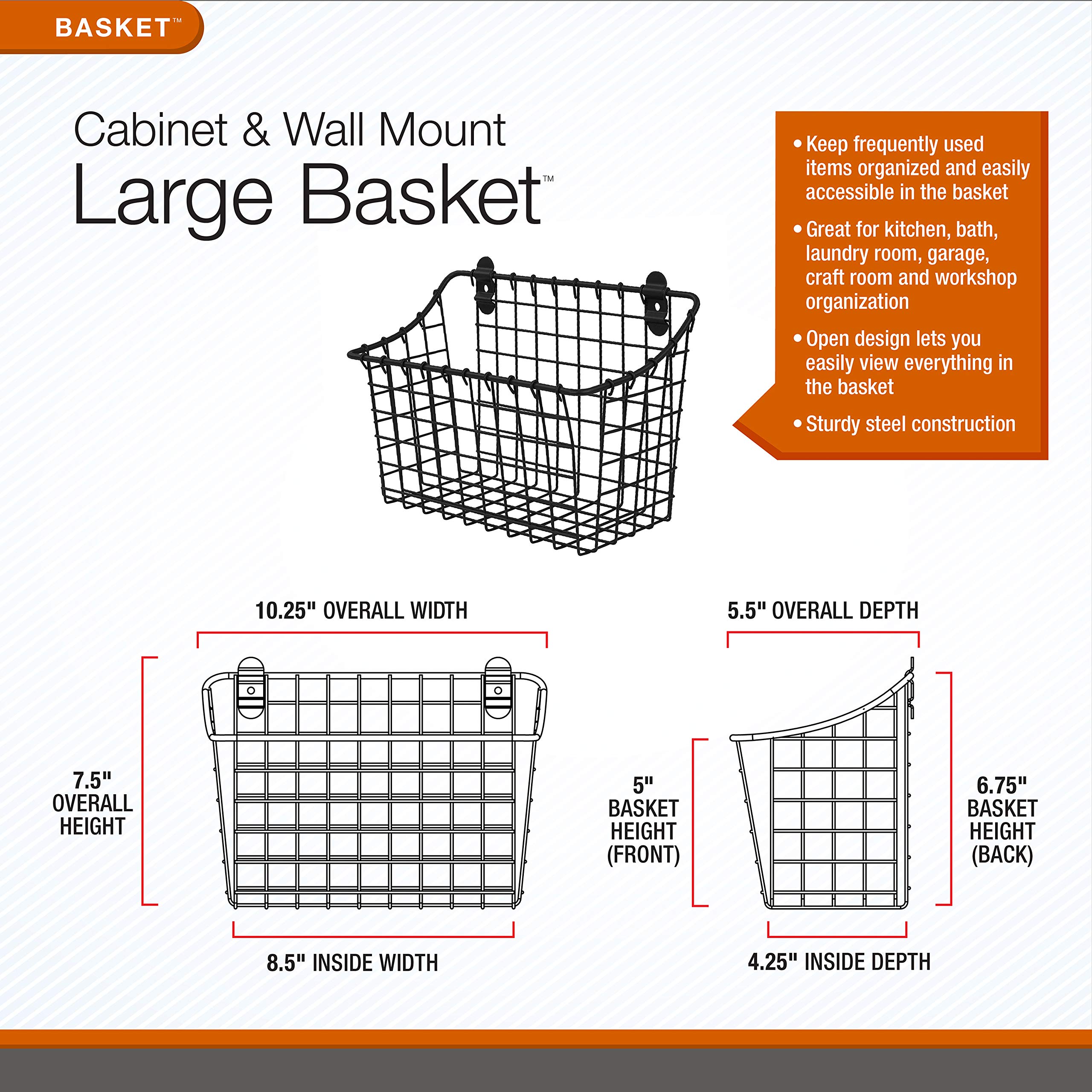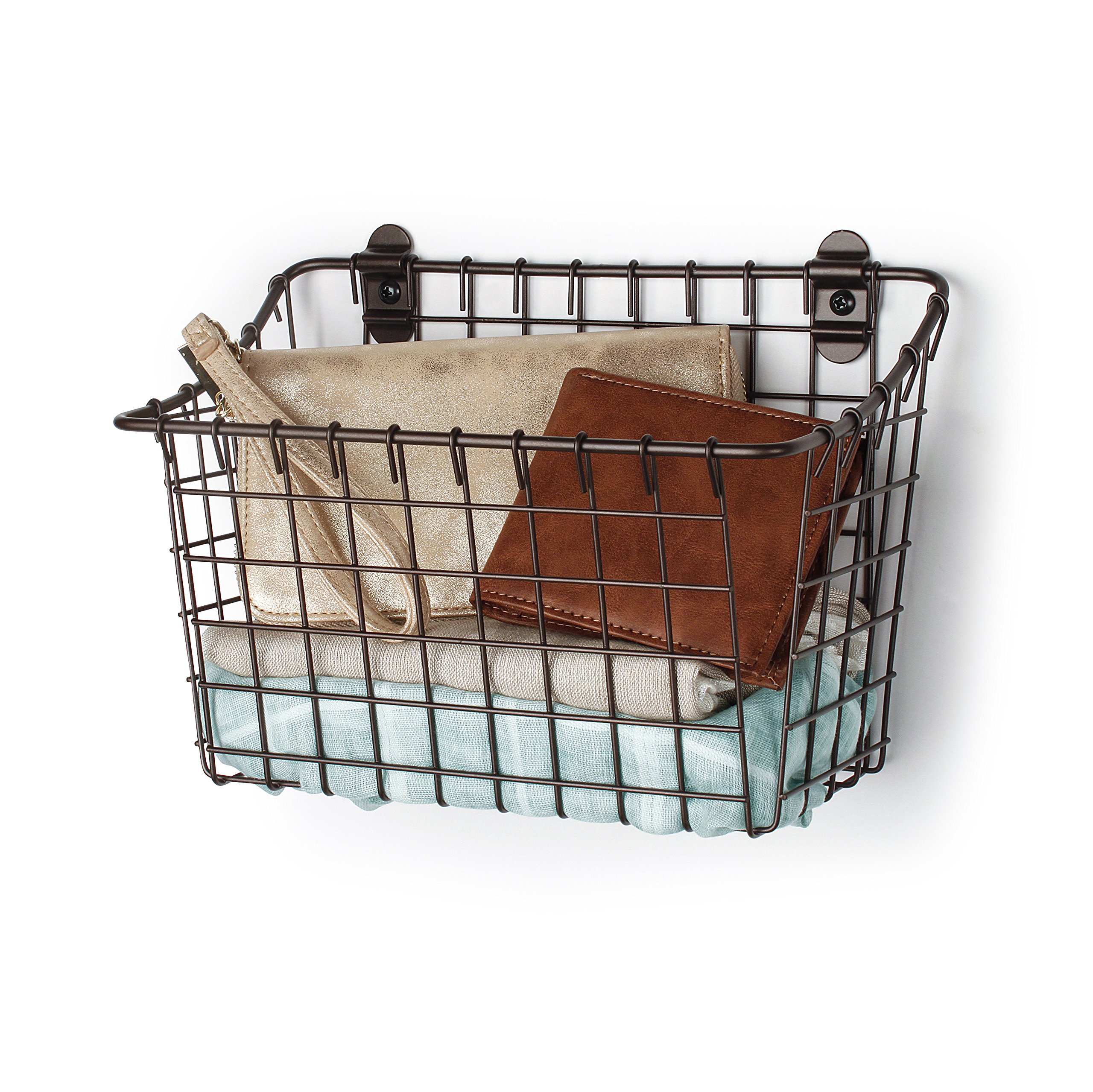 Bewahren Sie Ihre wichtigen Dinge stilvoll auf mit dem grossen Vintage-Schrank und Wandkorb. Verwenden Sie diese Aufbewahrungskörbe, um Ihre Speisekammer, Küche, Bad, Büro, Bastelraum, Garage, Schlafzimmer, Diele oder Schrank zu organisieren. Diese vielseitigen Aufbewahrungskörbe funktionieren in jedem Raum, halten eine Vielzahl von Gegenständen, ohne sich zu verbiegen oder zu knicken. Stabiler Stahlkorb und zuverlässige Halterungen unterstützen Obst, Gemüse, Speisekammer, Snacks, Gewürzflaschen, Ordner, Zeitschriften, Toilettenartikel, Make-up, Gesichtswäsche, Shampoo, Conditioner, Werkzeuge, Bastelbedarf und vieles mehr. Schöne Körbe erfüllen alle Ihre Aufbewahrungsbedürfnisse, um ein organisierteres Zuhause zu schaffen. Umwickelte Drahtenden und Gitterdesigns schaffen einen beliebten rustikalen Look, der zu Häusern im Landhausstil passt. Der Korb im Vintage-Stil hebt die Linie zwischen traditionellem und modernem Stil und verleiht Charakter, ohne veraltet auszusehen. Machen Sie Ihre Lagerung doppelt als Dekor für ein stromlinienförmiges, organisiertes, stilvolles Zuhause. Das vordere Ende des an der Wand montierten Korbes ist etwas tiefer als die Rückseite, um es leicht zu erreichen und zu greifen, was Sie brauchen. Egal, ob Sie es verwenden, um Produkte, Gästehandtücher, extra Badeutensilien, Snacks, Spielzeug oder Zubehör zu halten, Sie werden in der Lage sein, die Sie brauchen, schnell und einfach zu greifen. Befestigen Sie den Organizer einfach an Ihrer Wand. Die Halterungen sind für eine einfache und unkomplizierte Montage im Design integriert. Befestigen Sie den Organizer einfach an der Wand, indem Sie die Schrauben in die Löcher stecken und ein vorgebohrtes Loch in der Wand einführen, dann ziehen Sie die Schrauben fest, bis das Regal fest befestigt ist. Befestigungsmaterial im Lieferumfang enthalten. Inklusive Montagesystem für die Befestigung an Holz. Alternativ können spezielle Hardware erforderlich sein. aus stabilem Stahl