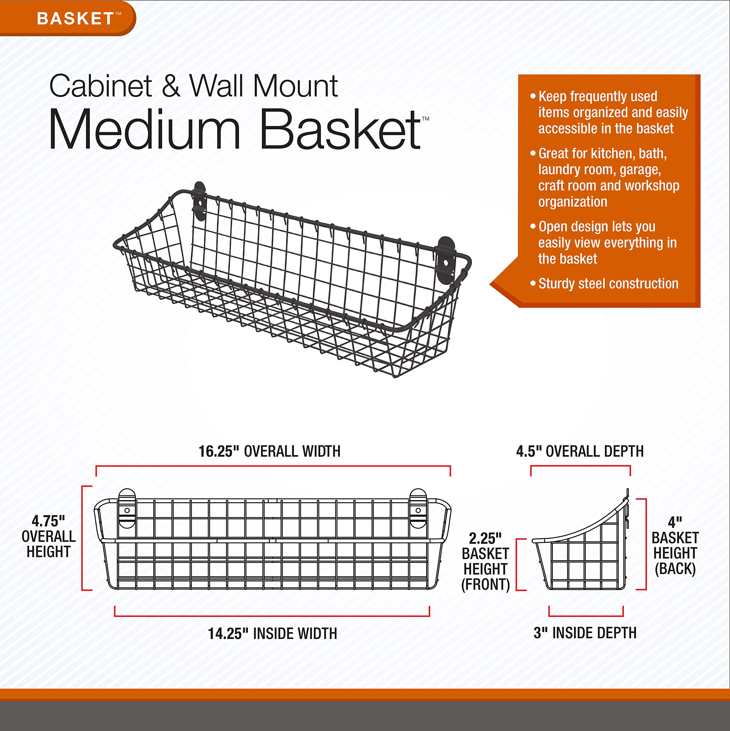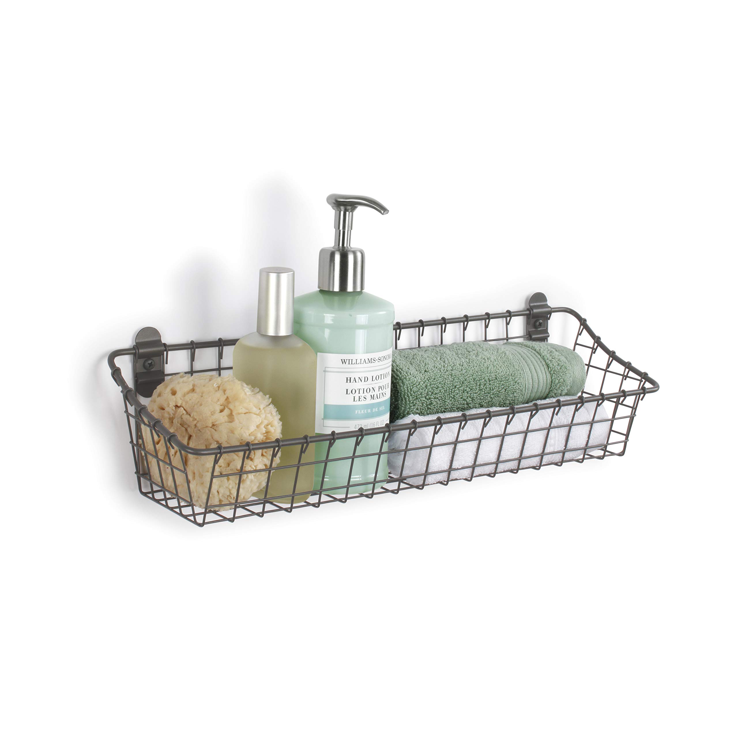Nutzen Sie Ihren Platz an der Wand für die Aufbewahrung mit dem Vintage-Schrank und dem Wandkorb von Spectrum Diversified. Das vordere Ende des Wandkorbs ist etwas tiefer als die Rückseite, um es leicht zu erreichen und zu greifen, was Sie brauchen. Egal, ob Sie es verwenden, um Produkte, Gästetücher, zusätzliche Badeutensilien, Snacks, Spielzeug oder Accessoires aufzubewahren, Sie werden in der Lage sein, die benötigten Gegenstände schnell und einfach zu greifen. Umwickelte Drahtenden und Gitterdesigns schaffen einen beliebten rustikalen Look, der zu Häusern im Landhausstil passt. Der Korb im Vintage-Stil geht die Linie zwischen traditionellem Stil und Modern und verleiht Charakter, ohne veraltet auszusehen. Machen Sie Ihre Aufbewahrung doppelt als Dekoration für ein stromlinienförmiges, organisiertes, stilvolles Zuhause. Verwenden Sie diese Aufbewahrungskörbe, um Ihre Speisekammer, Küche, Bad, Büro, Bastelraum, Garage, Schlafzimmer, Diele oder Schrank zu organisieren. Diese vielseitigen Aufbewahrungskörbe funktionieren in jedem Raum und halten eine Vielzahl von Gegenständen, ohne sich unter dem Gewicht zu verbiegen oder zu knicken. Stabiler Stahlkorb und zuverlässige Halterungen unterstützen Obst, Gemüse, Speisekammerartikel, Snacks, Gewürzflaschen, Ordner, Zeitschriften, Toilettenartikel, Make-up, Gesichtswäsche, Shampoo, Conditioner, Werkzeuge, Bastelbedarf und vieles mehr. Schöne Körbe erfüllen alle Ihre Aufbewahrungsbedürfnisse, um ein organisierteres Zuhause zu schaffen. Befestigen Sie den Organizer einfach an Ihrer Wand. Die Halterungen sind für eine einfache und unkomplizierte Montage im Design integriert. Befestigen Sie den Organizer einfach an der Wand, indem Sie die Schrauben in die Löcher und ein vorgebohrtes Loch in der Wand stecken und dann die Schrauben festziehen, bis sich das Regal fest befestigt anfühlt. Befestigungsmaterial im Lieferumfang enthalten. Inklusive Befestigungssystem für die Befestigung an Holz; alternative Oberflächen benötigen möglicherweise spezielle Hardware. Aus stabilem Stahl