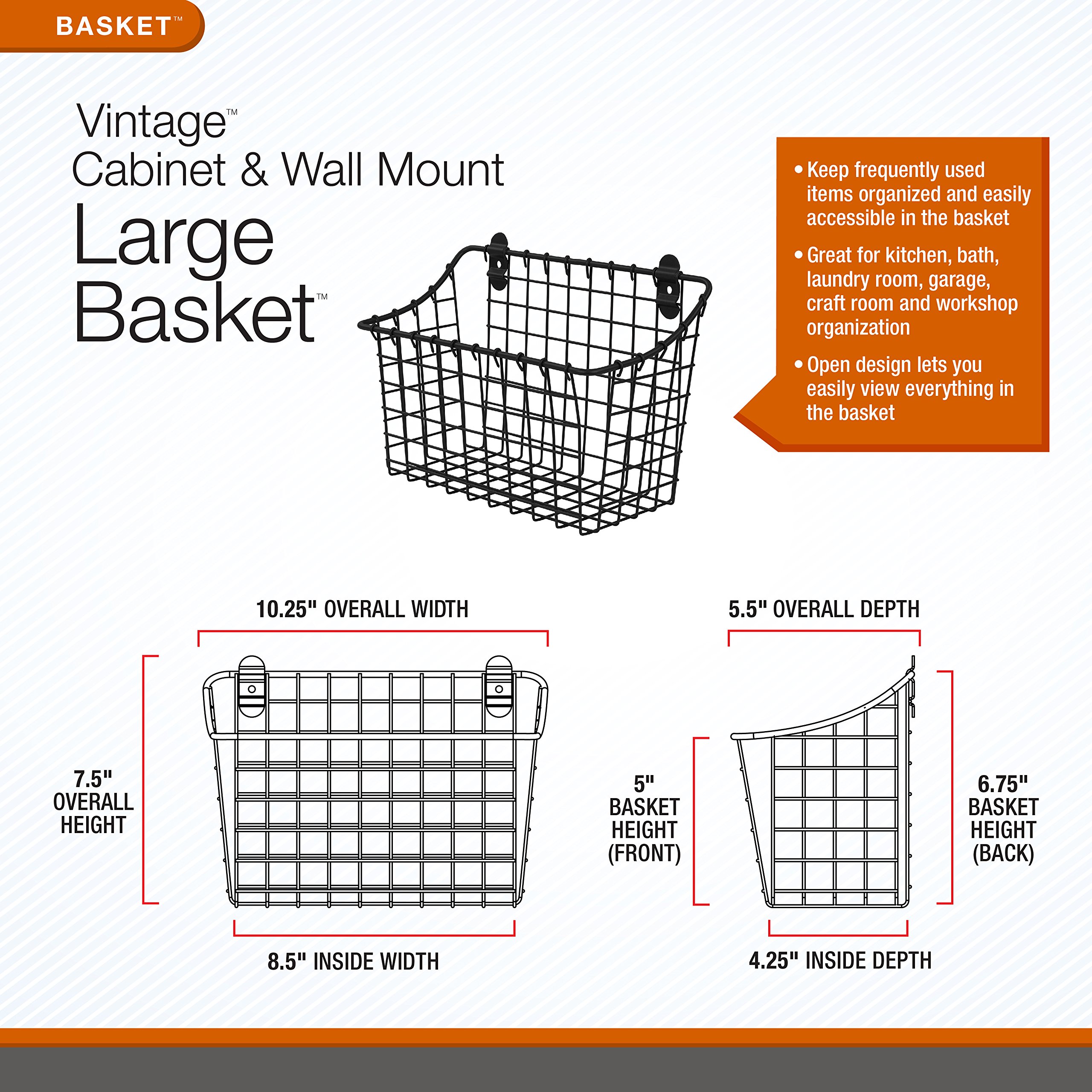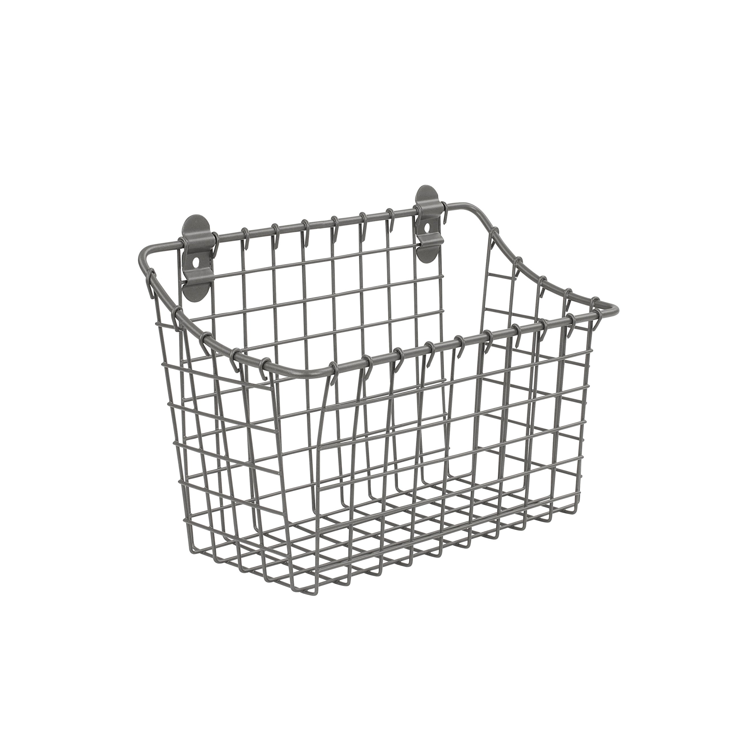 Hergestellt aus stabilem, geschweisstem Stahl. Dieser Vintage-Drahtkorb für die Wand bietet Haltbarkeit und ein vom Bauernhaus inspiriertes Design. Die industrielle graue Oberfläche fügt sich nahtlos in rustikale moderne und industrielle Innenräume ein, während die offene Drahtkonstruktion Sichtbarkeit für schnellen Zugriff bietet. Verwenden Sie ihn als Aufbewahrungskorb zur Wandmontage in Küchen, Speisekammern oder Waschküche oder verwenden Sie ihn als hängende Drahtkörbe für die Organisation von Badutensilien und Toilettenartikeln.