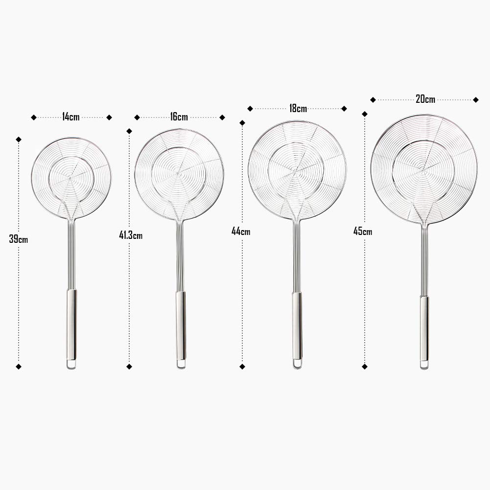 • 【Perfekte Grösse】 Durchmesser: 18 cm, Gesamtlänge: 44 cm, Gewicht: 170 g. Der lange Griff schützt Ihre Hände vor heissem Fett und Öl beim Kochen oder Frittieren.