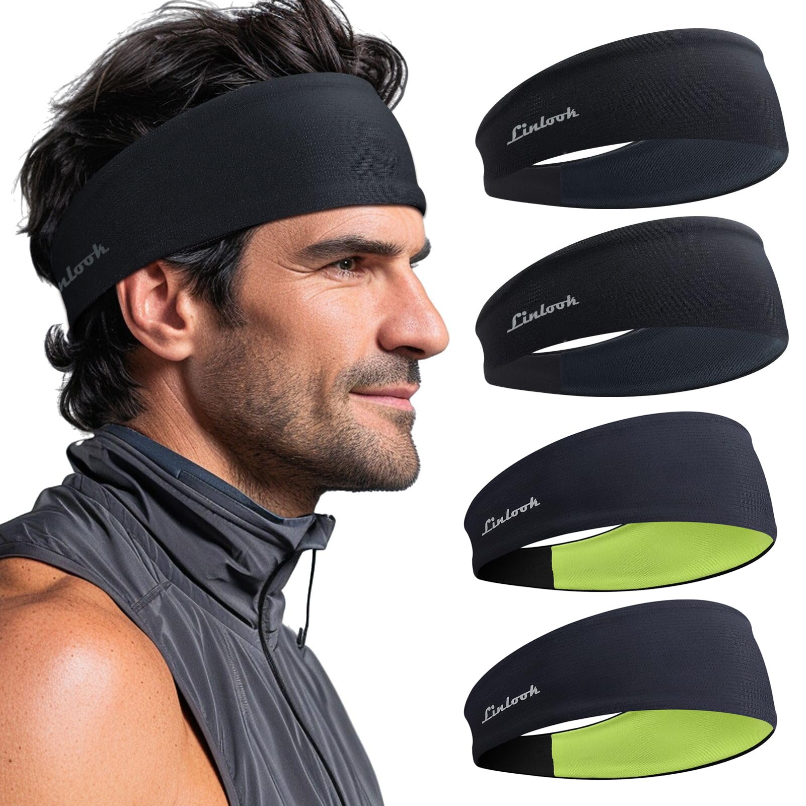 • ????【Moisture Wicking】Linlook Herren Stirnband Sehr Feuchtigkeitstransport und Verdunstung, Effektiv Absorbiert Schweiss und Trocknet Schnell. Verhindert, Dass Schweiss Während Des Trainings In Die Augen Tropft und ErmöGlicht Es Ihnen, Sich Mehr Auf Ihr Training Zu Konzentrieren.