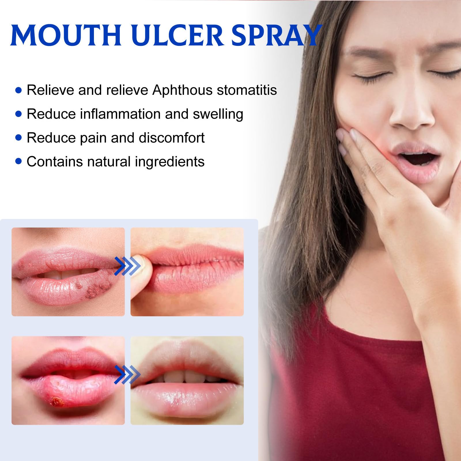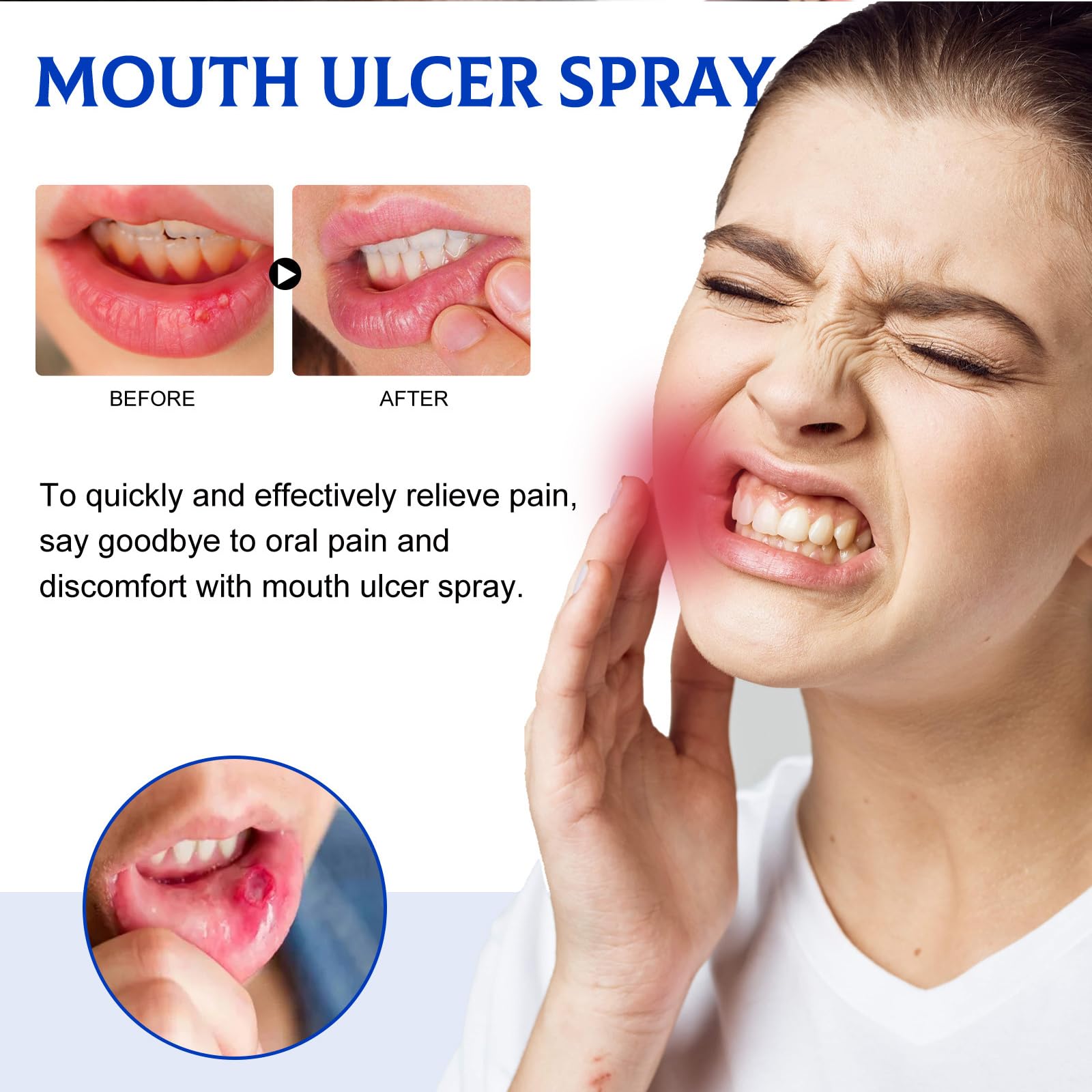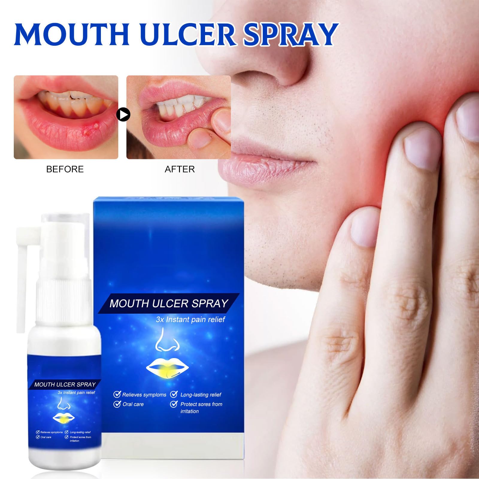 Spray für Mundgeschwüre, neues Spray zur Linderung von Zahnschmerzen, Spray, zur Erleichterung von Geschwüren, gegen Krebserkrankungen, Reparatur von Zahnfleischgewebe, Reinigungsspray für
