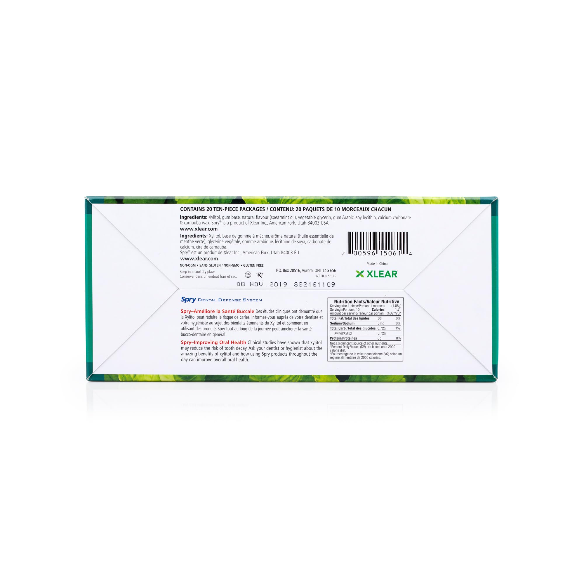 Spry Fresh Natürliches Xylit Kaugummi – Zahnpflege-Kaugummi ohne Aspartam, Zuckerfrei, Glutenfrei, Non-GMO (Spearmint, 10 Count Blister Cards - Pack of 20)
