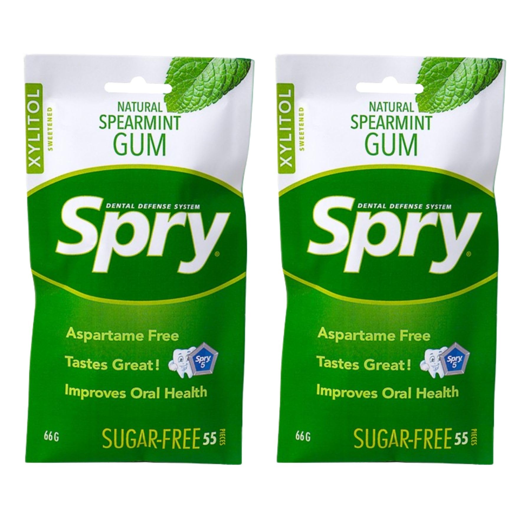 Spry On The Go Fresh Natürliches Xylit Kaugummi – Zahnpflege-Kaugummi ohne Aspartam, Zuckerfrei, Glutenfrei, Non-GMO (Spearmint, 55 Count - Pack of 2)