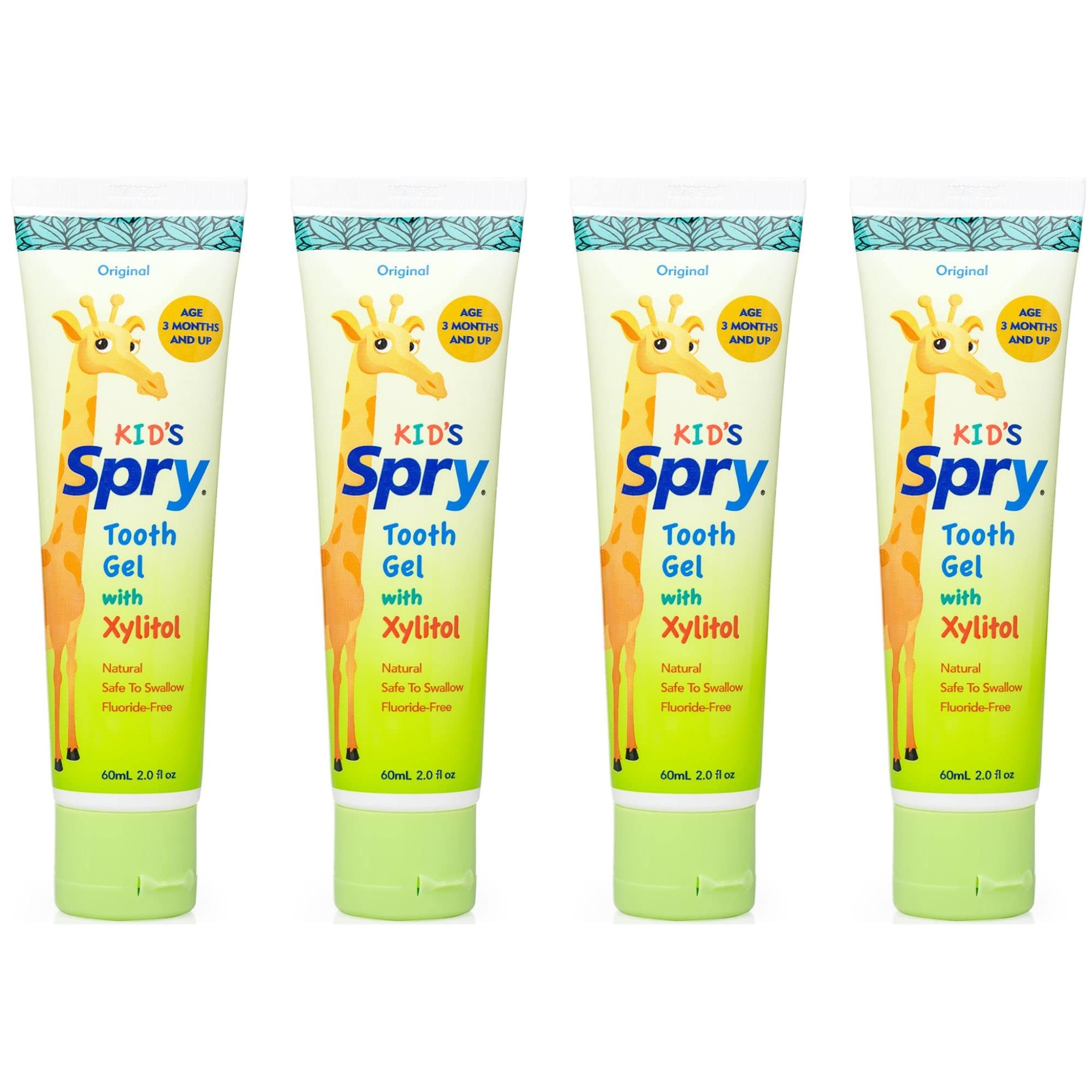 Spry Natürliche Xylit Zahnpasta für Kinder – Fluoridfreie Zahncreme für die gesunde Entwicklung neuer Zähne Original Geschmack | 60 ml (4 Packung)