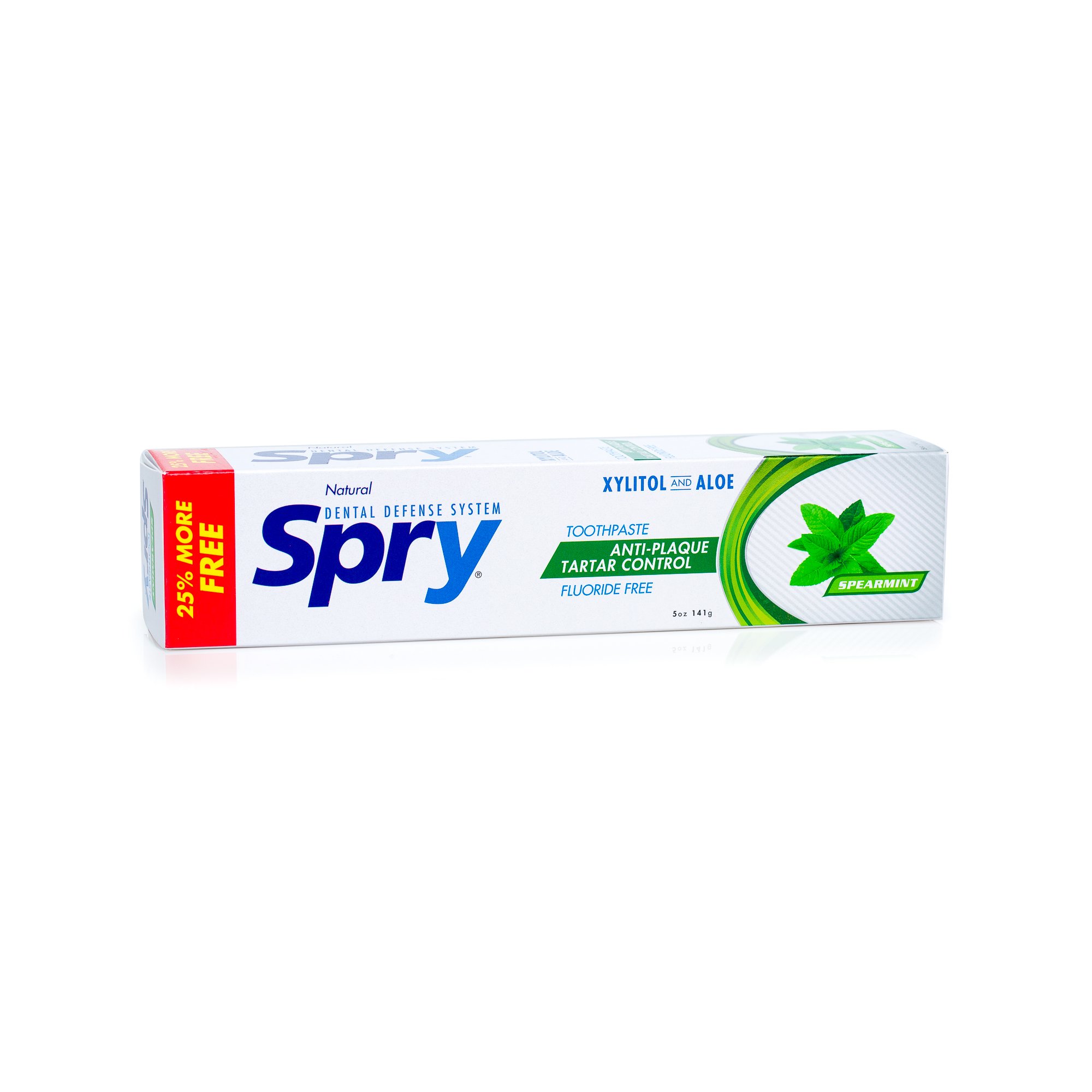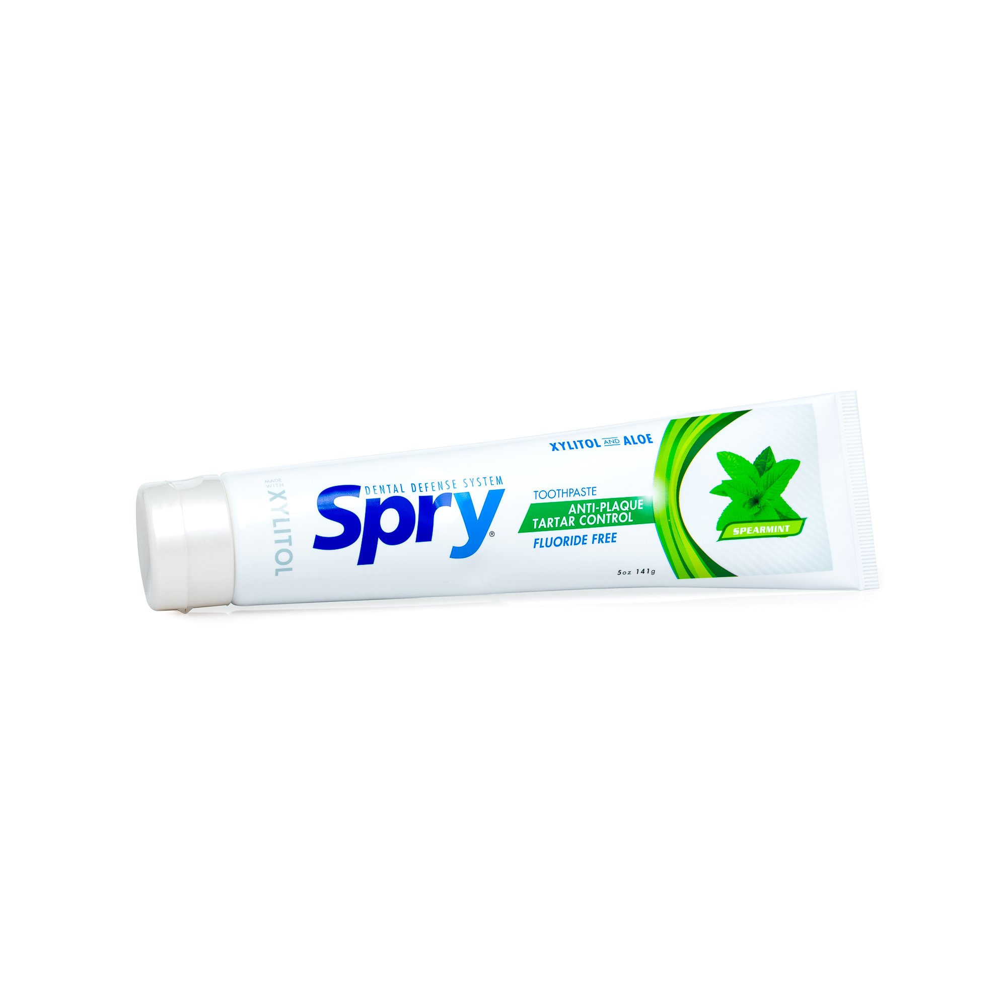 Spry Natürliche Xylitol Zahnpasta Fluoridfrei 141g - Sanft für Empfindliche Zähne, Aufhellend, Remineralisierend, Erfrischt den Atem, Feuchtigkeitsspendend Mund, Spearmint (1 Stück)