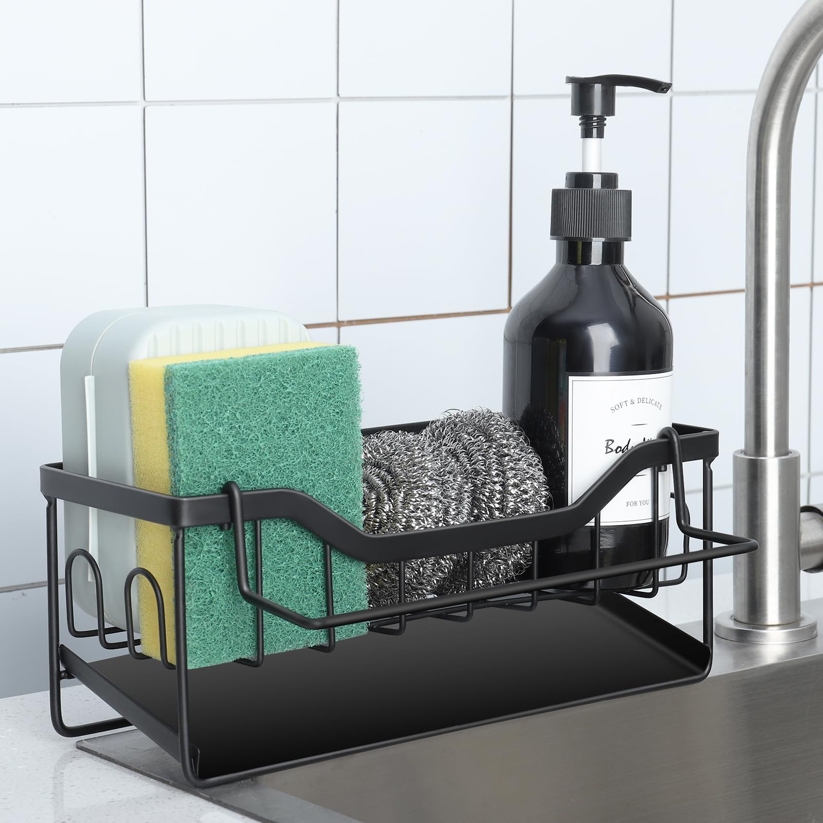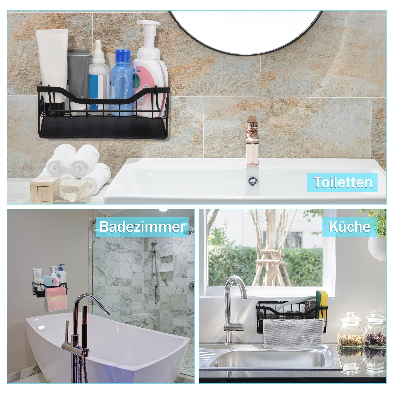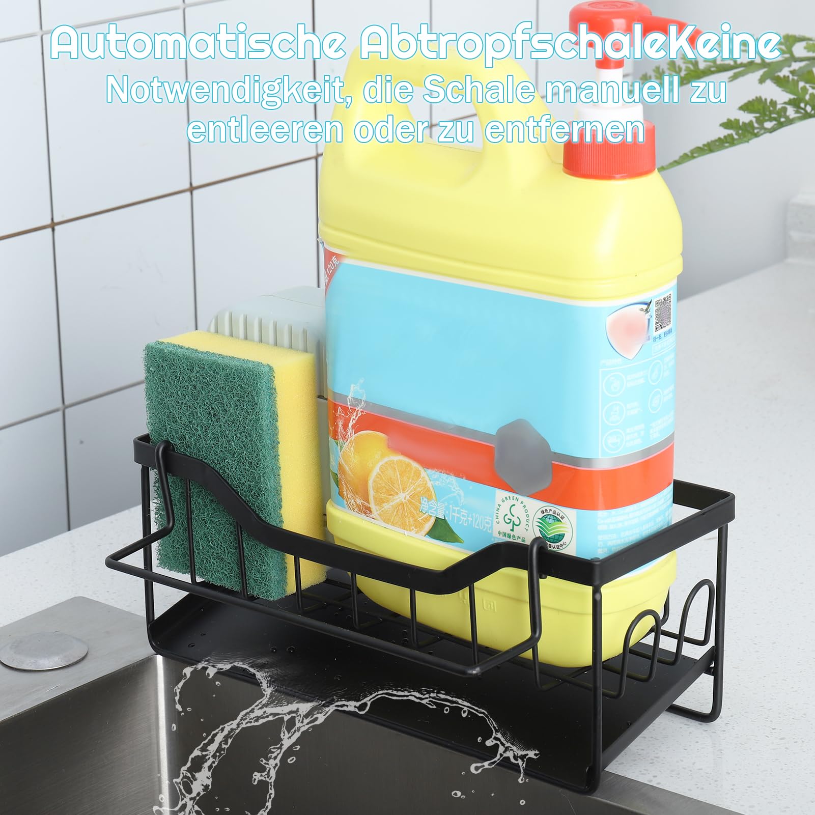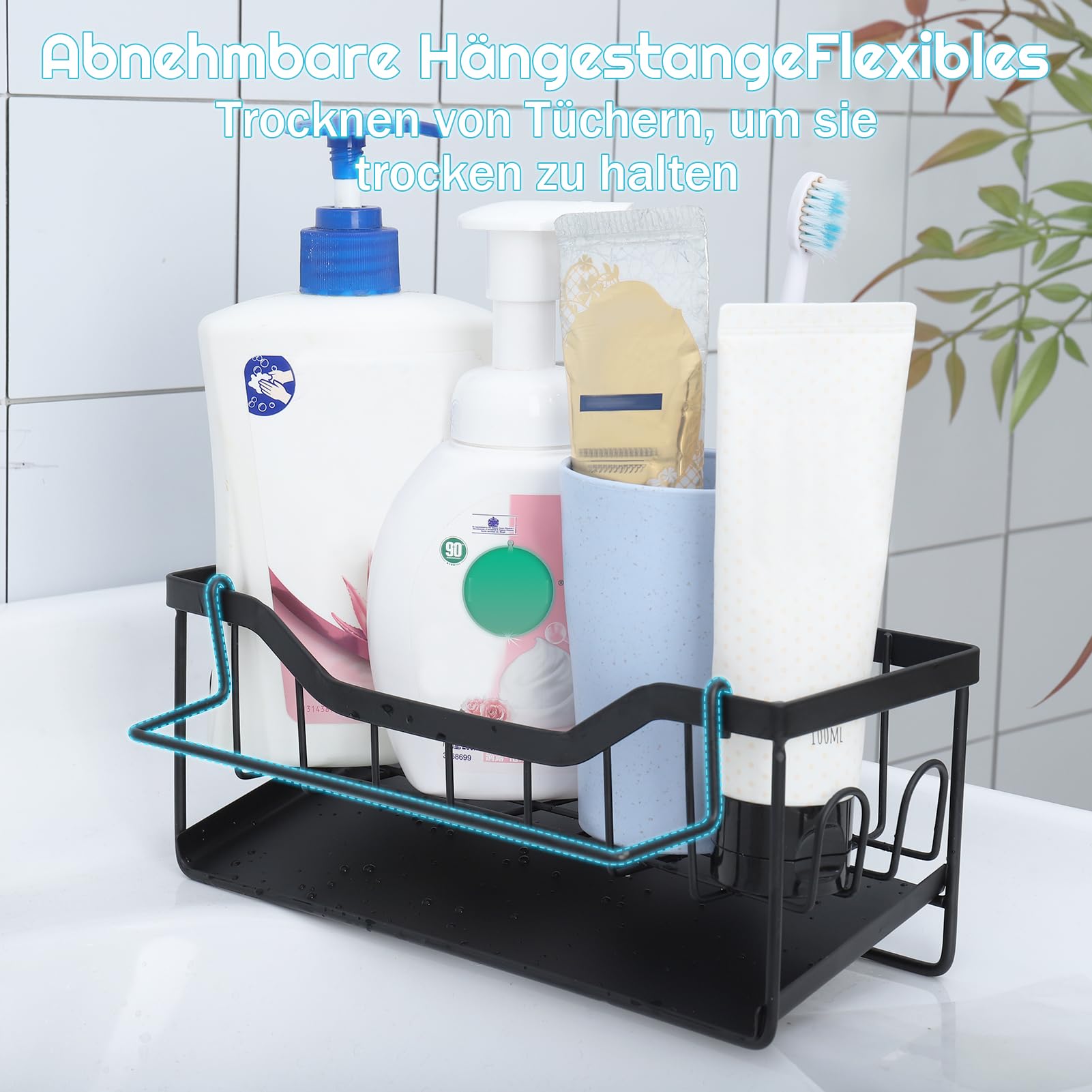 Spülbecken Organizer mit Abtropfschale,Küchen Organizer mit Handtuchhalter,Schwammhalter Küche Aufbewahrung&Organisation Ohne Bohren Küchen Sink Badezimmer Organizer für Lappen Bürsten Schwamm Seife