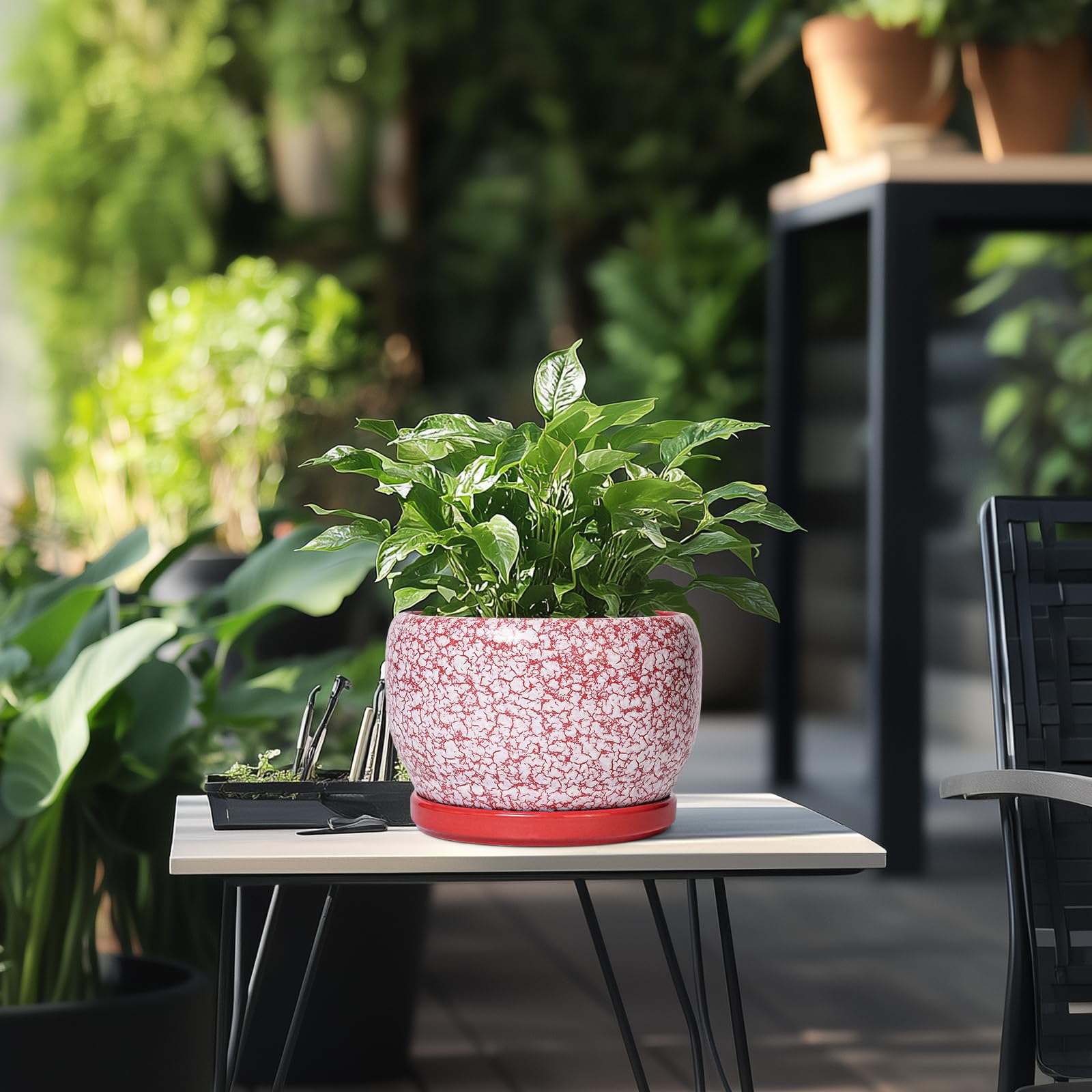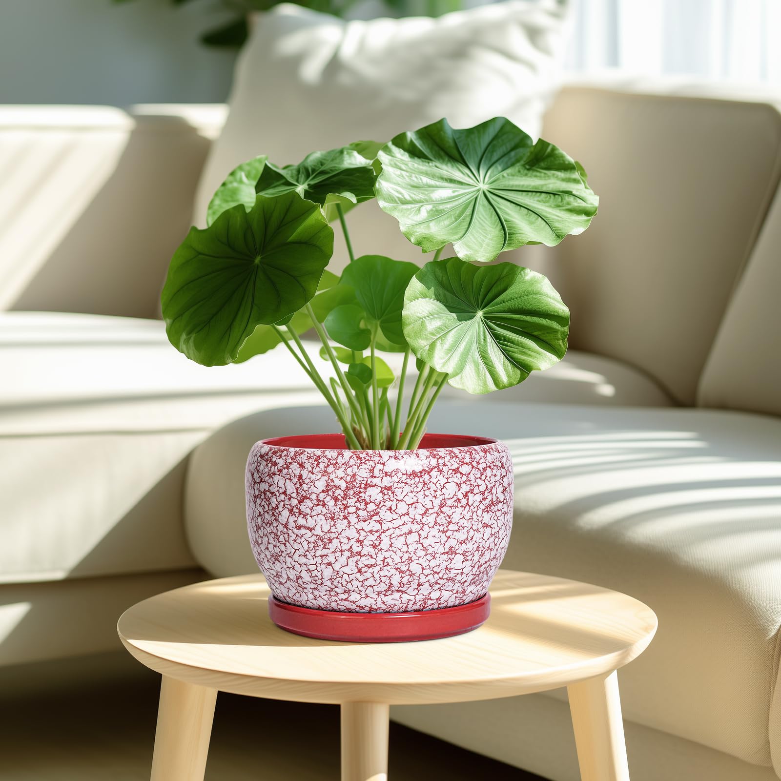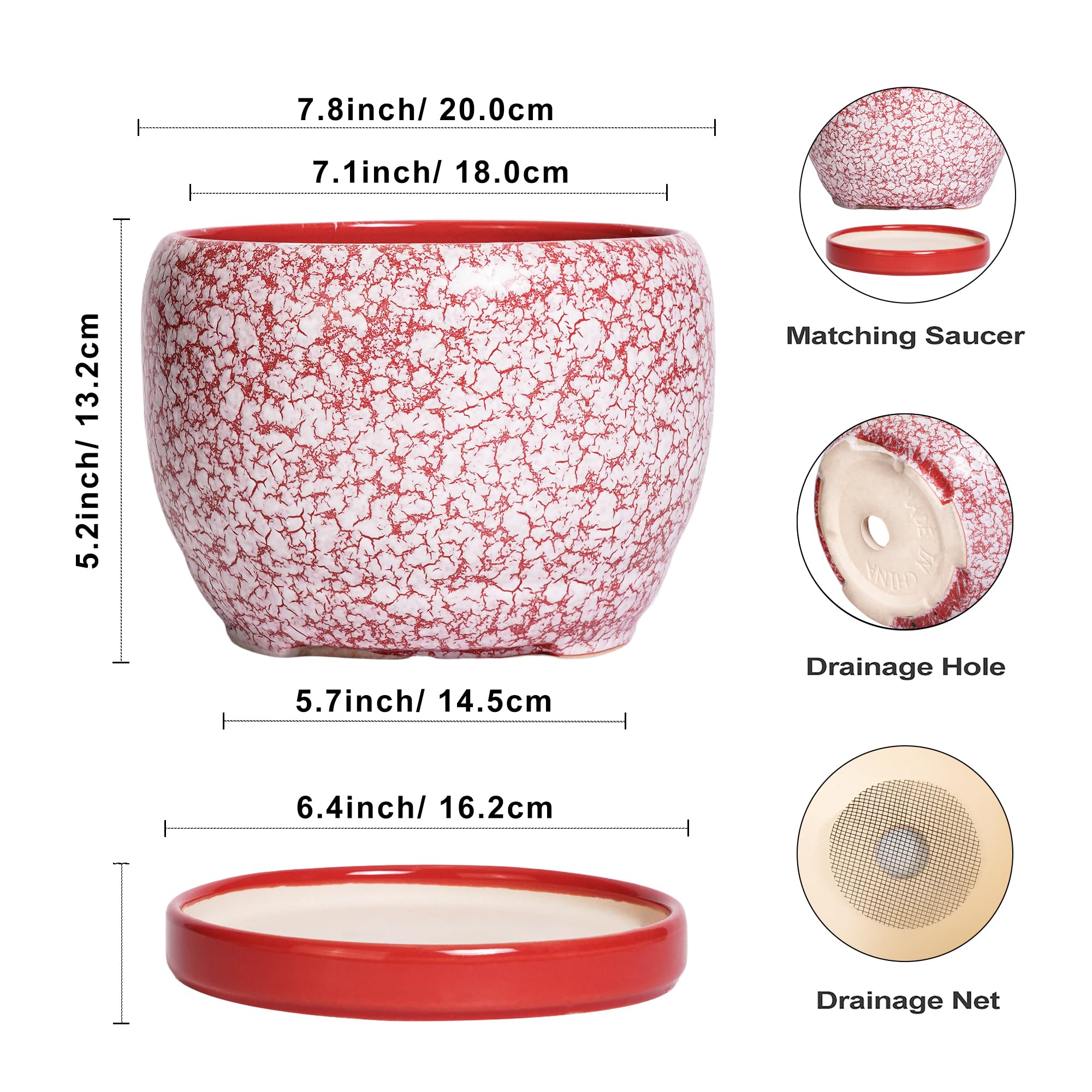 Ideale Grösse dieses mittelgrossen Blumentopfs: 20 cm D x 14 cm H, der rote Übertopf wird mit einer Keramikschale, einem Drainageloch und einem Netzpolster geliefert. Pflanzen nicht im Lieferumfang enthalten. Langlebige Keramik dieses 20,3 cm grossen Blumentopfs: Die 17,8 cm grossen Blumentöpfe im Innenbereich werden bei hohen Temperaturen ofengebrannt, wodurch sie weniger anfällig für Risse, Verwitterung und allgemeine Abnutzung sind, um eine dauerhafte und langfristige Nutzung im Innen- und Aussenbereich zu gewährleisten. Untertasse: Ablaufloch 20,3 cm grosse Keramik-Pflanzgefässe für Zimmerpflanzen entfernen effizient überschüssiges Wasser und helfen Ihren Pflanzen zu gedeihen. Das Keramiktablett fängt jeden Überlauf auf, so dass Sie den Topf überall mit Vertrauen platzieren können. Modernes Design dieses roten Blumentopfs: Unser moderner Blumentopf verfügt über eine schöne und glatte weiss glasierte Oberfläche, geeignet für die Dekoration Ihres Hauses, Gartens, Terrasse, Balkon, Wohnzimmer, Büro und mehr. Dieser vielseitige weisse Pflanztopf ist eine wesentliche Ergänzung für jede Sammlung von runden Blumentöpfen und kleinen Blumentöpfen. Ideal als kleine Pflanzgefässe für Zimmerpflanzen und Gartentöpfe, sein integriertes Ablaufloch hebt ihn von anderen Indoor-Blumentöpfen mit Drainage ab. Das moderne Pflanzgefäss-Design des Pflanzgefässes mit roter Glasur macht ihn ideal als runder Übertopf und eignet sich für verschiedene Dekore, einschliesslich dekorativer Pflanzgefässe und Pflanzgefässe aus der Mitte des Jahrhunderts. Es verleiht dem Pflanzgefäss mit Untersetzer einen Hauch von Eleganz und funktioniert gut als dekorative Blumentöpfe und 20,3 cm grosse Blumentöpfe. 【Dieser rote Blumentopf ist weit verbreitet】 Der 17,8 cm grosse Pflanztopf mit Drainageloch und Untersetzer eignet sich für Sukkulenten, Pothos, Monstera, afrikanische Veilchen, Kräuter, Kakteen, Orchideen, Aloe Vera, Pothos-Pflanze, Geldbaum, Friedenslilienpflanze, ZZ-Pflanzen und mehr grossartig für dekorative Töpfe für Pflanzen im Innenbereich, dieser Übertopf ist ein wunderbares Geschenk für Pflanzenliebhaber und ideal als Geschenk für Pflanzenliebhaber für Frauen. Seine Vielseitigkeit bietet Platz für eine Reihe von Pflanzen, wodurch er als Orchideentopf, Geldbaumtopf, Pothos-Topf, Aloe-Blumentopf, Pothos-Blumentopf, afrikanischer Veilchen-Topf und Kaktus-Topf geeignet ist. Damit ist er ein wertvoller Bestandteil jeder Zimmerpflanzentopf-Kollektion. Für Outdoor-Enthusiasten dient dieser Pflanzkasten gut als Outdoor-Pflanzgefässe für Terrasse und Outdoor-Pflanzgefässe für Veranda. Er wertet jeden Raum auf und passt hervorragend in Bürodekorationen, Schreibtischdekorationen und sogar als Fenster-Pflanzgefäss oder Bücherregaldekoration. Seine Grösse und sein Stil machen ihn auch ideal für Tischdekoration. Wenn Sie auf der Suche nach durchdachten Weihnachtsgeschenken oder Lehrergeschenken sind, ist dieser Übertopf eine praktische und stilvolle Wahl. Haben Sie Probleme mit Ihrem Pflanzgefäss? Lassen Sie es uns wissen, und wir kümmern uns für Sie darum. Nach Erhalt dieses Keramik-Blumentopfs: Wenn Sie nach Erhalt des runden Pflanztopfs Schäden oder andere Probleme haben, lassen Sie es uns bitte wissen und wir werden grosse Anstrengungen unternehmen, um Ihnen zu helfen, ihn für Sie zu lösen