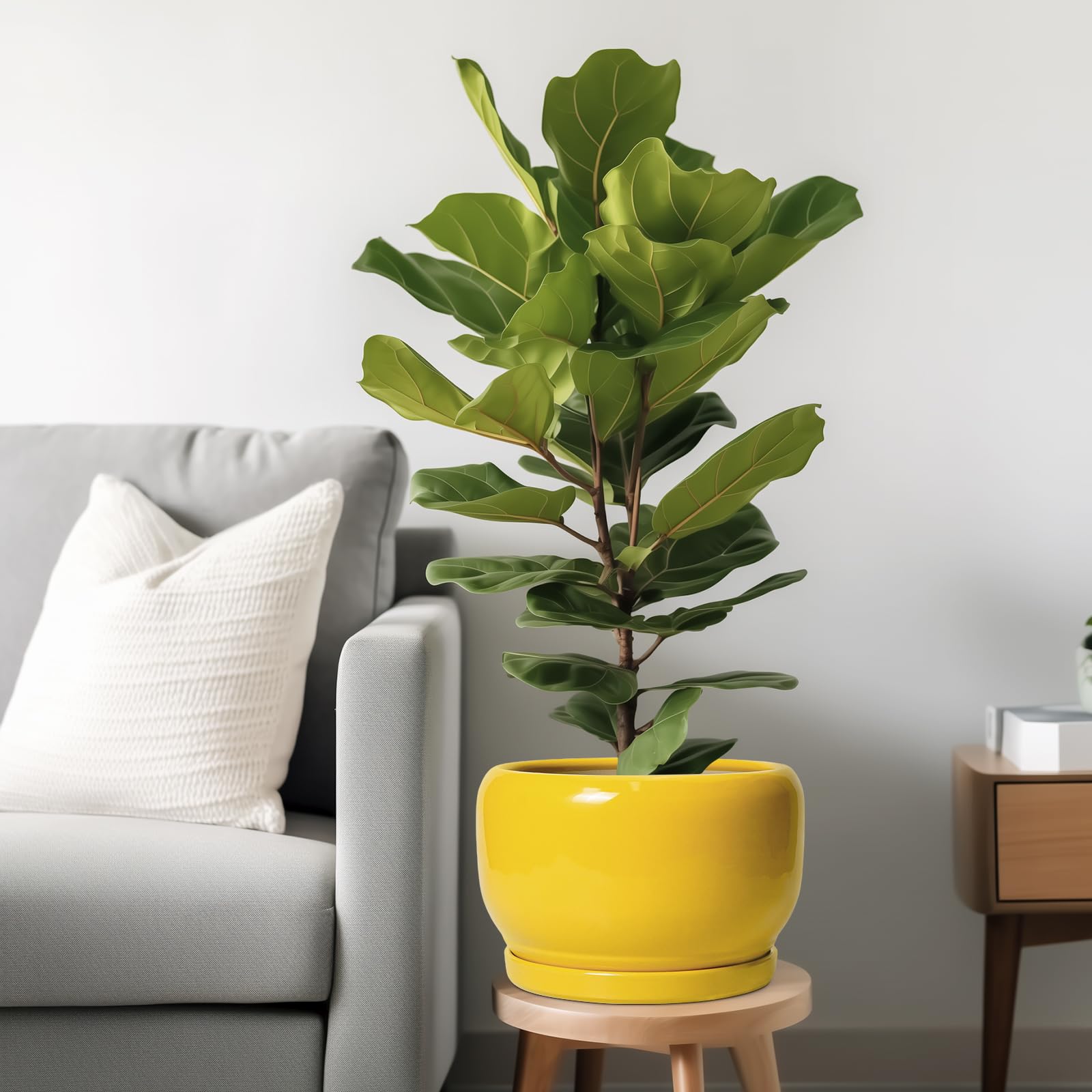 Ideale Grösse dieses Monstera-Topfs: 25,4 cm D x 16,5 cm H, gelber Übertopf kommt mit einer Keramikschale, Ablaufloch und Netzpolster, Pflanzen nicht im Lieferumfang enthalten und ist ein schönes Geschenk für Pflanzenliebhaber, Mutter, Lehrer, Familie und Freunde. Langlebige Keramik dieses 25,4 cm grossen Blumentopfs: Die Blumentöpfe im Innenbereich werden bei hohen Temperaturen ofengebrannt, wodurch sie weniger anfällig für Risse, Verwitterung und allgemeine Abnutzung sind. 0,4 cm Topf Für Pflanzen mit Drainageloch und Untersetzer: Drainageloch von Keramik-Pflanzgefässen für Zimmerpflanzen entfernt effizient überschüssiges Wasser und hilft Ihren Pflanzen zu gedeihen. Das Keramiktablett fängt jeden Überlauf auf, so dass Sie den Topf überall mit Vertrauen platzieren können. Modernes Design dieses gelben Blumentopfs: Unser moderner Blumentopf verfügt über ein schönes und glattes pfauengelbes Glasur-Design, geeignet für die Dekoration Ihres Hauses, Gartens, Terrasse, Balkon, Wohnzimmer, Büro und mehr. Dieser vielseitige gelbe Topf für Pflanzen ist eine wesentliche Ergänzung für jede Sammlung von grossen Blumentöpfen und grossen Blumentöpfen. Ideal als grosse Pflanzgefässe für Zimmerpflanzen und Gartentöpfe, sein integriertes Ablaufloch hebt ihn von anderen Blumentöpfen im Innenbereich mit Drainage ab und sorgt für die Gesundheit der Pflanzen. Das moderne Pflanzgefäss-Design des Pflanzgefässes mit pfauengelber Glasur macht ihn ideal als runder Übertopf und eignet sich für verschiedene Dekore, einschliesslich Pflanztöpfe für Zimmerpflanzen und Pflanzgefässe aus der Mitte des Jahrhunderts. Es verleiht dem Pflanzgefäss mit Untersetzer einen Hauch von Eleganz und funktioniert gut als dekorative Blumentöpfe und 22,9 cm grosse Blumentöpfe. 【Dieser gelbe Blumentopf ist weit verbreitet】 Der 22,9 cm grosse Pflanztopf mit Drainageloch und Untersetzer eignet sich für Sukkulenten, Bonsai, Kräuter, Kakteen, Orchideen, Aloe Vera, Pflanze, Geldbaum, und ist ein schönes Geschenk für Pflanzenliebhaber, Mutter, Lehrer, Familie und Freund, ideal für dekorative Töpfe für Pflanzen im Innenbereich, 22,9 cm grosser Blumentopf ist ein wunderbares Geschenk für Pflanzenliebhaber und ideal als Geschenk für Pflanzenliebhaber. Seine Vielseitigkeit bietet Platz für eine Reihe von Pflanzen, wodurch er als Orchideentopf, Geldbaumtopf, Pothos-Topf, Aloe-Blumentopf, Pflanztopf, afrikanischer Veilchen-Topf und Kaktus-Topf geeignet ist. Damit ist er ein wertvoller Bestandteil jeder Zimmerpflanzentopf-Kollektion. Für Outdoor-Enthusiasten dient dieser Pflanzkasten gut als Outdoor-Pflanzgefässe für Terrasse und Outdoor-Pflanzgefässe für Veranda. Er wertet jeden Raum auf und passt hervorragend in Bürodekorationen, Schreibtischdekorationen und sogar als Fenster-Pflanzgefäss oder Bücherregaldekoration. Seine Grösse und sein Stil machen ihn auch ideal für Tischdekoration. Wenn Sie auf der Suche nach durchdachten Weihnachtsgeschenken oder Lehrergeschenken sind, ist dieser Übertopf eine praktische und stilvolle Wahl. Haben Sie Probleme mit Ihrem Pflanzgefäss? Lassen Sie es uns wissen, und wir kümmern uns für Sie darum. 【Nach Erhalt dieses Keramik-Blumentopfes】 Wenn Sie nach Erhalt des runden Pflanztopfs Schäden oder andere Probleme haben, teilen Sie uns dies bitte mit und wir werden unser Bestes tun, um es für Sie zu lösen