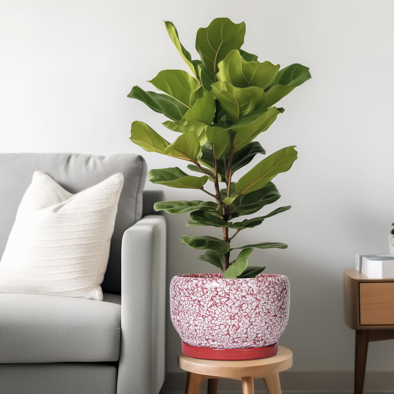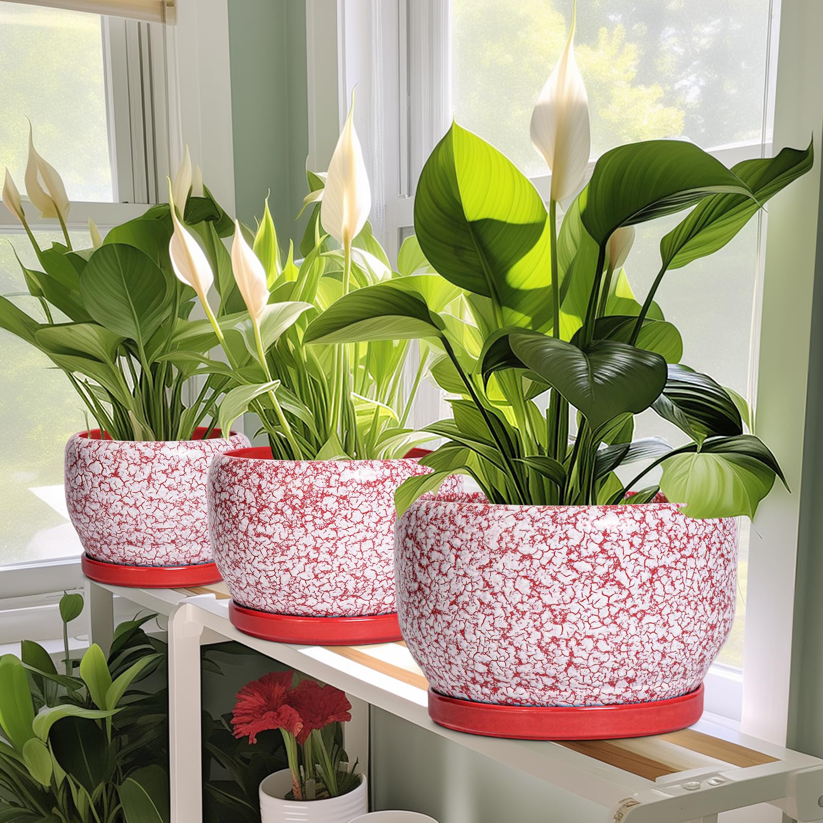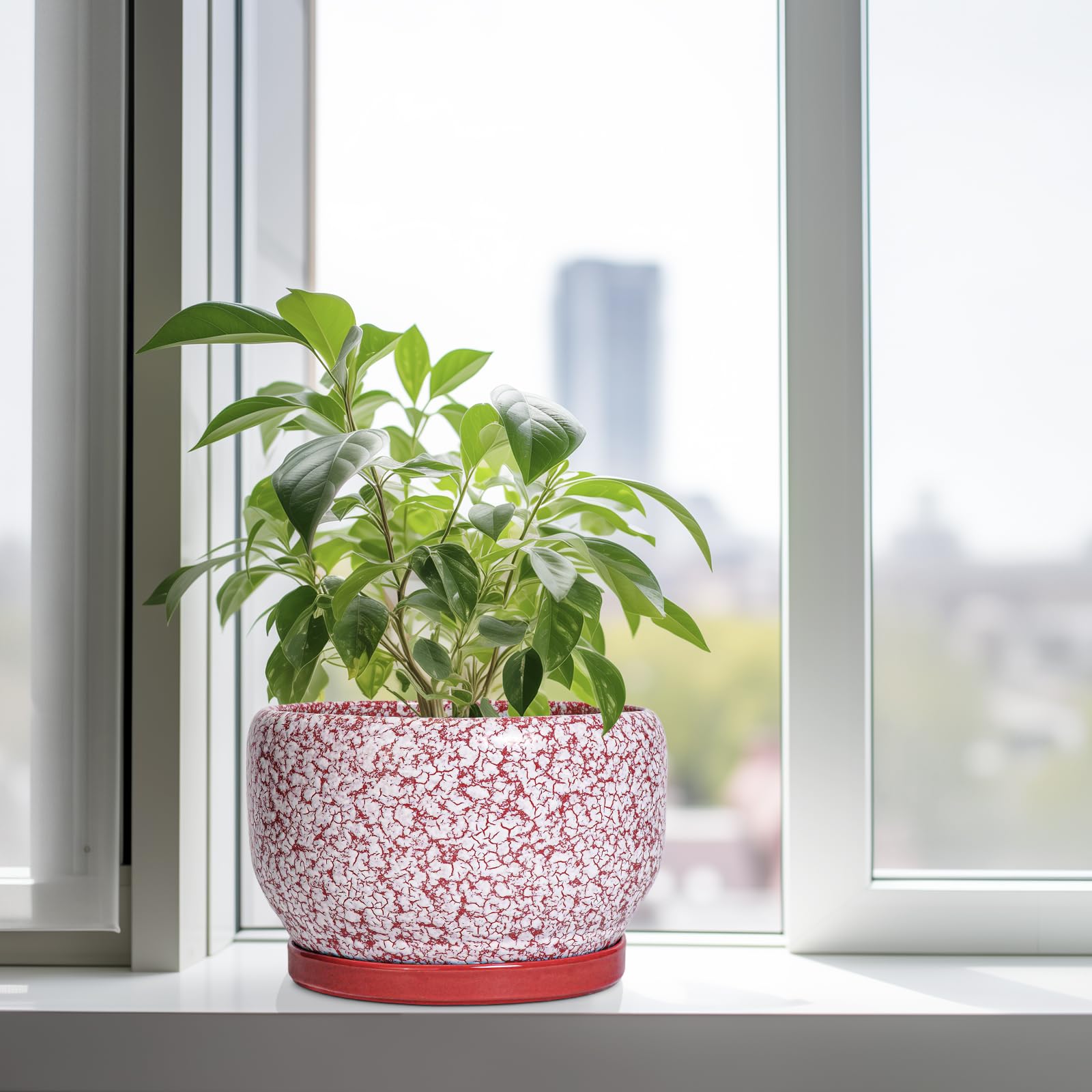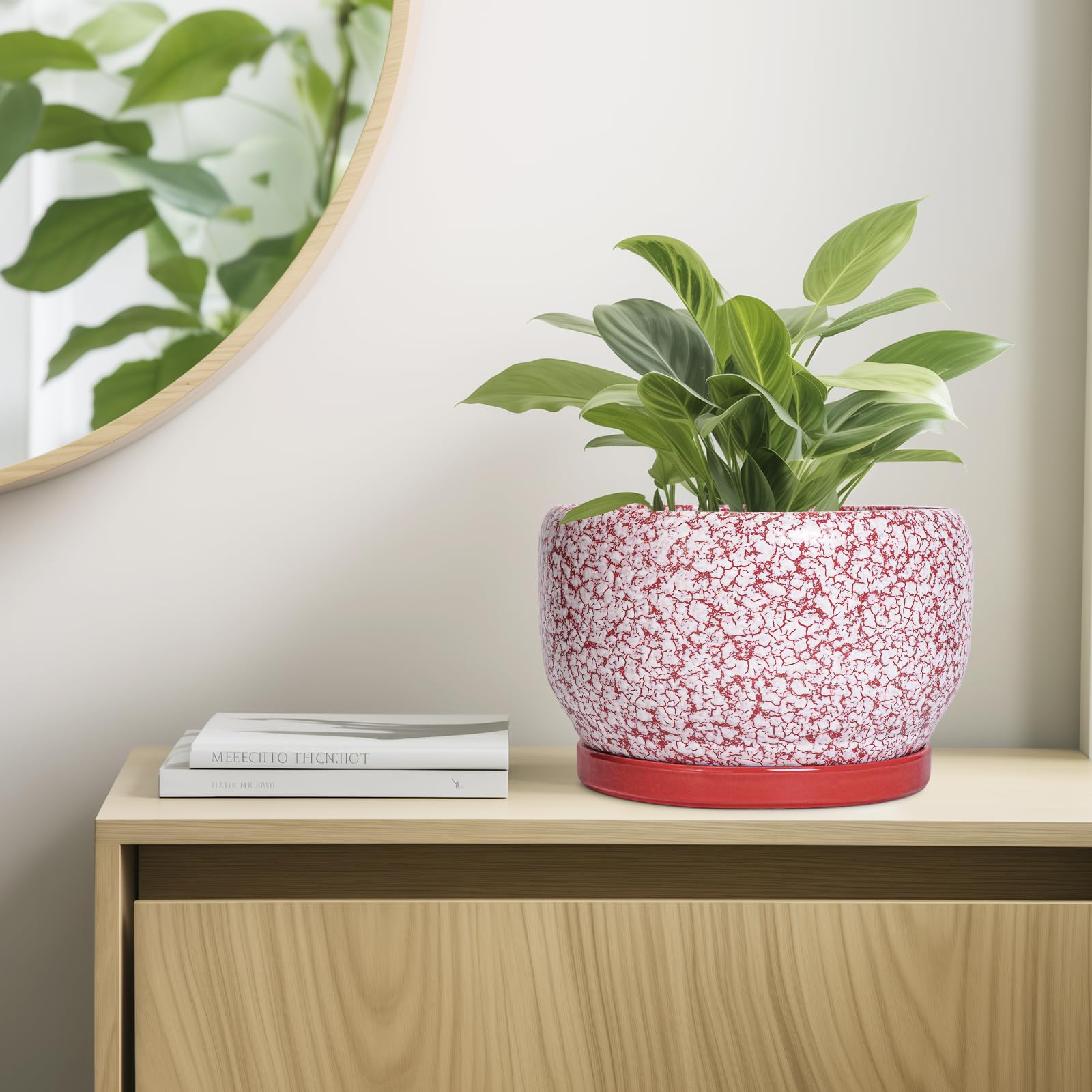 Ideale Grösse dieses mittelgrossen Blumentopfs: 25,4 cm D x 16,5 cm H, roter Übertopf kommt mit einer Keramikschale, Ablaufloch und Netzpolster, Pflanzen nicht im Lieferumfang enthalten. Langlebige Keramik dieses 25,4 cm grossen Blumentopfs: Die 22,9 cm grossen Blumentöpfe im Innenbereich werden bei hohen Temperaturen ofengebrannt, wodurch sie weniger anfällig für Risse, Verwitterung und allgemeine Abnutzung sind, was eine dauerhafte und langfristige Nutzung im Innen- und Aussenbereich gewährleistet. Loch und Untertasse: Abfluss. Altersloch von 25,4 cm Keramik-Pflanzgefässen für Zimmerpflanzen entfernt effizient überschüssiges Wasser und hilft Ihren Pflanzen zu gedeihen. Das Keramiktablett fängt jeden Überlauf auf, so dass Sie den Topf überall mit Vertrauen platzieren können. Modernes Design dieses roten Blumentopfs: Unser moderner Blumentopf verfügt über eine schöne und glatte weiss glasierte Oberfläche, geeignet für die Dekoration Ihres Hauses, Gartens, Terrasse, Balkon, Wohnzimmer, Büro und mehr. Dieser vielseitige weisse Pflanztopf ist eine wesentliche Ergänzung für jede Sammlung von runden Blumentöpfen und grossen Blumentöpfen. Ideal als grosse Pflanzgefässe für Zimmerpflanzen und Gartentöpfe, sein integriertes Ablaufloch hebt ihn von anderen Indoor-Blumentöpfen mit Drainage ab. Das moderne Pflanzgefäss-Design des Pflanzgefässes mit roter Glasur macht ihn ideal als runder Übertopf und eignet sich für verschiedene Dekore, einschliesslich dekorativer Pflanzgefässe und Pflanzgefässe aus der Mitte des Jahrhunderts. Es verleiht dem Pflanzgefäss mit Untersetzer einen Hauch von Eleganz und funktioniert gut als dekorative Blumentöpfe und 25,4 cm grosse Blumentöpfe. 【Dieser rote Blumentopf ist weit verbreitet】 Der 22,9 cm grosse Pflanztopf mit Drainageloch und Untersetzer eignet sich für Sukkulenten, Pothos, Monstera, afrikanische Veilchen, Kräuter, Kakteen, Orchideen, Aloe Vera, Pothos-Pflanze, Geldbaum, Friedenslilienpflanze, ZZ-Pflanzen und mehr grossartig für dekorative Töpfe für Pflanzen im Innenbereich, dieser Übertopf ist ein wunderbares Geschenk für Pflanzenliebhaber und ideal als Geschenk für Pflanzenliebhaber für Frauen. Seine Vielseitigkeit bietet Platz für eine Reihe von Pflanzen, wodurch er als Orchideentopf, Geldbaumtopf, Pothos-Topf, Aloe-Blumentopf, Pothos-Blumentopf, afrikanischer Veilchen-Topf und Kaktus-Topf geeignet ist. Damit ist er ein wertvoller Bestandteil jeder Zimmerpflanzentopf-Kollektion. Für Outdoor-Enthusiasten dient dieser Pflanzkasten gut als Outdoor-Pflanzgefässe für Terrasse und Outdoor-Pflanzgefässe für Veranda. Er wertet jeden Raum auf und passt hervorragend in Bürodekorationen, Schreibtischdekorationen und sogar als Fenster-Pflanzgefäss oder Bücherregaldekoration. Seine Grösse und sein Stil machen ihn auch ideal für Tischdekoration. Wenn Sie auf der Suche nach durchdachten Weihnachtsgeschenken oder Lehrergeschenken sind, ist dieser Übertopf eine praktische und stilvolle Wahl. Haben Sie Probleme mit Ihrem Pflanzgefäss? Lassen Sie es uns wissen, und wir kümmern uns für Sie darum. Nach Erhalt dieses Keramik-Blumentopfs: Wenn Sie nach Erhalt des runden Pflanztopfs Schäden oder andere Probleme haben, lassen Sie es uns bitte wissen und wir werden grosse Anstrengungen unternehmen, um Ihnen zu helfen, ihn für Sie zu lösen