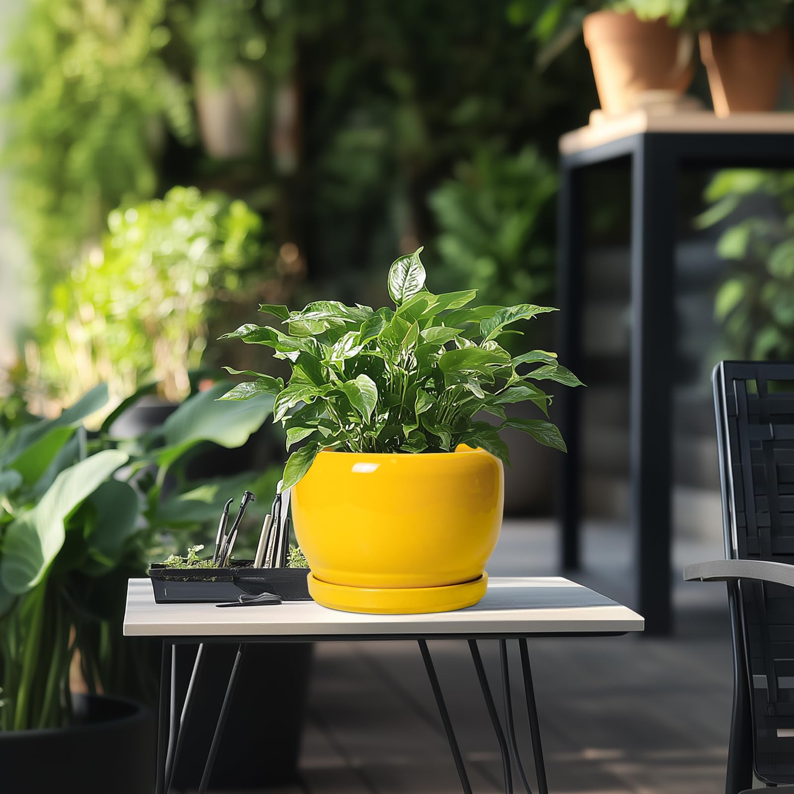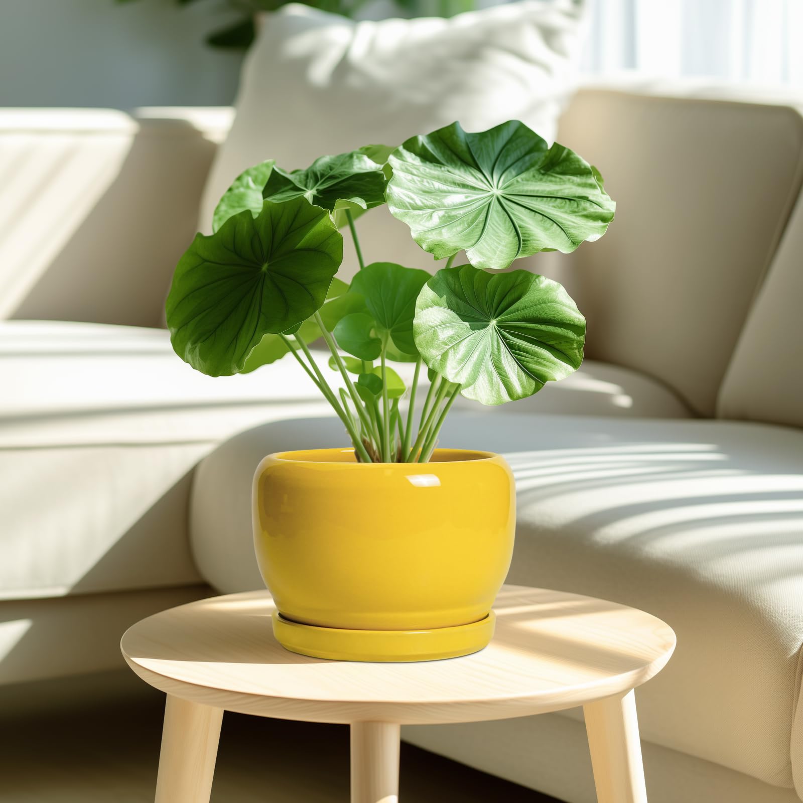 Ideale Grösse dieses runden Blumentopfs: 20,3 cm D x 14 cm H, 20,3 cm gelber Übertopf mit Keramikschale, Ablaufloch und Netzpolster, Pflanzen nicht im Lieferumfang enthalten. Keramik dieses 20,3 cm grossen Pflanzgefässes: Die Blumentöpfe im Innenbereich werden bei hohen Temperaturen ofengebrannt, wodurch sie weniger anfällig für Risse, Verwitterung und allgemeine Abnutzung sind, um eine dauerhafte und langfristige Nutzung im Innen- und Aussenbereich zu gewährleisten. 20,3 cm grosser Topf. für Pflanzen mit Drainage 【Loch und Untersetzer】 Drainageloch von Keramik-Pflanzgefässen für Zimmerpflanzen entfernt effizient überschüssiges Wasser und hilft Ihren Pflanzen zu gedeihen. Das Keramiktablett fängt jeden Überlauf auf, so dass Sie den Topf überall mit Vertrauen platzieren können. Modernes Design dieses gelben Blumentopfs: Unser moderner Blumentopf verfügt über ein schönes und glattes pfauengelbes Glasur-Design, geeignet für die Dekoration Ihres Hauses, Gartens, Terrasse, Balkon, Wohnzimmer, Büro und mehr. Dieser vielseitige gelbe Topf für Pflanzen ist eine wesentliche Ergänzung für jede Sammlung von kleinen Blumentöpfen und kleinen Blumentöpfen. Ideal als kleine Pflanzgefässe für Zimmerpflanzen und Gartentöpfe, sein integriertes Ablaufloch hebt ihn von anderen Blumentöpfen im Innenbereich mit Drainage ab und sorgt für die Gesundheit der Pflanzen. Das moderne Pflanzgefäss-Design des Pflanzgefässes mit einer pfauengelben Glasur macht ihn ideal als runder Übertopf und eignet sich für verschiedene Dekorationen, einschliesslich geriffelter Pflanzgefässe und Pflanzgefässe aus der Mitte des Jahrhunderts. Es verleiht dem Pflanzgefäss mit Untersetzer einen Hauch von Eleganz und funktioniert gut als dekorative Blumentöpfe und 7-Zoll-Blumentöpfe. 【Dieser gelbe Blumentopf ist weit verbreitet】 Der 17,8 cm grosse Pflanztopf mit Drainageloch und Untersetzer ist geeignet für Sukkulenten, Geldbaum, Monstera, Palme, Fiddle Leaf Feige, Zz, Paradiesvogel, Kräuter, Kakteen, Orchidee Pflanze. Ideal für dekorative Töpfe für Pflanzen im Innenbereich, 17,8 cm grosser Blumentopf ist ein wunderbares Geschenk für Pflanzenliebhaber und ideal als Geschenk für Pflanzenliebhaber. Seine Vielseitigkeit bietet Platz für eine Reihe von Pflanzen, wodurch er als Orchideentopf, Geldbaumtopf, Pothos-Topf, Aloe-Blumentopf, Pflanztopf, afrikanischer Veilchen-Topf und Kaktus-Topf geeignet ist. Damit ist er ein wertvoller Bestandteil jeder Zimmerpflanzentopf-Kollektion. Für Outdoor-Enthusiasten dient dieser Pflanzkasten gut als Outdoor-Pflanzgefässe für Terrasse und Outdoor-Pflanzgefässe für Veranda. Er wertet jeden Raum auf und passt hervorragend in Bürodekorationen, Schreibtischdekorationen und sogar als Fenster-Pflanzgefäss oder Bücherregaldekoration. Seine Grösse und sein Stil machen ihn auch ideal für Tischdekoration. Wenn Sie auf der Suche nach durchdachten Weihnachtsgeschenken oder Lehrergeschenken sind, ist dieser Übertopf eine praktische und stilvolle Wahl. Haben Sie Probleme mit Ihrem Pflanzgefäss? Lassen Sie es uns wissen, und wir kümmern uns für Sie darum. 【Nach Erhalt dieses Keramik-Blumentopfes】 Wenn Sie nach Erhalt des runden Pflanztopfs Schäden oder andere Probleme haben, teilen Sie uns dies bitte mit und wir werden unser Bestes tun, um es für Sie zu lösen