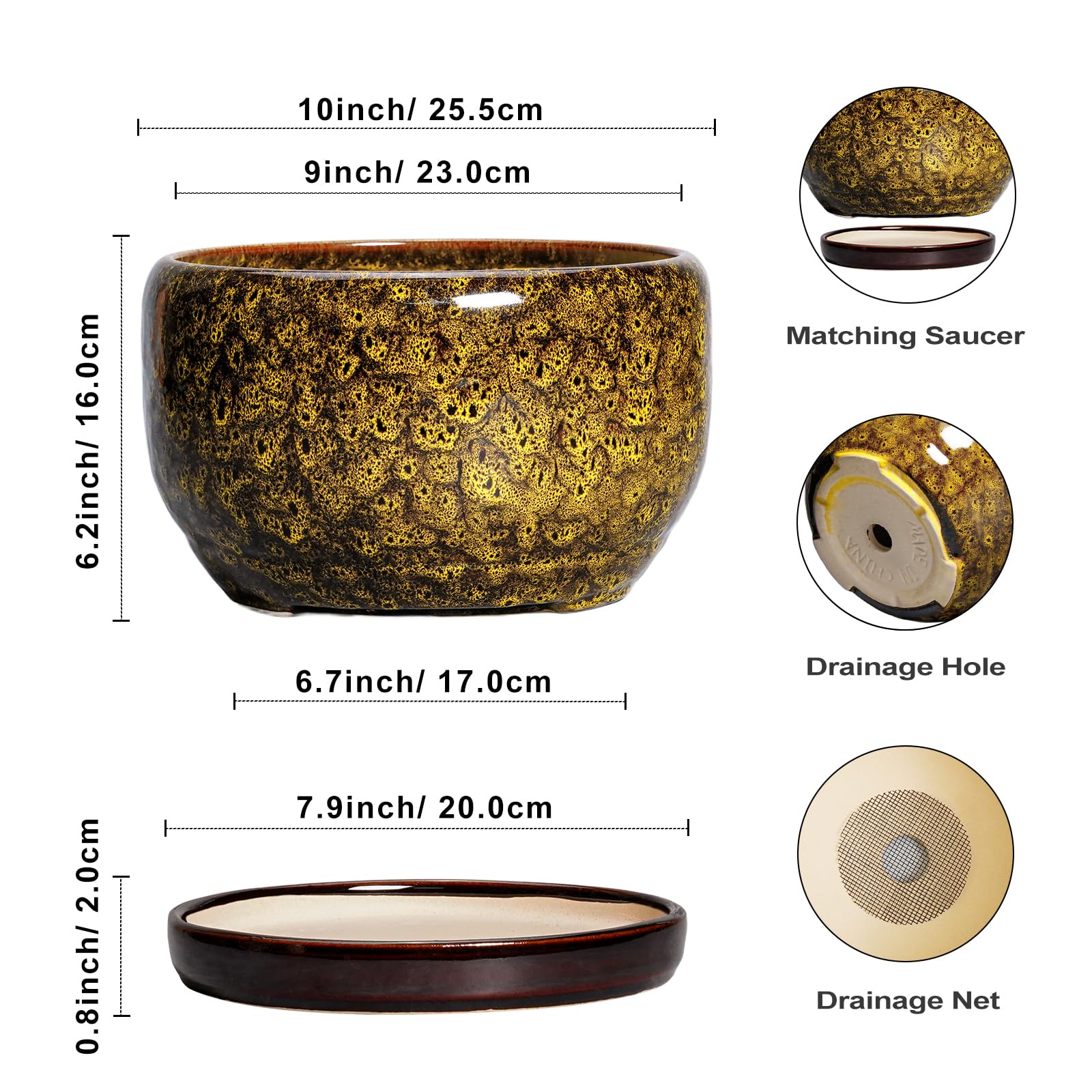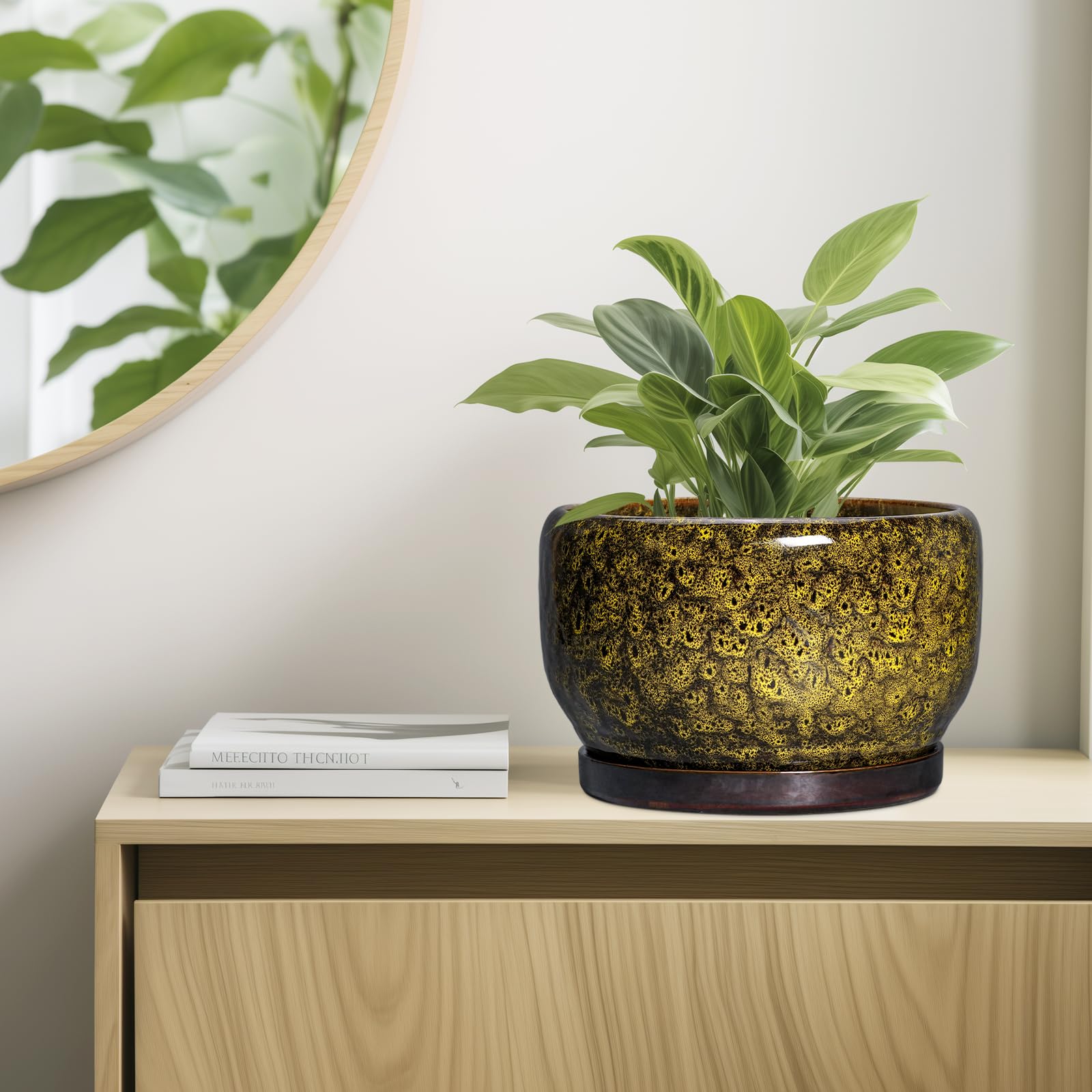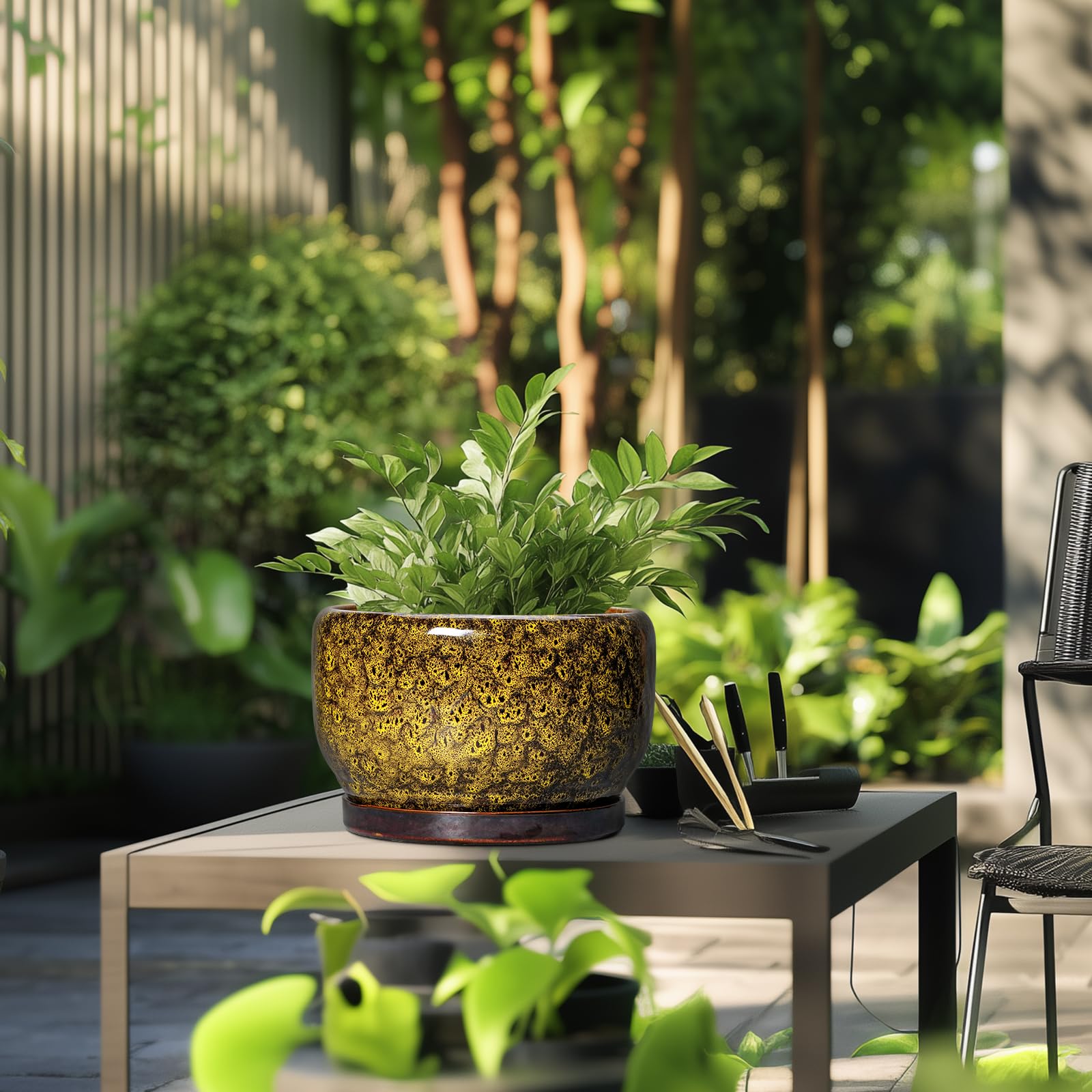 Ideale Grösse dieses mittelgrossen Blumentopfs: 25,4 cm D x 16,5 cm H, gelber Übertopf kommt mit einer Keramikschale, Ablaufloch und Netzpolster, Pflanzen nicht im Lieferumfang enthalten. Langlebige Keramik dieses 25,4 cm grossen Blumentopfs: Die 22,9 cm grossen Blumentöpfe im Innenbereich werden bei hohen Temperaturen ofengebrannt, wodurch sie weniger anfällig für Risse, Verwitterung und allgemeine Abnutzung sind, was eine dauerhafte und langfristige Nutzung im Innen- und Aussenbereich gewährleistet. Blumentopf mit Ablaufloch und Untertasse: Drainage Loch von 25,4 cm Keramik-Pflanzgefässen für Zimmerpflanzen entfernt effizient überschüssiges Wasser und hilft Ihren Pflanzen zu gedeihen. Das Keramiktablett fängt jeden Überlauf auf, so dass Sie den Topf überall mit Vertrauen platzieren können. Modernes Design dieses gelben Blumentopfs: Unser moderner Blumentopf verfügt über eine schöne und glatte gelbe Oberfläche, geeignet für die Dekoration Ihres Hauses, Gartens, Terrasse, Balkon, Wohnzimmer, Büro und mehr. Dieser vielseitige gelbe Pflanztopf ist eine wesentliche Ergänzung für jede Sammlung von runden Blumentöpfen und grossen Blumentöpfen. Ideal als grosse Pflanzgefässe für Zimmerpflanzen und Gartentöpfe, sein integriertes Ablaufloch hebt ihn von anderen Indoor-Blumentöpfen mit Drainage ab. Das moderne Pflanzgefäss-Design des Pflanzgefässes mit gelber Glasur macht ihn ideal als runder Übertopf und eignet sich für verschiedene Dekore, einschliesslich dekorativer Pflanzgefässe und Pflanzgefässe aus der Mitte des Jahrhunderts. Es verleiht dem Pflanzgefäss mit Untersetzer einen Hauch von Eleganz und funktioniert gut als dekorative Blumentöpfe und 25,4 cm grosse Blumentöpfe. 【Dieser gelbe Blumentopf ist weit verbreitet】 Der 22,9 cm grosse Pflanztopf mit Drainageloch und Untersetzer eignet sich für Sukkulenten, Pothos, Monstera, afrikanische Veilchen, Kräuter, Kakteen, Orchideen, Aloe Vera, Pothos-Pflanze, Geldbaum, Friedenslilienpflanze, ZZ-Pflanzen und mehr grossartig für dekorative Töpfe für Pflanzen im Innenbereich, dieser Übertopf ist ein wunderbares Geschenk für Pflanzenliebhaber und ideal als Geschenk für Pflanzenliebhaber für Frauen. Seine Vielseitigkeit bietet Platz für eine Reihe von Pflanzen, wodurch er als Orchideentopf, Geldbaumtopf, Pothos-Topf, Aloe-Blumentopf, Pothos-Blumentopf, afrikanischer Veilchen-Topf und Kaktus-Topf geeignet ist. Damit ist er ein wertvoller Bestandteil jeder Zimmerpflanzentopf-Kollektion. Für Outdoor-Enthusiasten dient dieser Pflanzkasten gut als Outdoor-Pflanzgefässe für Terrasse und Outdoor-Pflanzgefässe für Veranda. Er wertet jeden Raum auf und passt hervorragend in Bürodekorationen, Schreibtischdekorationen und sogar als Fenster-Pflanzgefäss oder Bücherregaldekoration. Seine Grösse und sein Stil machen ihn auch ideal für Tischdekoration. Wenn Sie auf der Suche nach durchdachten Weihnachtsgeschenken oder Lehrergeschenken sind, ist dieser Übertopf eine praktische und stilvolle Wahl. Haben Sie Probleme mit Ihrem Pflanzgefäss? Lassen Sie es uns wissen, und wir kümmern uns für Sie darum. Nach Erhalt dieses Keramik-Blumentopfs: Wenn Sie nach Erhalt des runden Pflanztopfs Schäden oder andere Probleme haben, lassen Sie es uns bitte wissen und wir werden grosse Anstrengungen unternehmen, um Ihnen zu helfen, ihn für Sie zu lösen