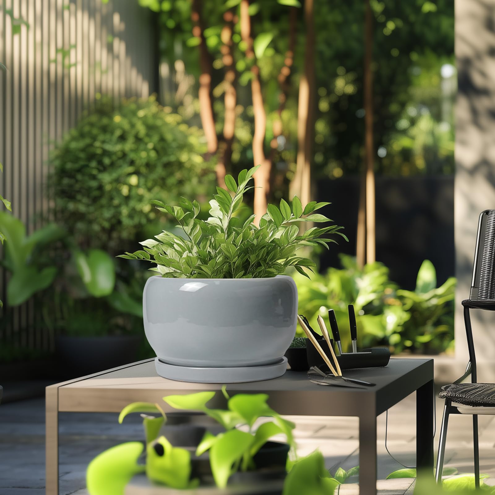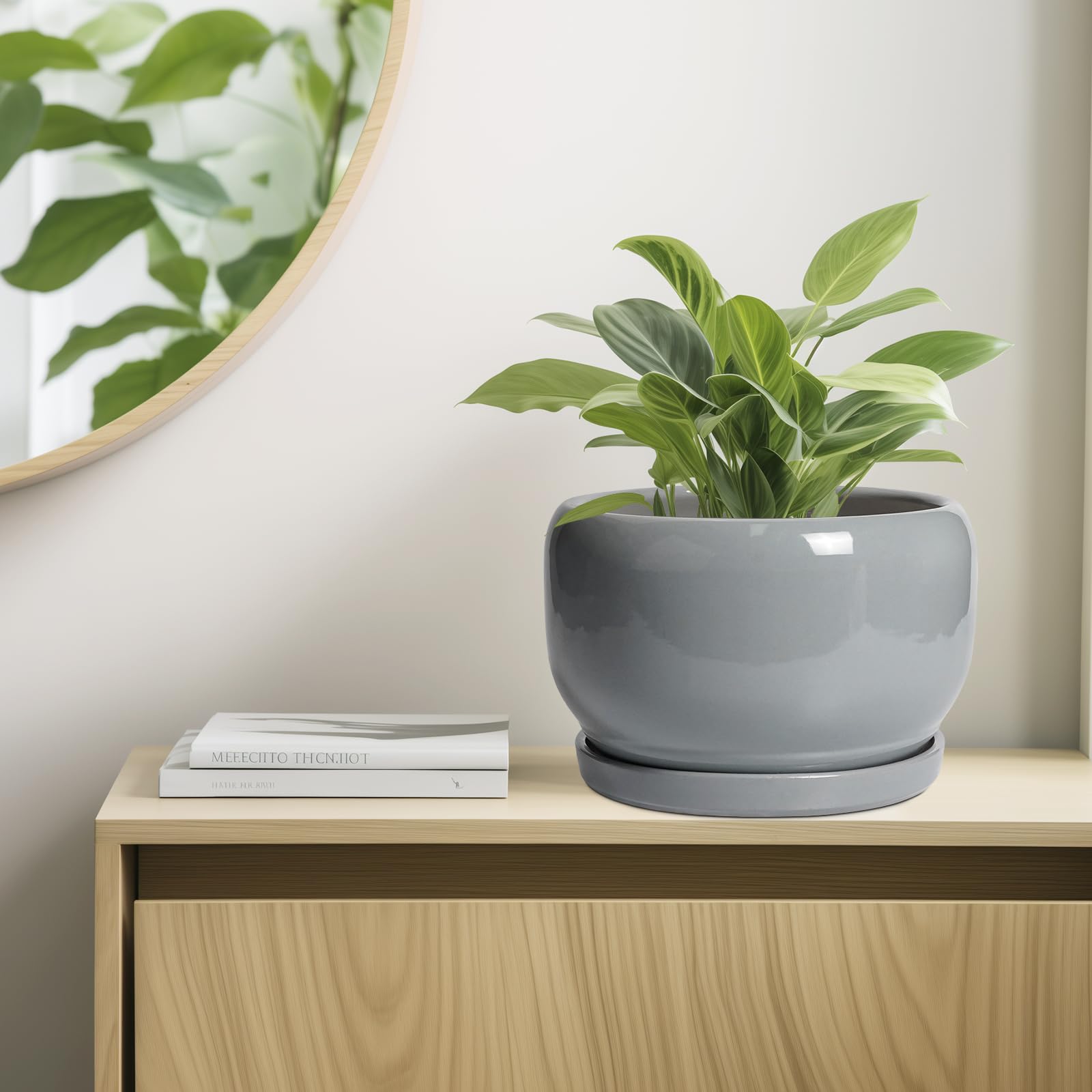 Ideale Grösse dieses Monstera-Topfs: 25,4 cm D x 16,5 cm H. Der Topf für Pflanzen wird mit einem Keramiktablett, einem Drainageloch und einem Netzpolster geliefert, Pflanzen nicht im Lieferumfang enthalten und ist ein schönes Geschenk für Pflanzenliebhaber, Mutter, Lehrer, Familie und Freunde. Langlebige Keramik. Die Pflanztöpfe im Innenbereich werden bei hohen Temperaturen ofengebrannt, wodurch sie weniger anfällig für Risse, Verwitterung und allgemeine Abnutzung sind. Topf mit Ablaufloch Und Untersetzer: Drainageloch von Keramik-Pflanzgefässen für Zimmerpflanzen entfernt effizient überschüssiges Wasser und hilft Ihren Pflanzen zu gedeihen. Das Keramiktablett fängt jeden Überlauf auf, so dass Sie den Topf überall mit Vertrauen platzieren können. Modernes Design dieses grauen Blumentopfs: Unser moderner Blumentopf verfügt über ein schönes und glattes pfauengraues Glasur-Design, geeignet für die Dekoration Ihres Hauses, Gartens, Terrasse, Balkon, Wohnzimmer, Büro und mehr. Dieser vielseitige graue Topf für Pflanzen ist eine wesentliche Ergänzung für jede Sammlung von grossen Blumentöpfen und grossen Blumentöpfen. Ideal als grosse Pflanzgefässe für Zimmerpflanzen und Gartentöpfe, sein integriertes Ablaufloch hebt ihn von anderen Blumentöpfen im Innenbereich mit Drainage ab und sorgt für die Gesundheit der Pflanzen. Das moderne Pflanzgefäss-Design des Pflanzgefässes mit pfauengrauer Glasur macht ihn ideal als runder Übertopf und eignet sich für verschiedene Dekorationen, einschliesslich Pflanztöpfe für Zimmerpflanzen und Pflanzgefässe aus der Mitte des Jahrhunderts. Es verleiht dem Pflanzgefäss mit Untersetzer einen Hauch von Eleganz und funktioniert gut als dekorative Blumentöpfe und 22,9 cm grosse Blumentöpfe. 【Dieser graue Blumentopf ist weit verbreitet】 Der 22,9 cm grosse Pflanztopf mit Drainageloch und Untersetzer eignet sich für Sukkulenten, Bonsai, Kräuter, Kakteen, Orchideen, Aloe Vera, Pflanze, Geldbaum, und ist ein schönes Geschenk für Pflanzenliebhaber, Mutter, Lehrer, Familie und Freund, ideal für dekorative Töpfe für Pflanzen im Innenbereich, 22,9 cm grosser Blumentopf ist ein wunderbares Geschenk für Pflanzenliebhaber und ideal als Geschenk für Pflanzenliebhaber. Seine Vielseitigkeit bietet Platz für eine Reihe von Pflanzen, wodurch er als Orchideentopf, Geldbaumtopf, Pothos-Topf, Aloe-Blumentopf, Pflanztopf, afrikanischer Veilchen-Topf und Kaktus-Topf geeignet ist. Damit ist er ein wertvoller Bestandteil jeder Zimmerpflanzentopf-Kollektion. Für Outdoor-Enthusiasten dient dieser Pflanzkasten gut als Outdoor-Pflanzgefässe für Terrasse und Outdoor-Pflanzgefässe für Veranda. Er wertet jeden Raum auf und passt hervorragend in Bürodekorationen, Schreibtischdekorationen und sogar als Fenster-Pflanzgefäss oder Bücherregaldekoration. Seine Grösse und sein Stil machen ihn auch ideal für Tischdekoration. Wenn Sie auf der Suche nach durchdachten Weihnachtsgeschenken oder Lehrergeschenken sind, ist dieser Übertopf eine praktische und stilvolle Wahl. Haben Sie Probleme mit Ihrem Pflanzgefäss? Lassen Sie es uns wissen, und wir kümmern uns für Sie darum. 【Nach Erhalt dieses Keramik-Blumentopfes】 Wenn Sie nach Erhalt des runden Pflanztopfs Schäden oder andere Probleme haben, teilen Sie uns dies bitte mit und wir werden unser Bestes tun, um es für Sie zu lösen
