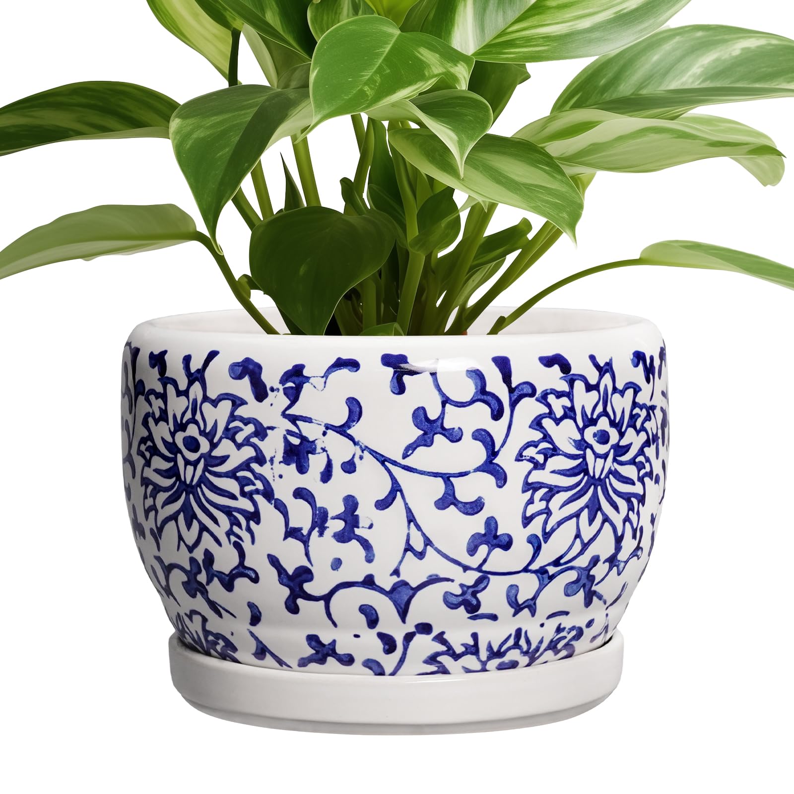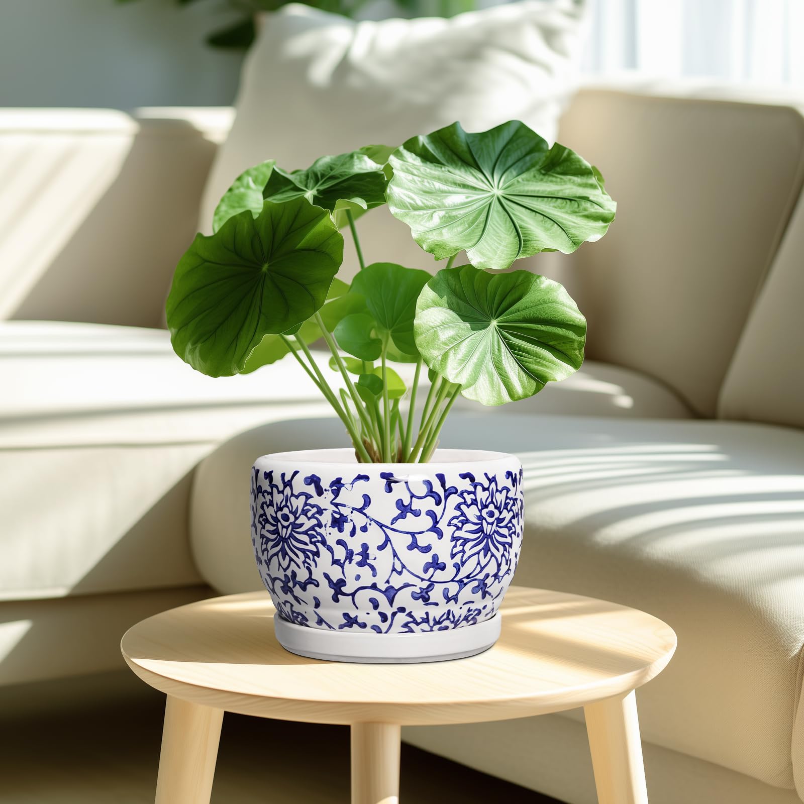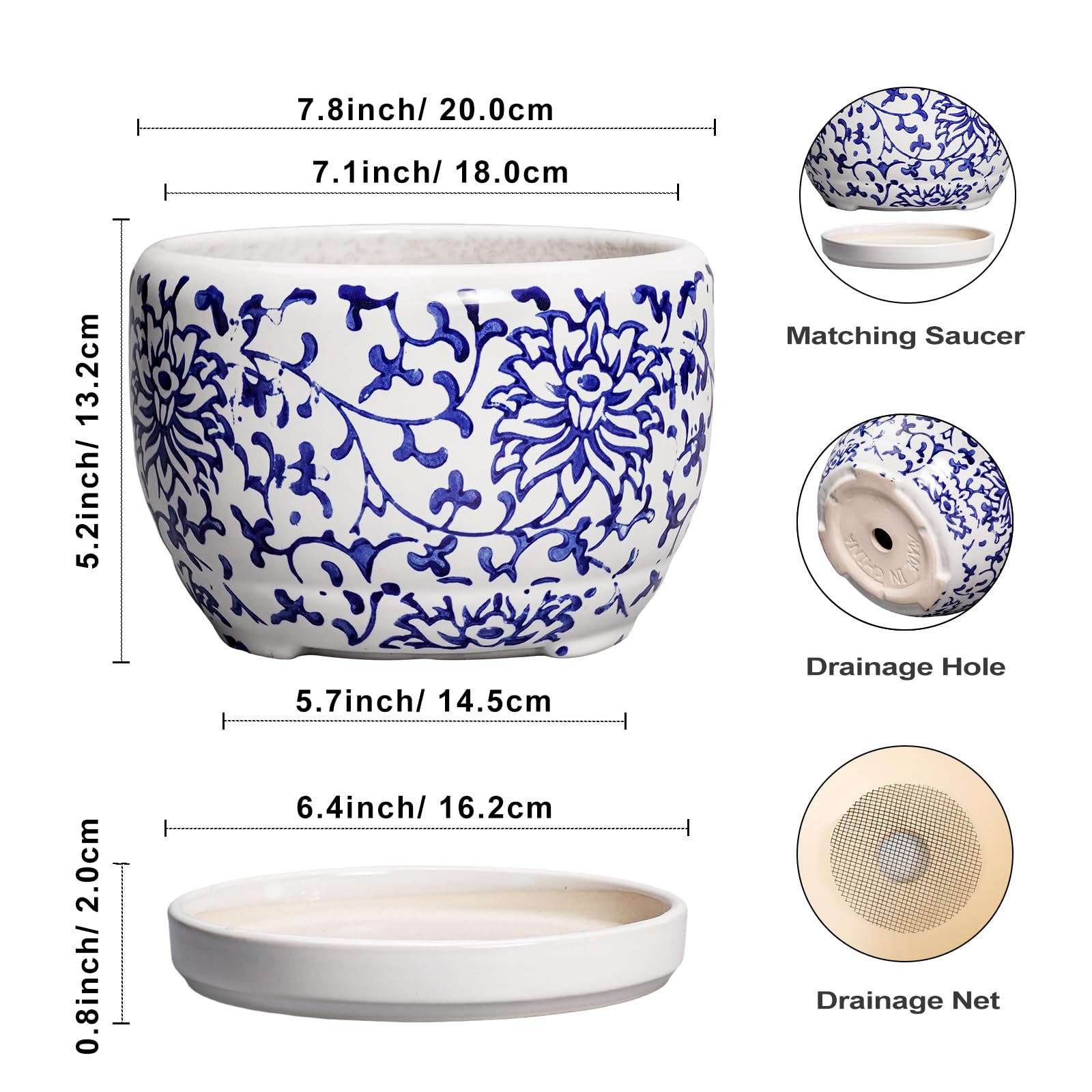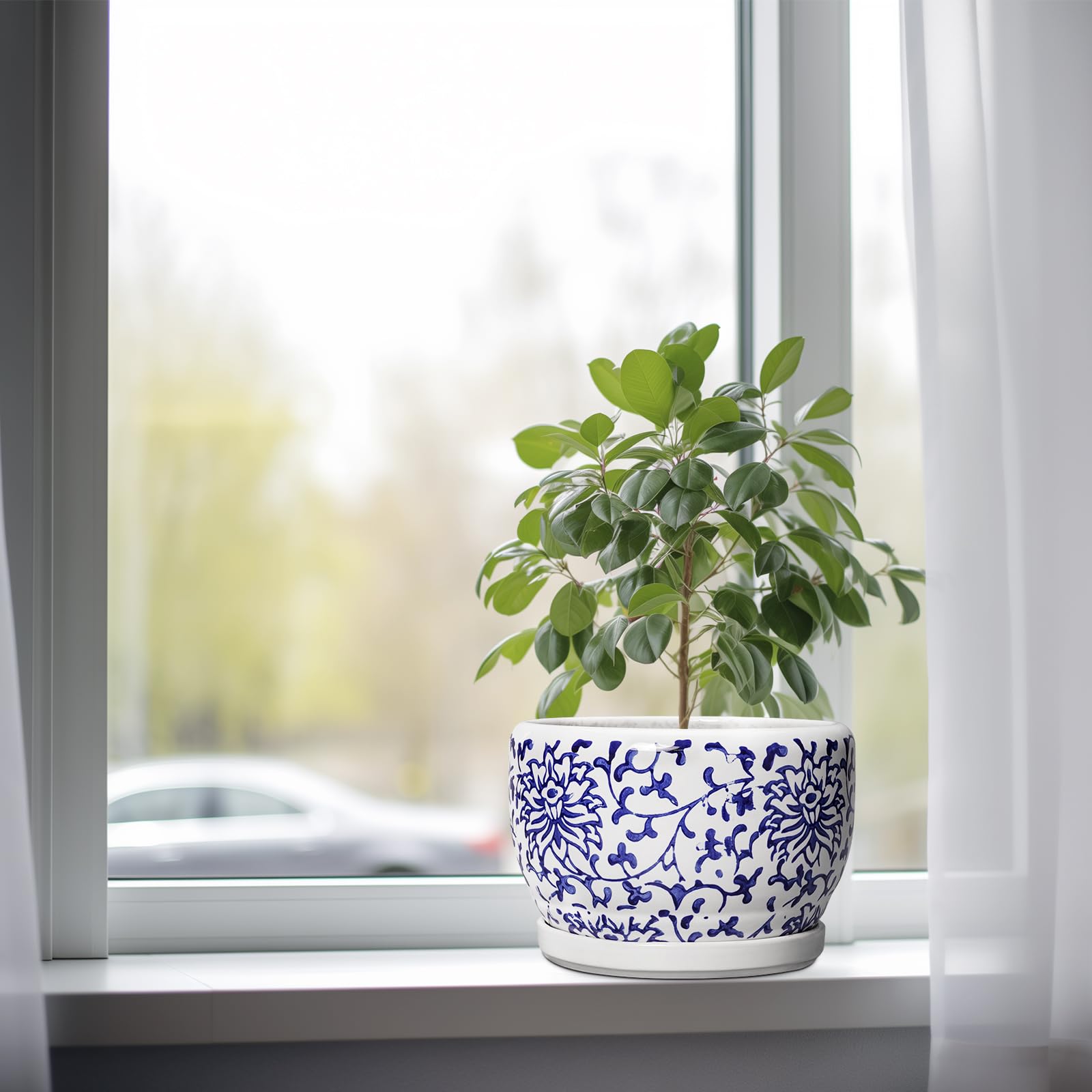 SQOWL Keramiktöpfe für Pflanzen – 20,3 cm Keramik-Pflanzgefäss mit Ablaufloch und Untersetzer, runde Blumentöpfe für Zimmerpflanzen, Porzellan-Pflanzgefäss für den Aussenbereich, Veranda-Dekor, Geschenke