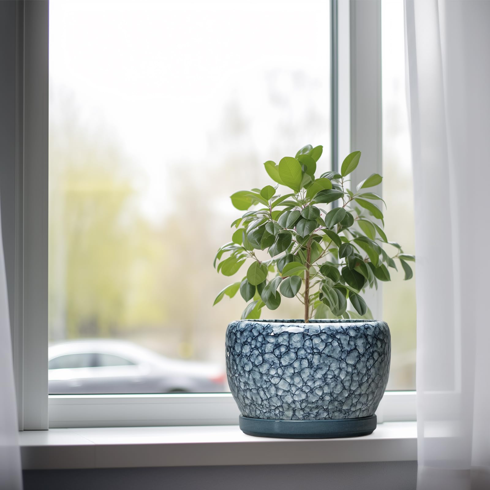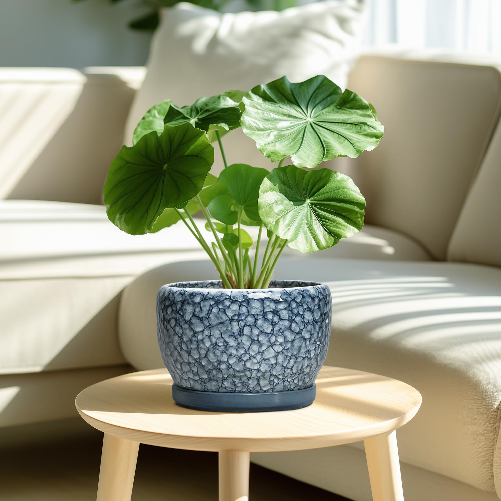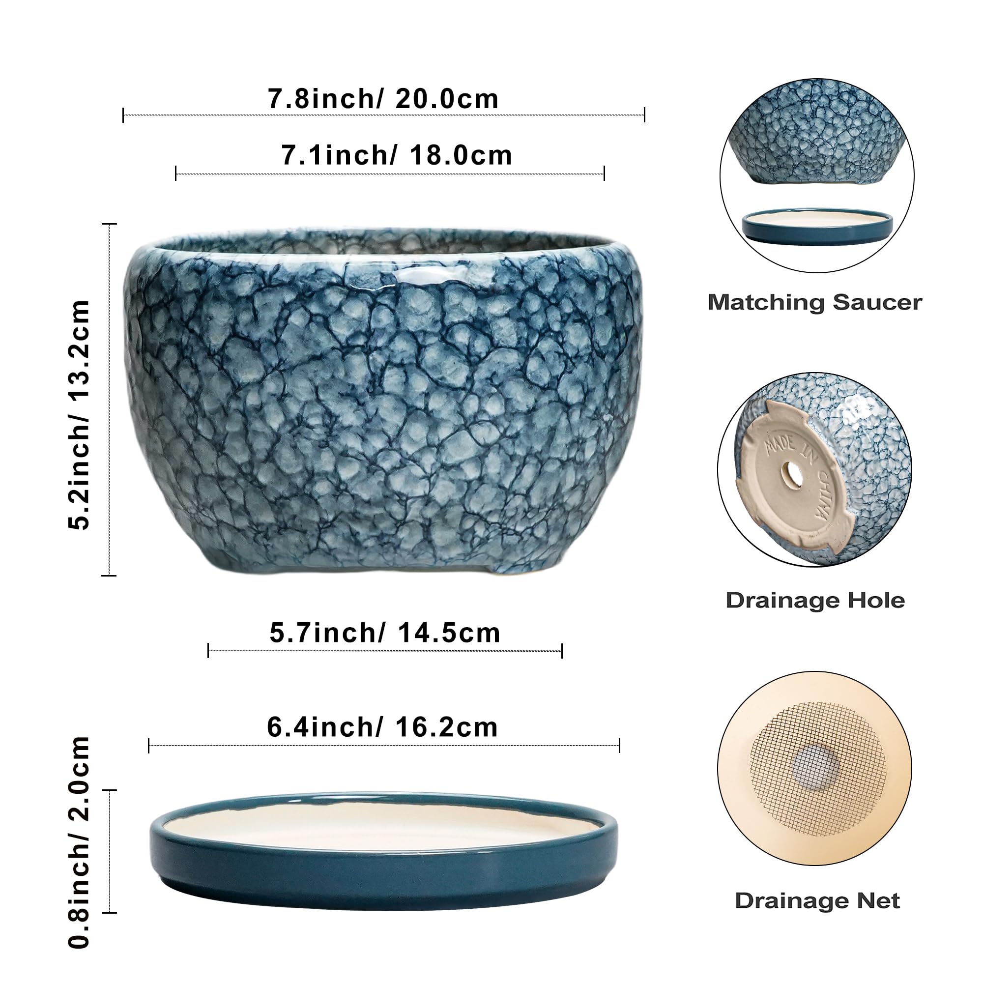 Ideale Grösse dieses mittelgrossen Blumentopfs: 20 cm D x 14 cm H, der blaue Übertopf wird mit einer Keramikschale, einem Drainageloch und einem Netzpolster geliefert. Pflanzen nicht im Lieferumfang enthalten. Langlebige Keramik dieses 20,3 cm grossen Blumentopfs: Die 17,8 cm grossen Blumentöpfe im Innenbereich werden bei hohen Temperaturen ofengebrannt, wodurch sie weniger anfällig für Risse, Verwitterung und allgemeine Abnutzung sind, um eine dauerhafte und langfristige Nutzung im Innen- und Aussenbereich zu gewährleisten. Untertasse: Ablaufloch 20,3 cm grosse Keramik-Pflanzgefässe für Zimmerpflanzen entfernen effizient überschüssiges Wasser und helfen Ihren Pflanzen zu gedeihen. Das Keramiktablett fängt jeden Überlauf auf, so dass Sie den Topf überall mit Vertrauen platzieren können. Modernes Design dieses blauen Blumentopfs: Unser moderner Blumentopf verfügt über eine schöne und glatte blau glasierte Oberfläche, geeignet für die Dekoration Ihres Hauses, Gartens, Terrasse, Balkon, Wohnzimmer, Büro und mehr. Dieser vielseitige blaue Topf für Pflanzen ist eine wesentliche Ergänzung für jede Sammlung von runden Blumentöpfen und kleinen Blumentöpfen. Ideal als kleine Pflanzgefässe für Zimmerpflanzen und Gartentöpfe, sein integriertes Ablaufloch hebt ihn von anderen Indoor-Blumentöpfen mit Drainage ab. Das moderne Pflanzgefäss-Design des Pflanzgefässes mit blauer Glasur macht ihn ideal als runder Übertopf und eignet sich für verschiedene Dekore, einschliesslich dekorativer Pflanzgefässe und Pflanzgefässe aus der Mitte des Jahrhunderts. Es verleiht dem Pflanzgefäss mit Untersetzer einen Hauch von Eleganz und funktioniert gut als dekorative Blumentöpfe und 20,3 cm grosse Blumentöpfe. 【Dieser blaue Blumentopf ist weit verbreitet】 Der 17,8 cm grosse Pflanztopf mit Drainageloch und Untersetzer eignet sich für Sukkulenten, Pothos, Monstera, afrikanische Veilchen, Kräuter, Kakteen, Orchideen, Aloe Vera, Pothos-Pflanze, Geldbaum, Friedenslilienpflanze, ZZ-Pflanzen und mehr grossartig für dekorative Töpfe für Pflanzen im Innenbereich, dieser Übertopf ist ein wunderbares Geschenk für Pflanzenliebhaber und ideal als Geschenk für Pflanzenliebhaber für Frauen. Seine Vielseitigkeit bietet Platz für eine Reihe von Pflanzen, wodurch er als Orchideentopf, Geldbaumtopf, Pothos-Topf, Aloe-Blumentopf, Pothos-Blumentopf, afrikanischer Veilchen-Topf und Kaktus-Topf geeignet ist. Damit ist er ein wertvoller Bestandteil jeder Zimmerpflanzentopf-Kollektion. Für Outdoor-Enthusiasten dient dieser Pflanzkasten gut als Outdoor-Pflanzgefässe für Terrasse und Outdoor-Pflanzgefässe für Veranda. Er wertet jeden Raum auf und passt hervorragend in Bürodekorationen, Schreibtischdekorationen und sogar als Fenster-Pflanzgefäss oder Bücherregaldekoration. Seine Grösse und sein Stil machen ihn auch ideal für Tischdekoration. Wenn Sie auf der Suche nach durchdachten Weihnachtsgeschenken oder Lehrergeschenken sind, ist dieser Übertopf eine praktische und stilvolle Wahl. Haben Sie Probleme mit Ihrem Pflanzgefäss? Lassen Sie es uns wissen, und wir kümmern uns für Sie darum. Nach Erhalt dieses Keramik-Blumentopfs: Wenn Sie nach Erhalt des runden Pflanztopfs Schäden oder andere Probleme haben, lassen Sie es uns bitte wissen und wir werden grosse Anstrengungen unternehmen, um Ihnen zu helfen, ihn für Sie zu lösen